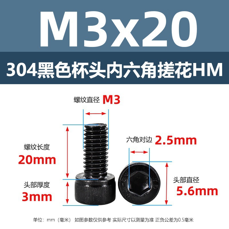 • HM2.5*3 (304 블랙 컵 헤드 러빙 패턴) (50개)