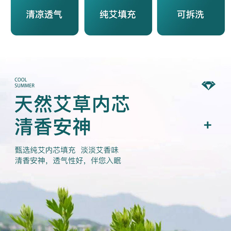 쑥 여름 냉각 베개, 경추 보호, 수면 매트 베개, 통기성 여름 얼음 실크 베개, 쑥잎 뼈 베개스토어 가기