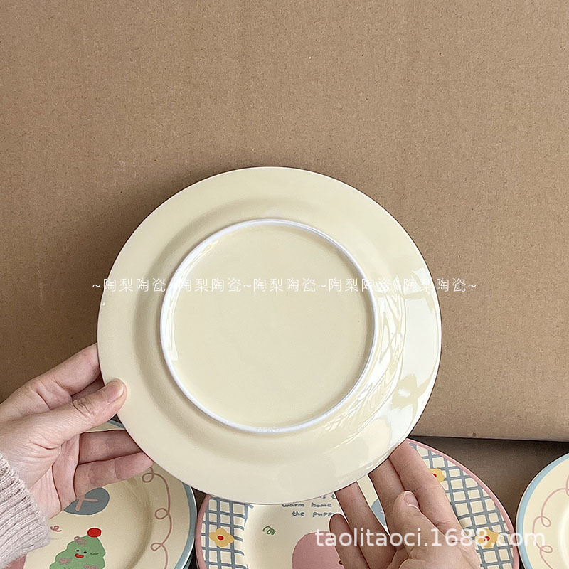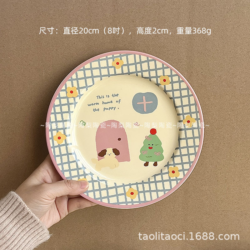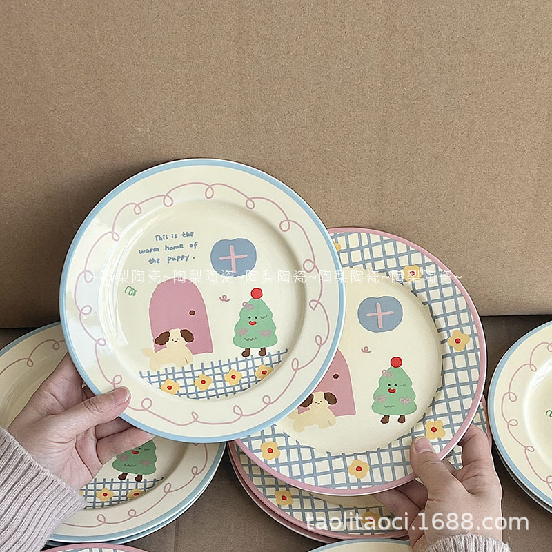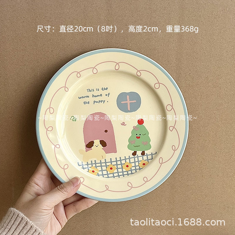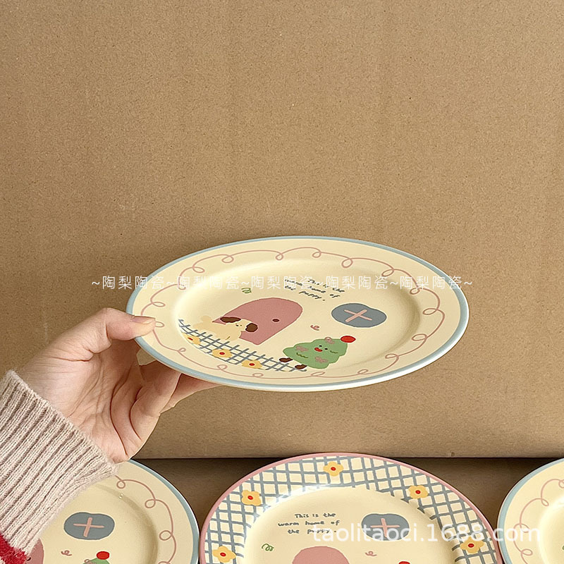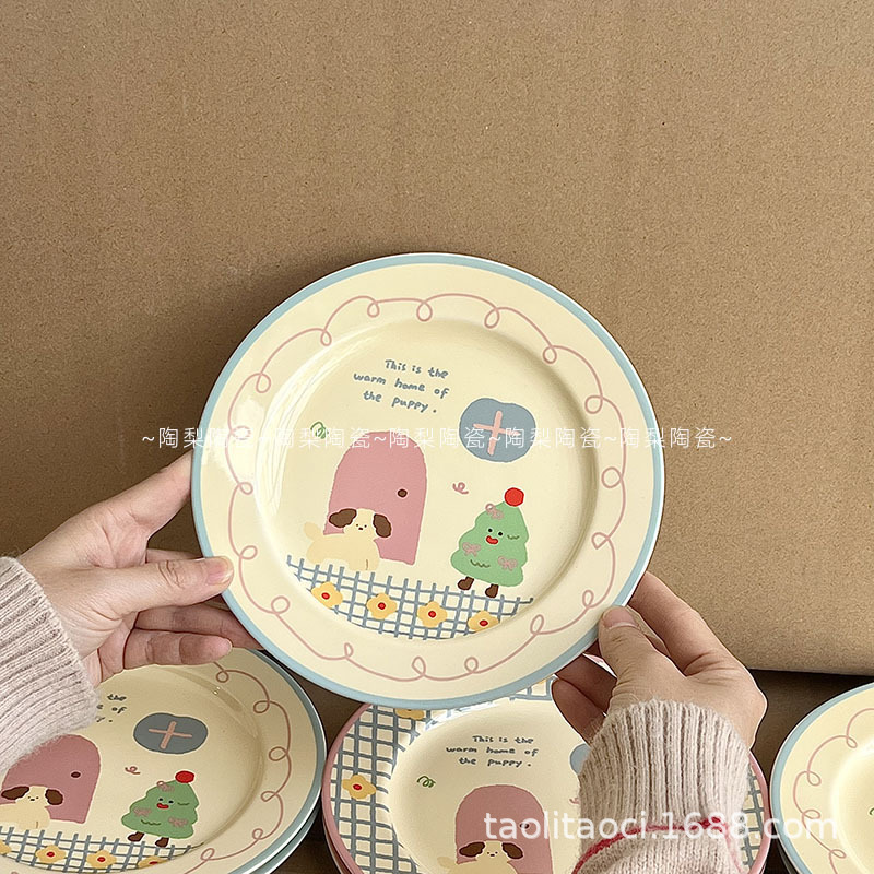 인스타일 귀여운 한국 어린이 같은 강아지 일러스트 식기 세라믹 접시 디저트 접시 아침 식사 접시 만화 접시스토어 가기