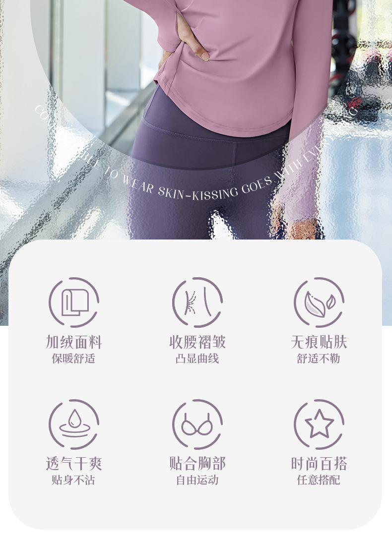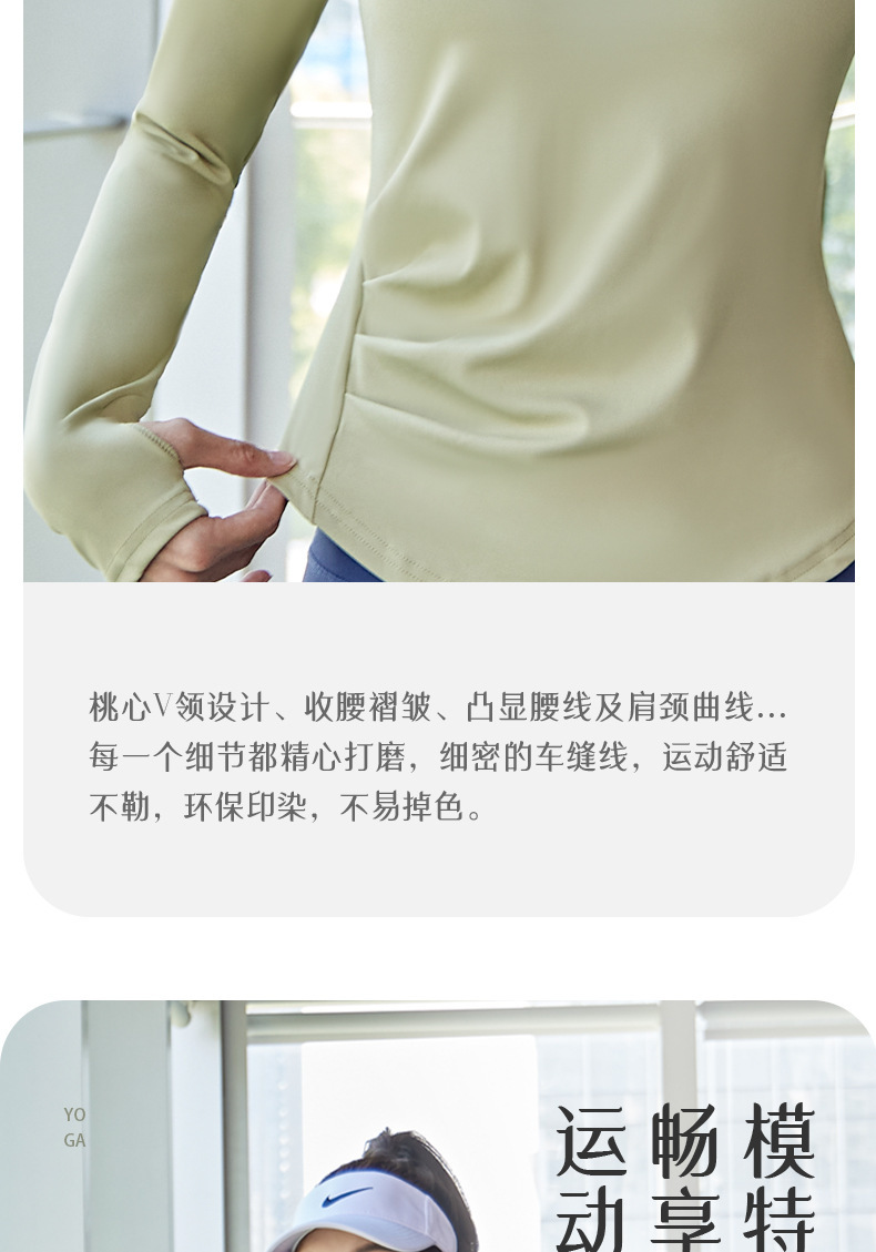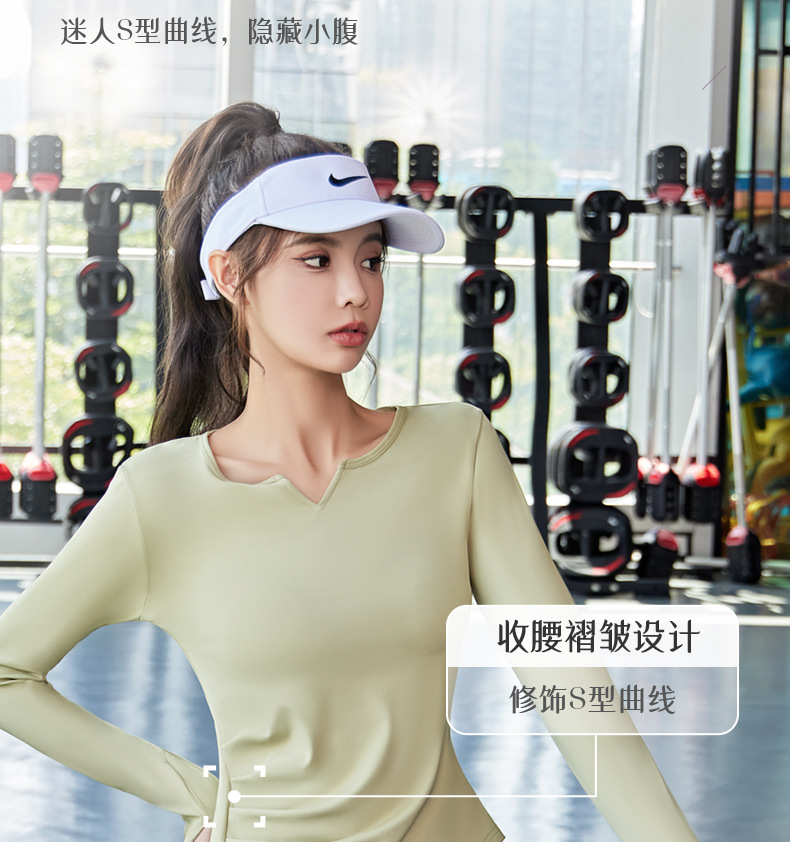 Juyitang 얇은 벨벳 V-Neck 긴팔 주름진 허리 요가 세트 슬리밍 타이트 스포츠 탑스토어 가기
