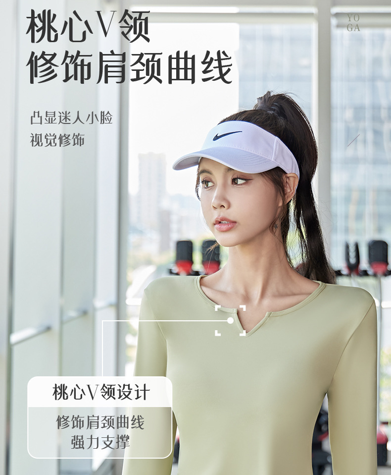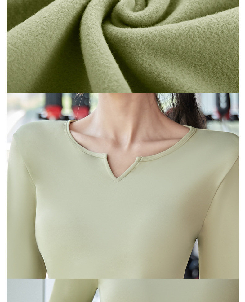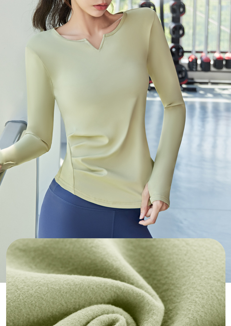 Juyitang 얇은 벨벳 V-Neck 긴팔 주름진 허리 요가 세트 슬리밍 타이트 스포츠 탑