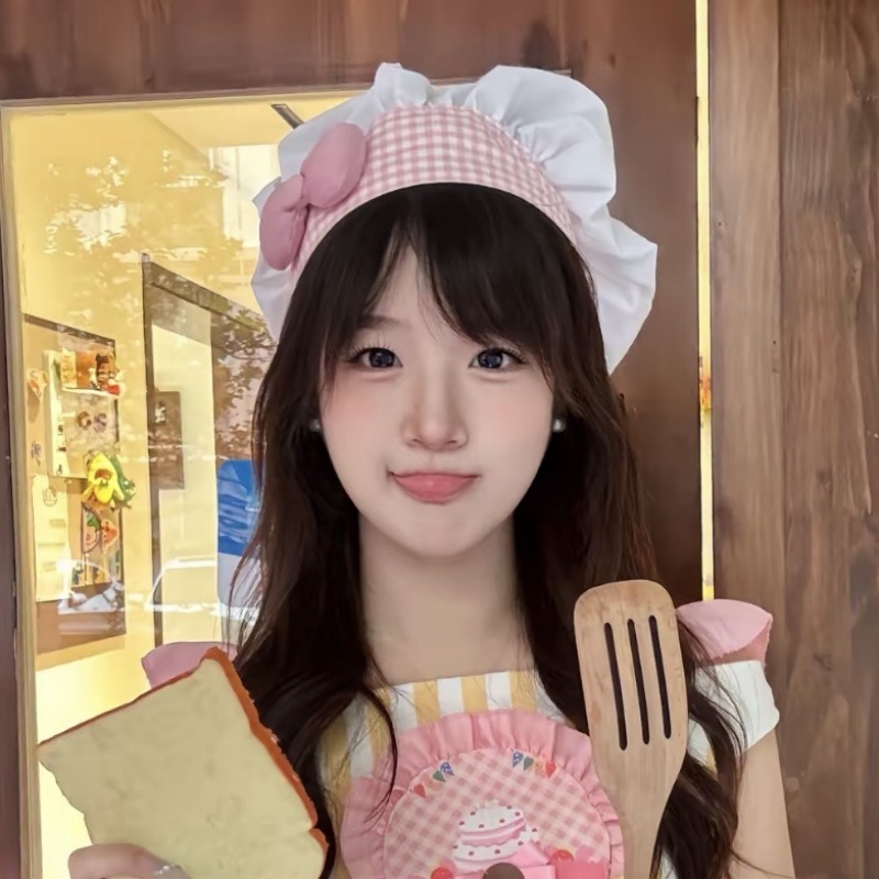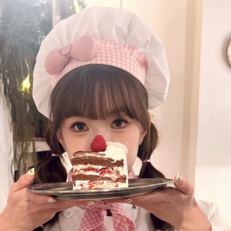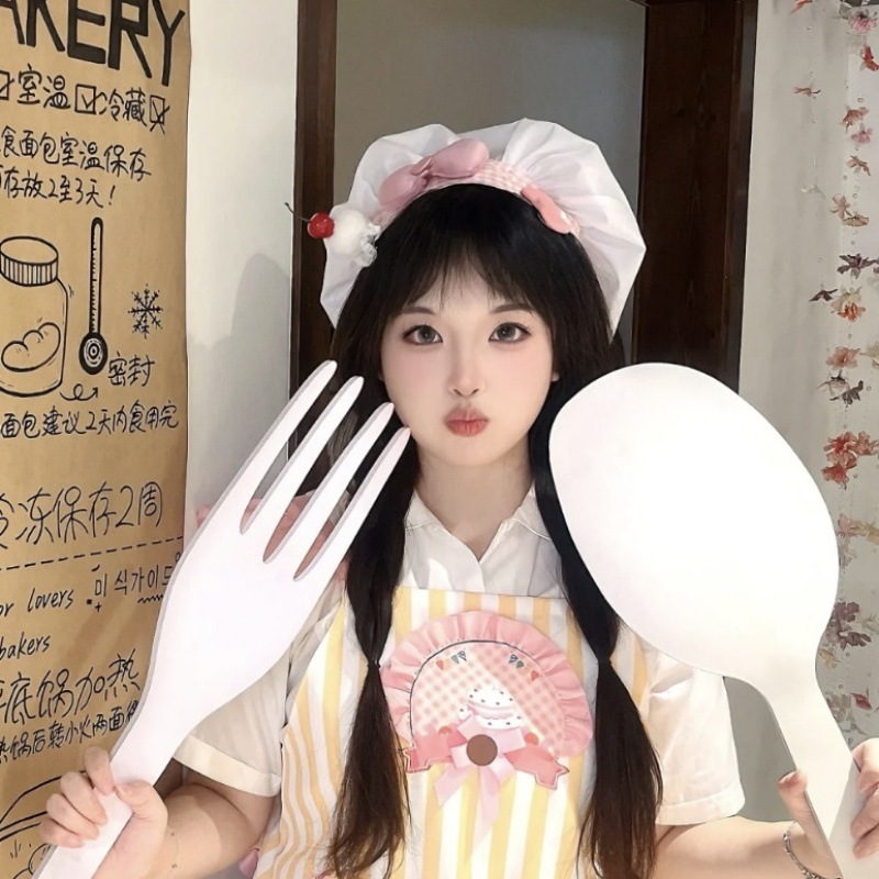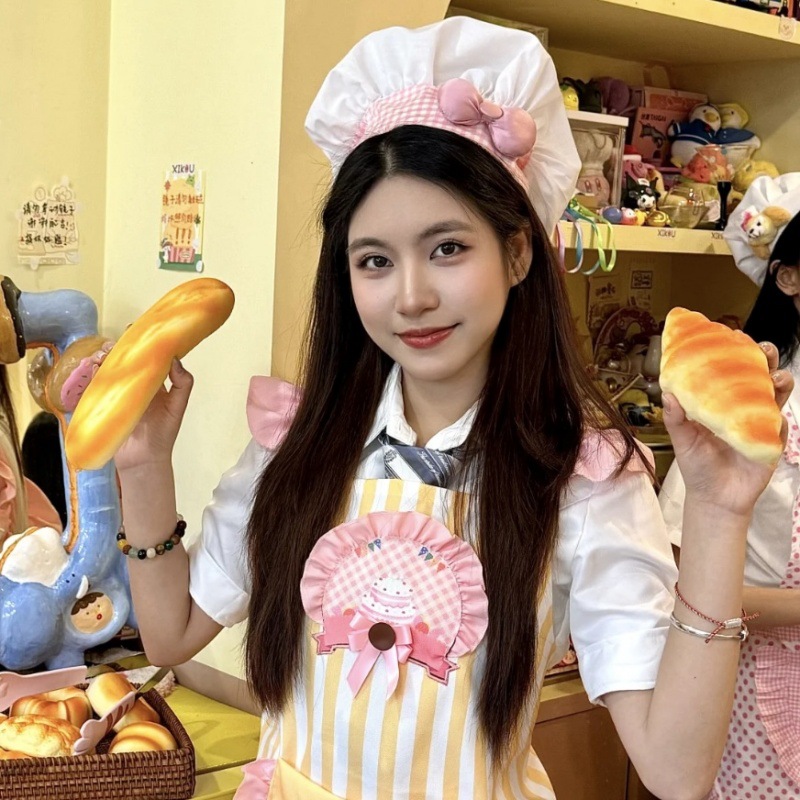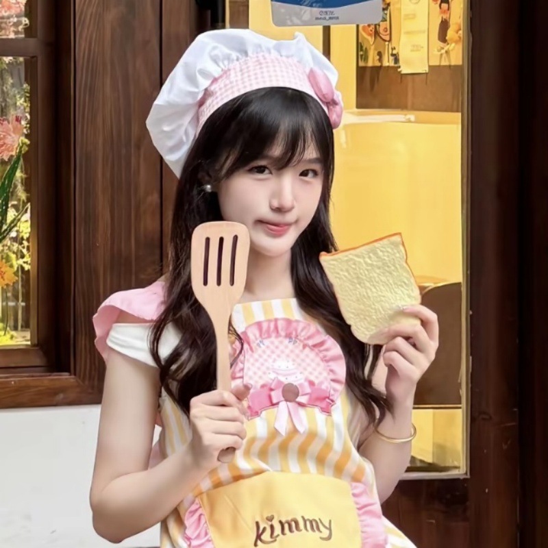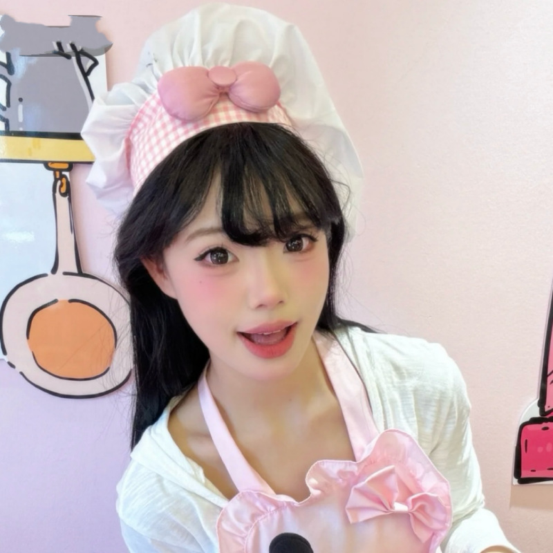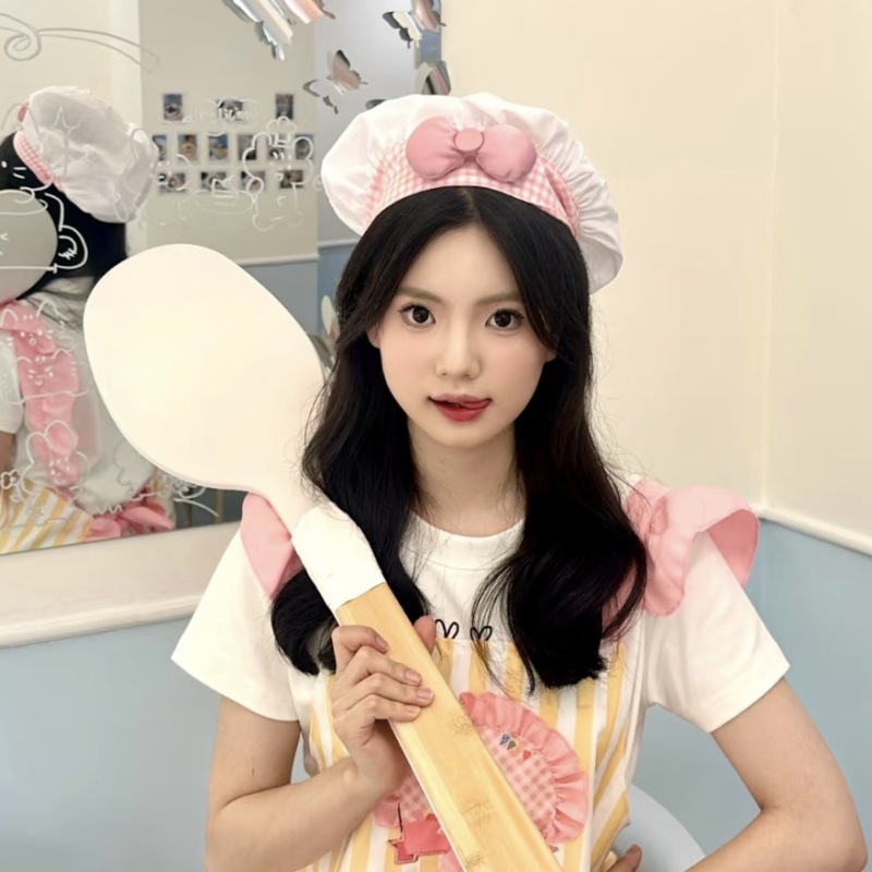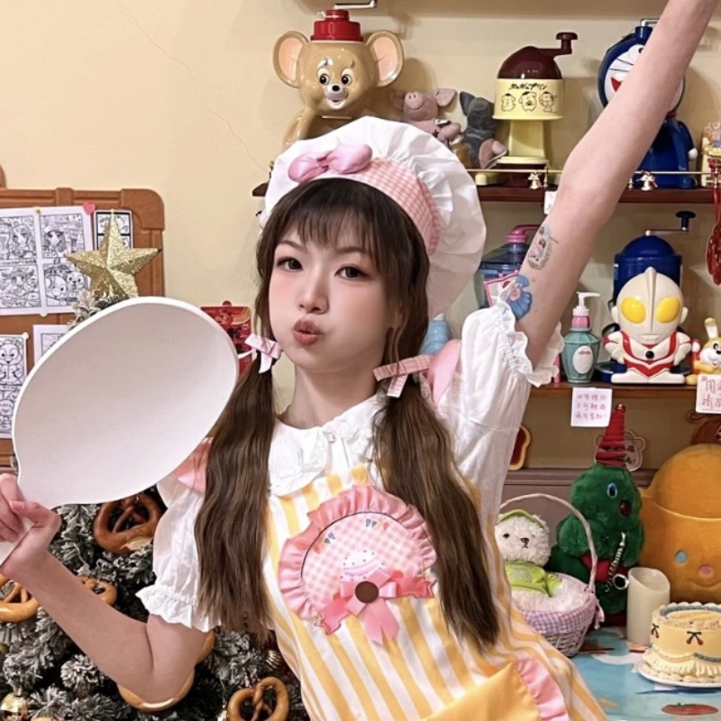 • 붉은 격자 무늬 리본 요리사 모자 + 격자 무늬 장갑