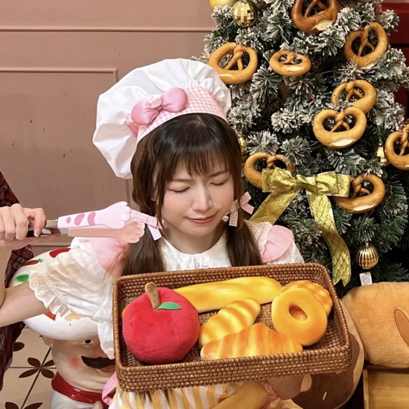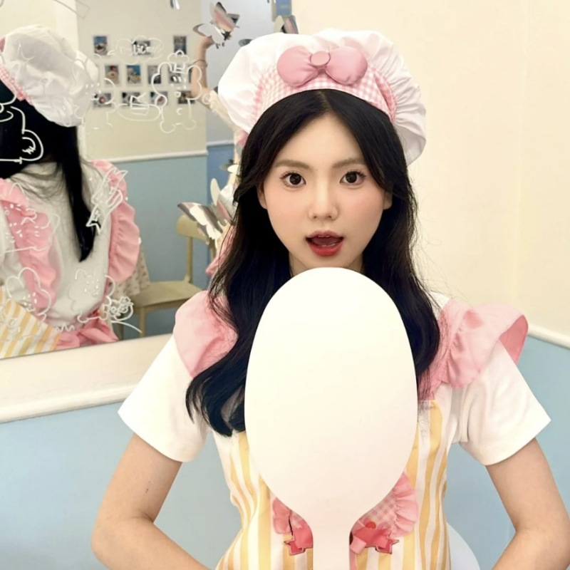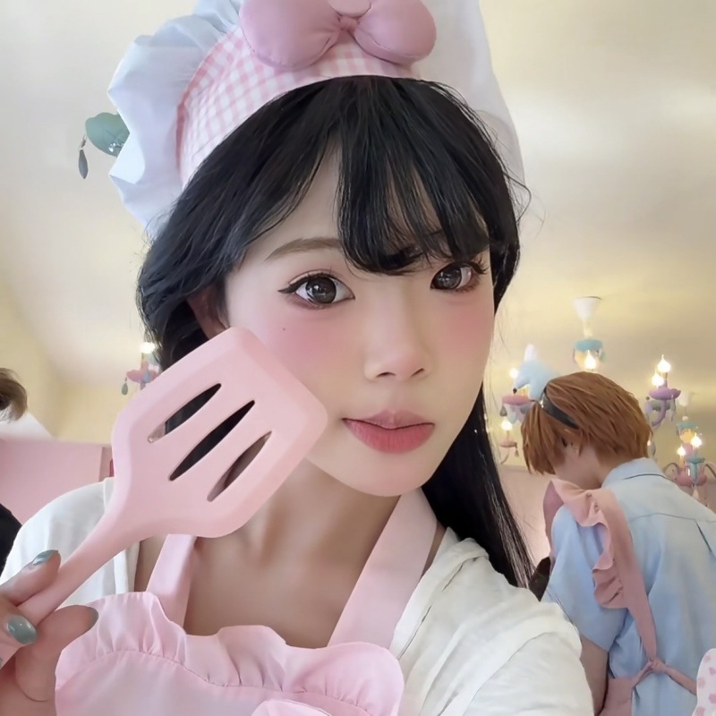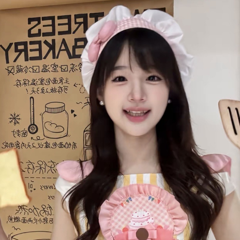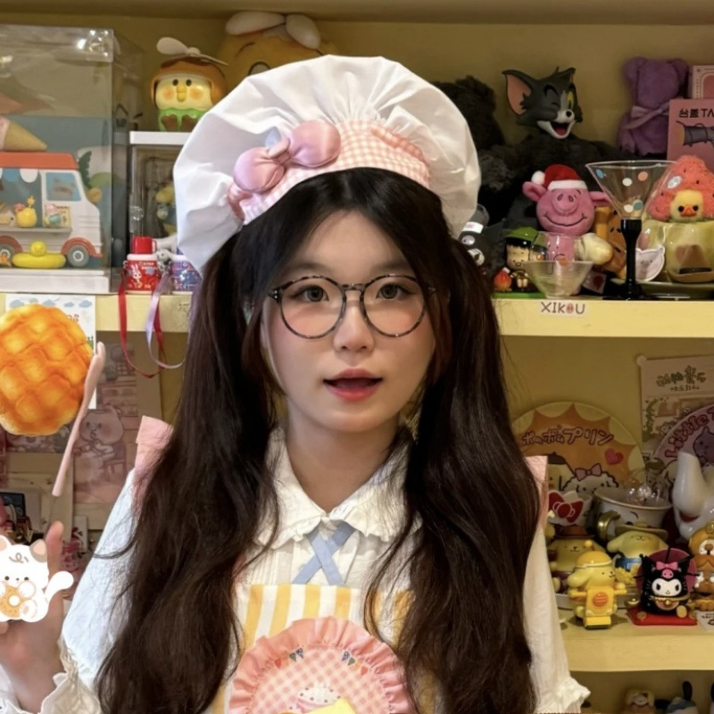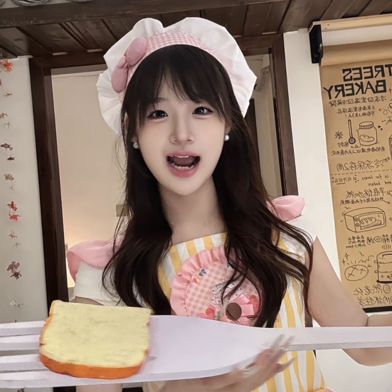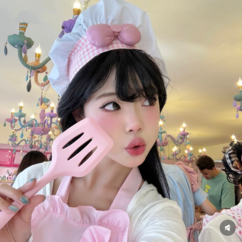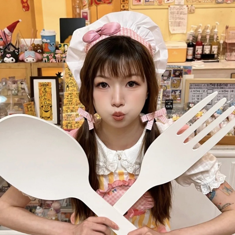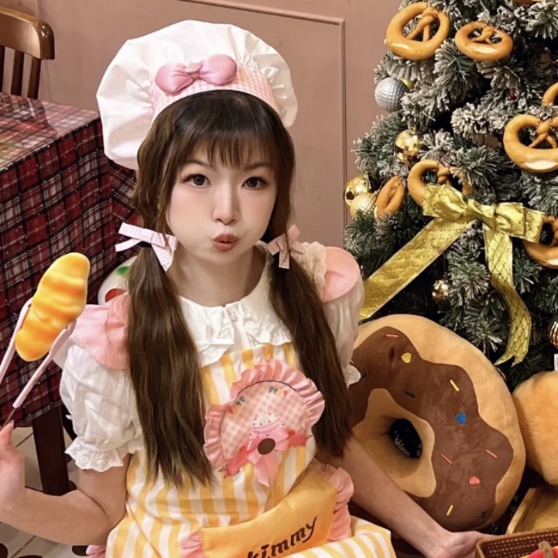 • 붉은 격자 무늬 리본 요리사 모자 + 격자 무늬 장갑