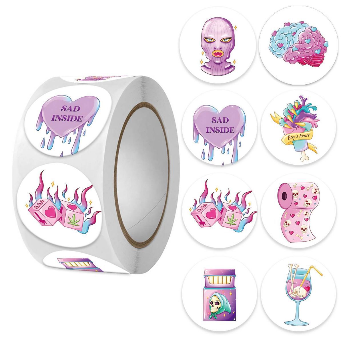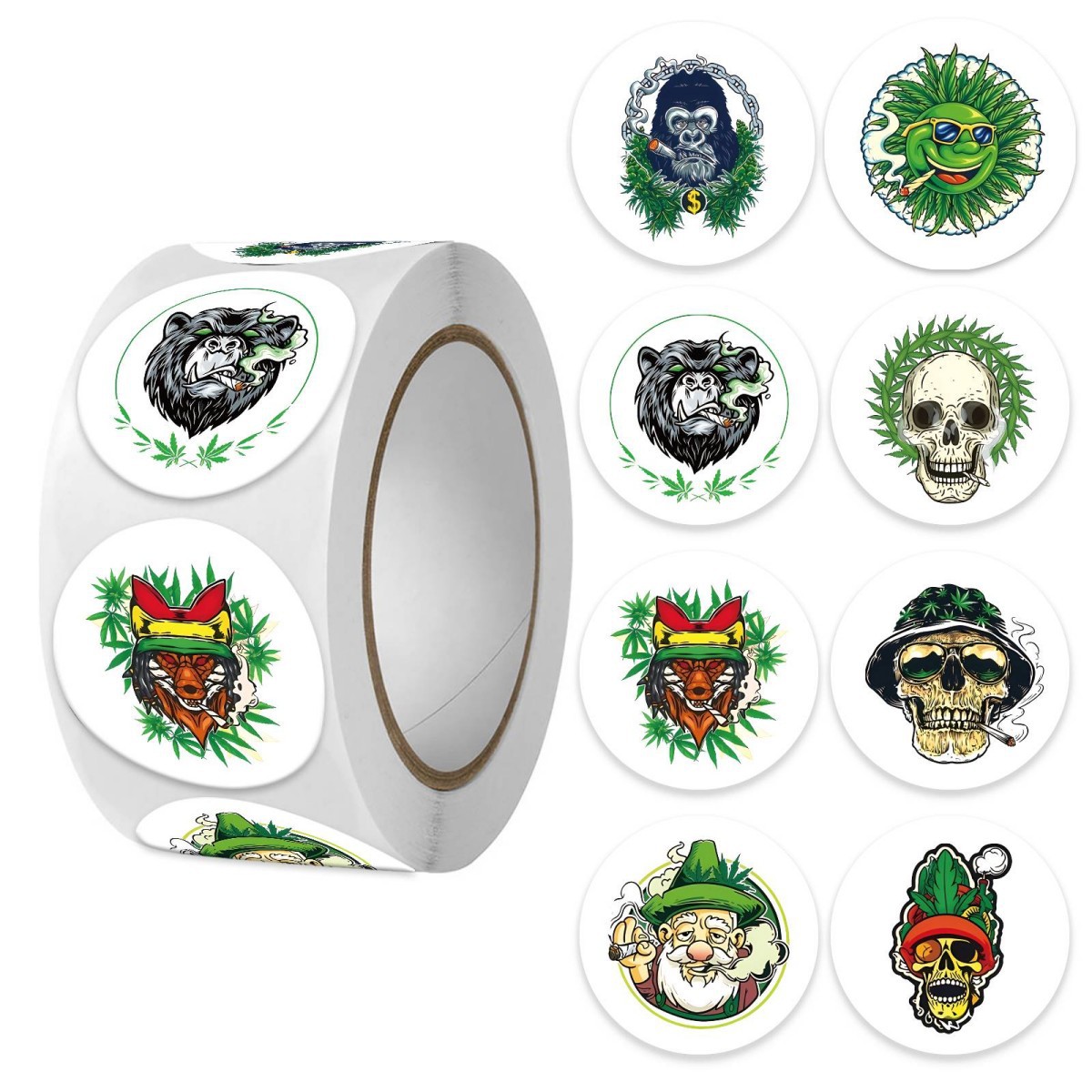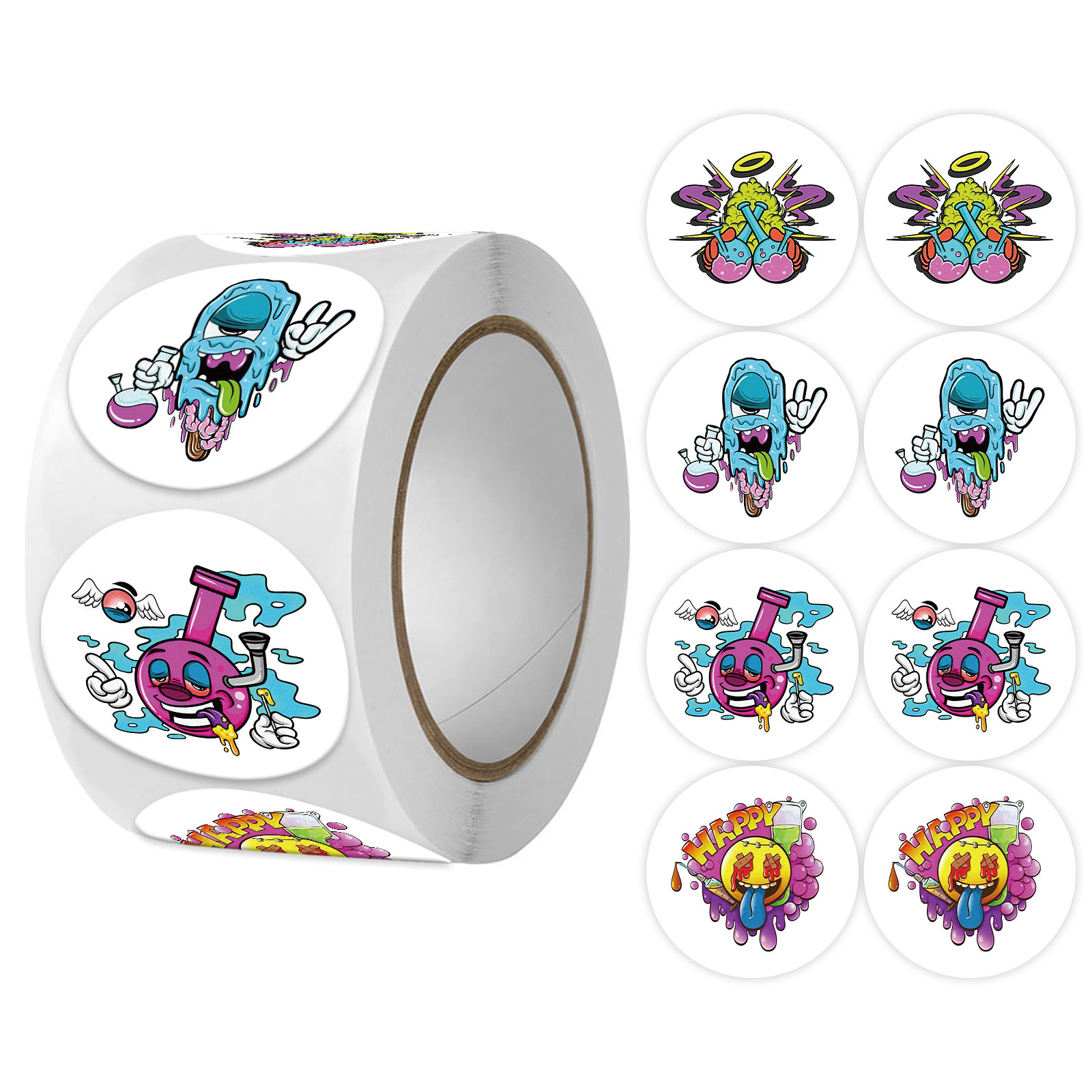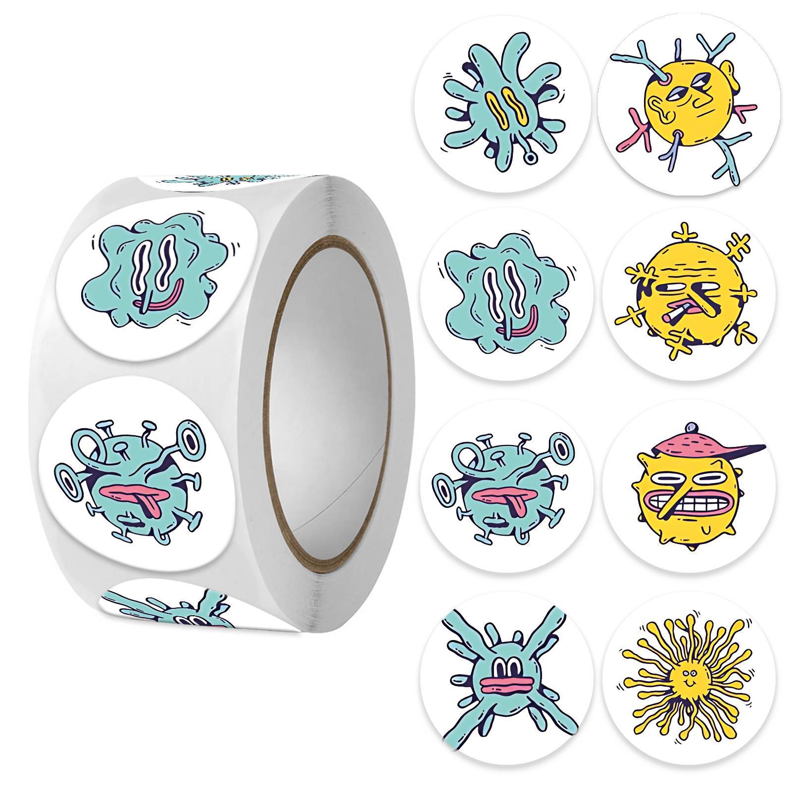 국경 간 식물 대 좀비 자체 접착 도매 라운드 2.0CM 라벨 스티커 500 시트 1 롤 포장 테이프