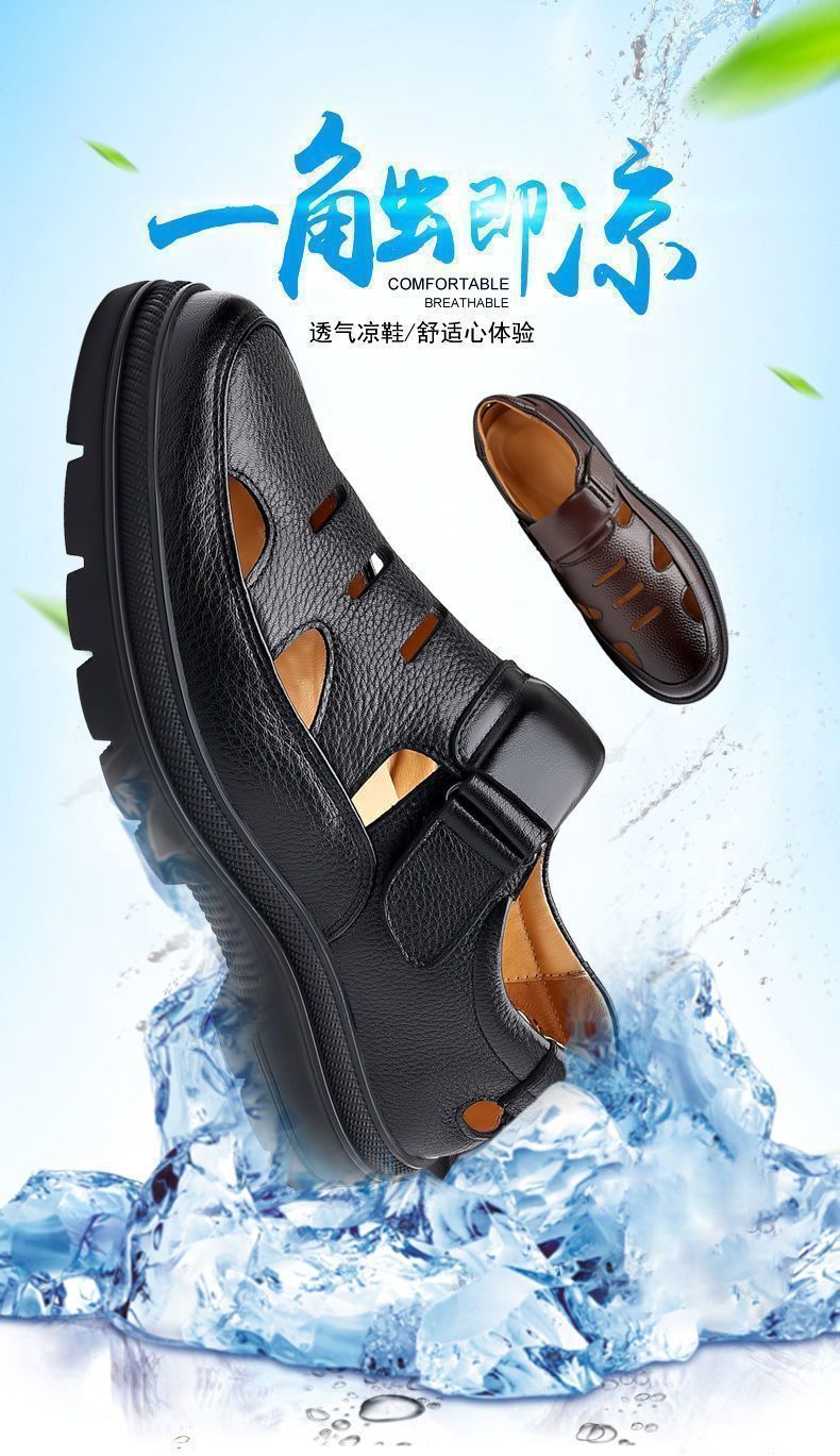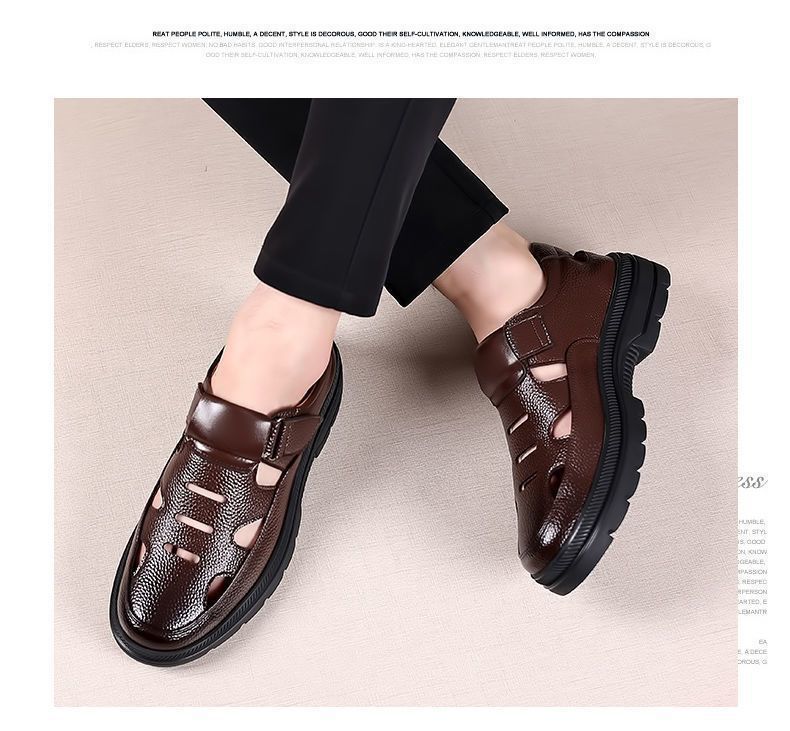 특별 클리어런스 남성 가죽 신발 여름 새로운 중국 스타일 경량 부드러운 바닥 나막신 통기성 중공 남성 신발 남성 샌들