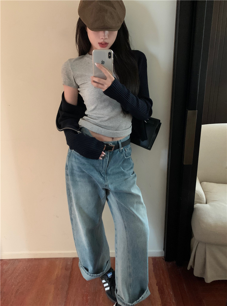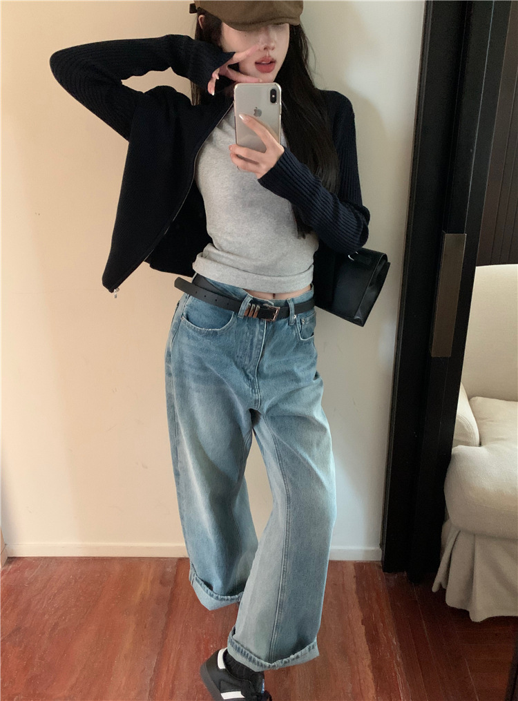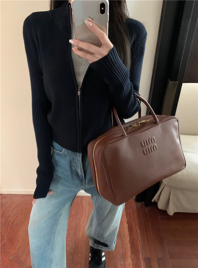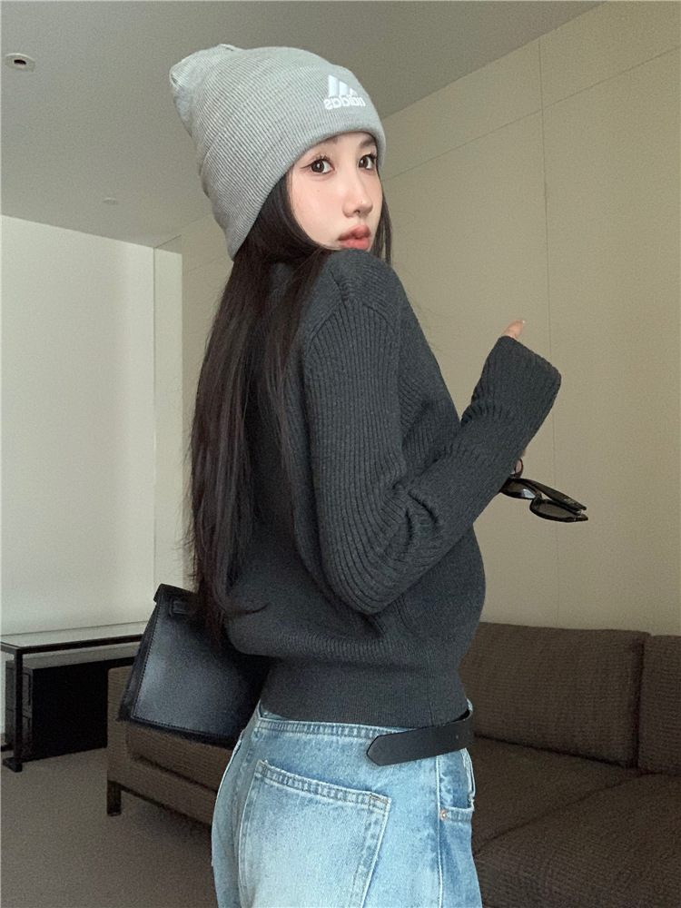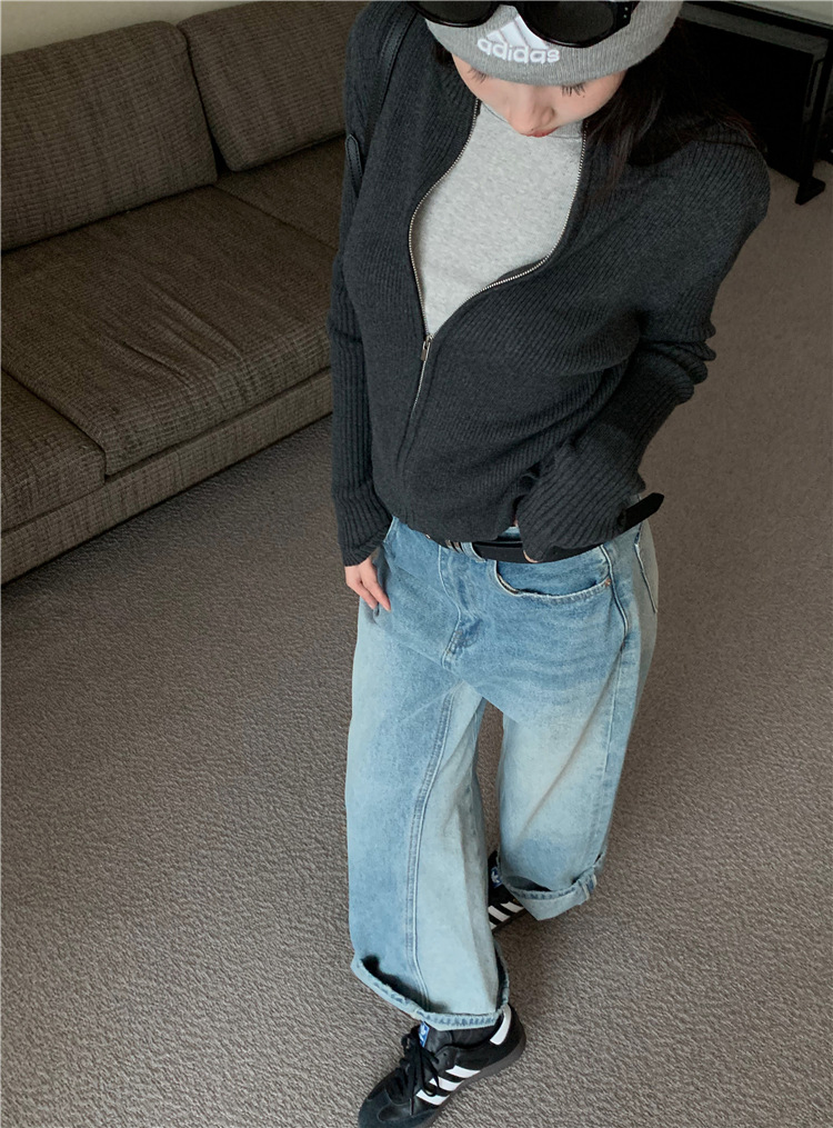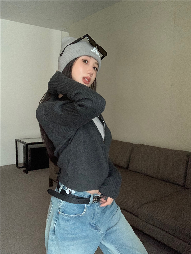 가을 여성용 네이비 블루 카디건 재킷, 슬림핏 이너웨어, 긴팔 소프트 왁시 지퍼 니트 스웨터, 니치 탑스토어 가기