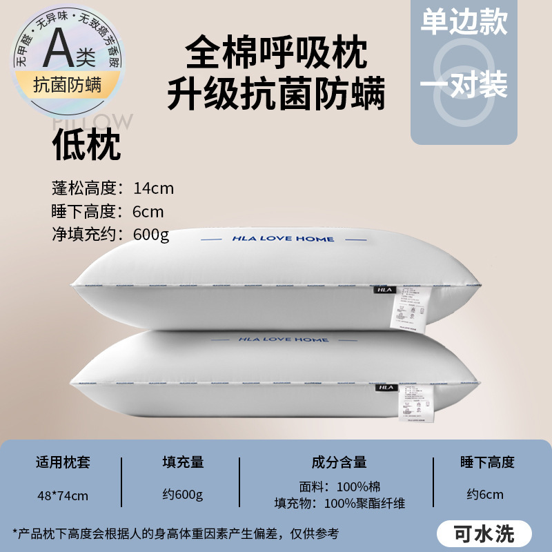 • 단면 낮은 베개 [쌍] [업그레이드된 유형 A, 진드기 방지]