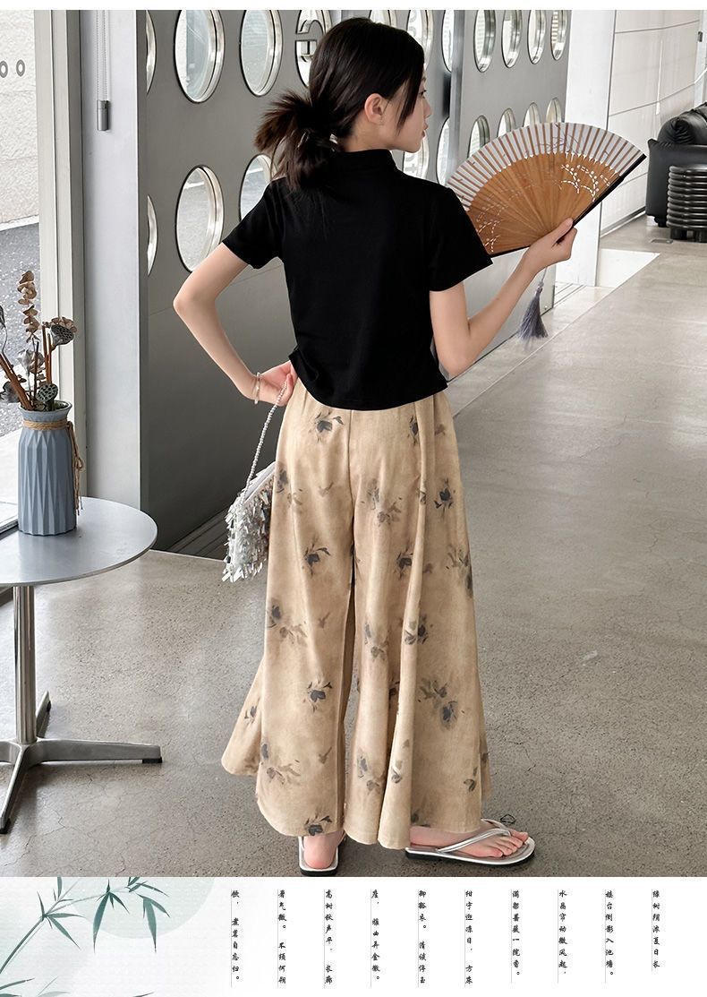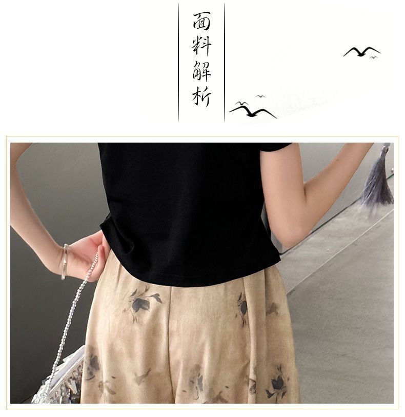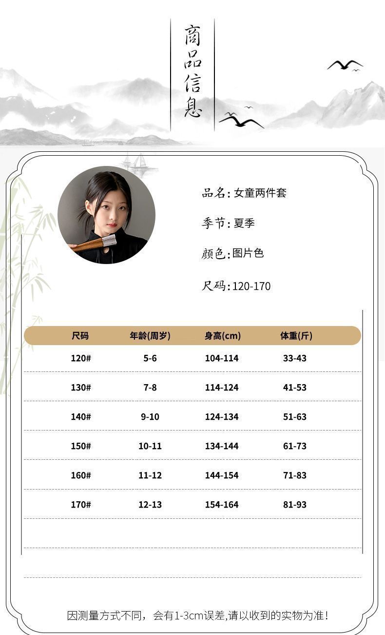 2025년 여름 신상 스타일 중국 스타일 탑 버튼 투피스 세트 여아용 중국식 반팔 슈트 여아용 와이드 팬츠스토어 가기