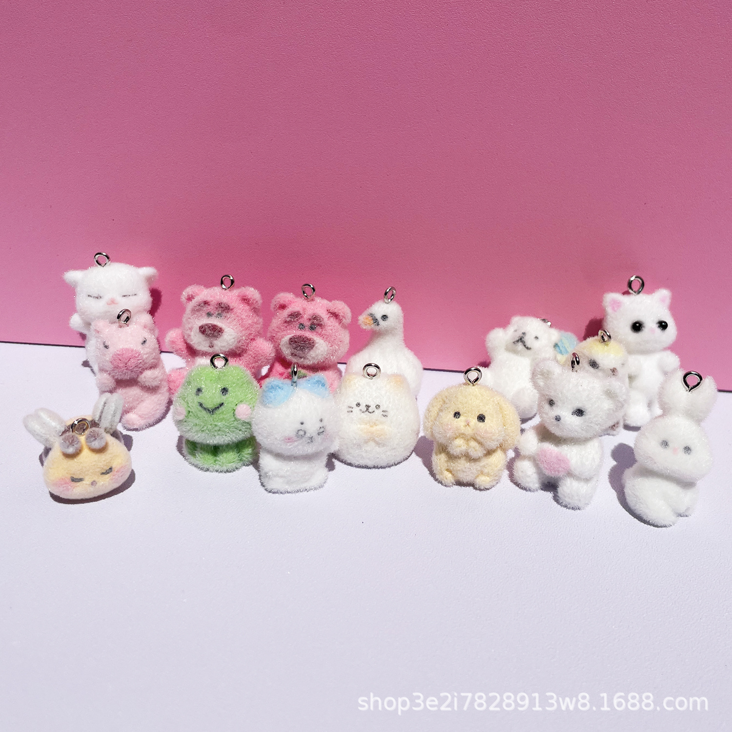 새로운 만화 입체 수지 벨벳 강아지 펜던트 DIY 수제 보석 열쇠 고리 가방 펜던트 도매