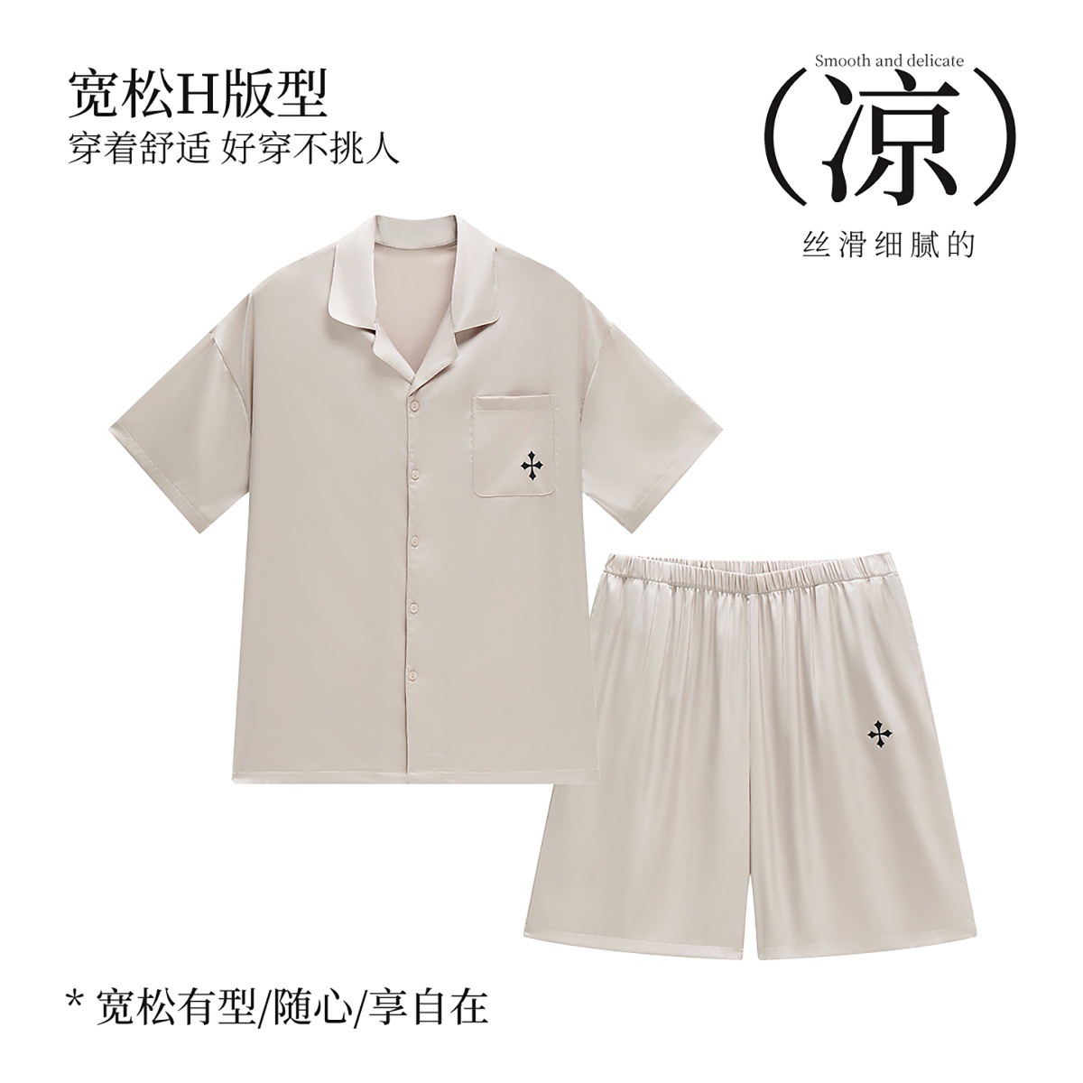 남성용 잠옷, 새틴 홈웨어, 아이스 실크 시원한 반팔 반바지 세트, 외부 착용 가능, 신작 남성용 여름스토어 가기