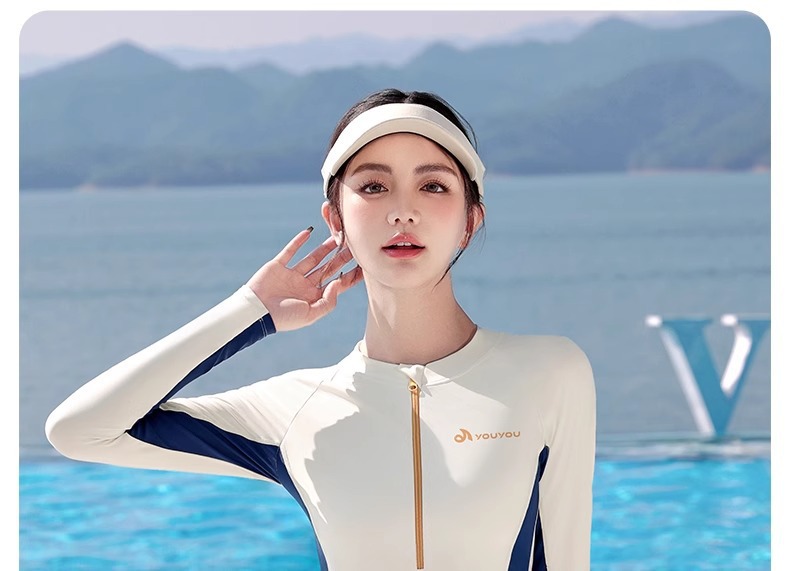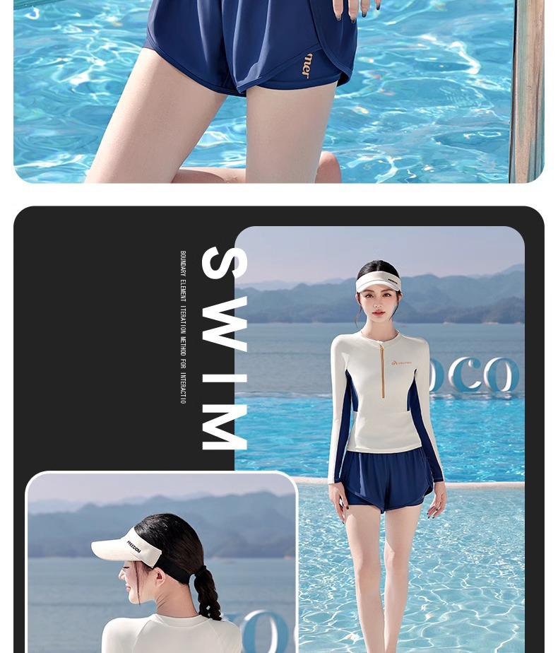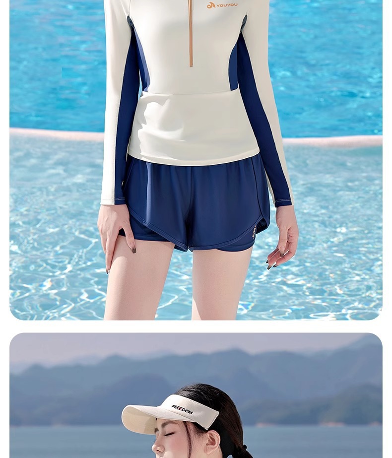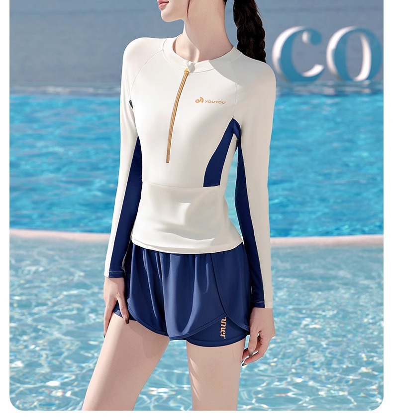 여성용 수영복 스플릿 긴팔 2025 새로운 보수적 인 배 커버 슬리밍 전문 수영 특수 해변 온천 수영복