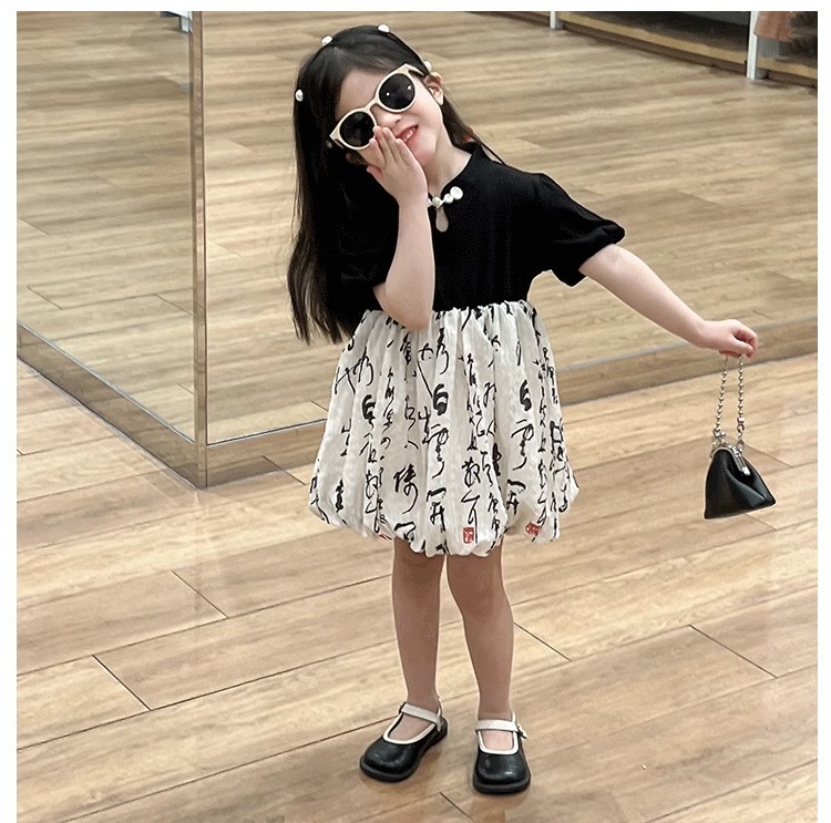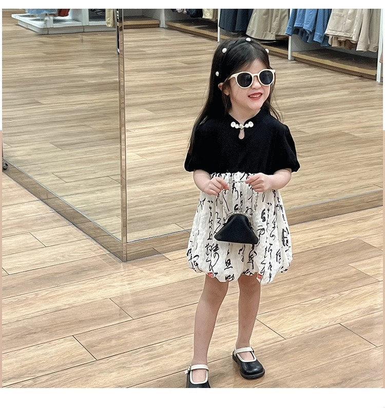 2025 새로운 여름 공주 Hanfu 스커트 어린이 서양식 중국 스타일 스커트 소녀 버클 소녀 중국 드레스