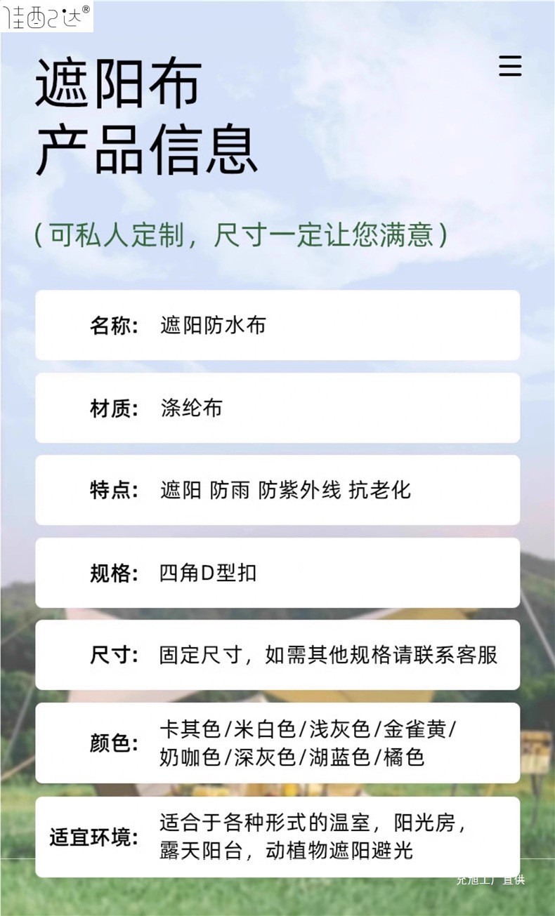 Ruyi 차양 천, 자외선 차단 및 단열, 야외 캐노피 텐트, 야외 안뜰 차양, 캠핑 방수 및 방수