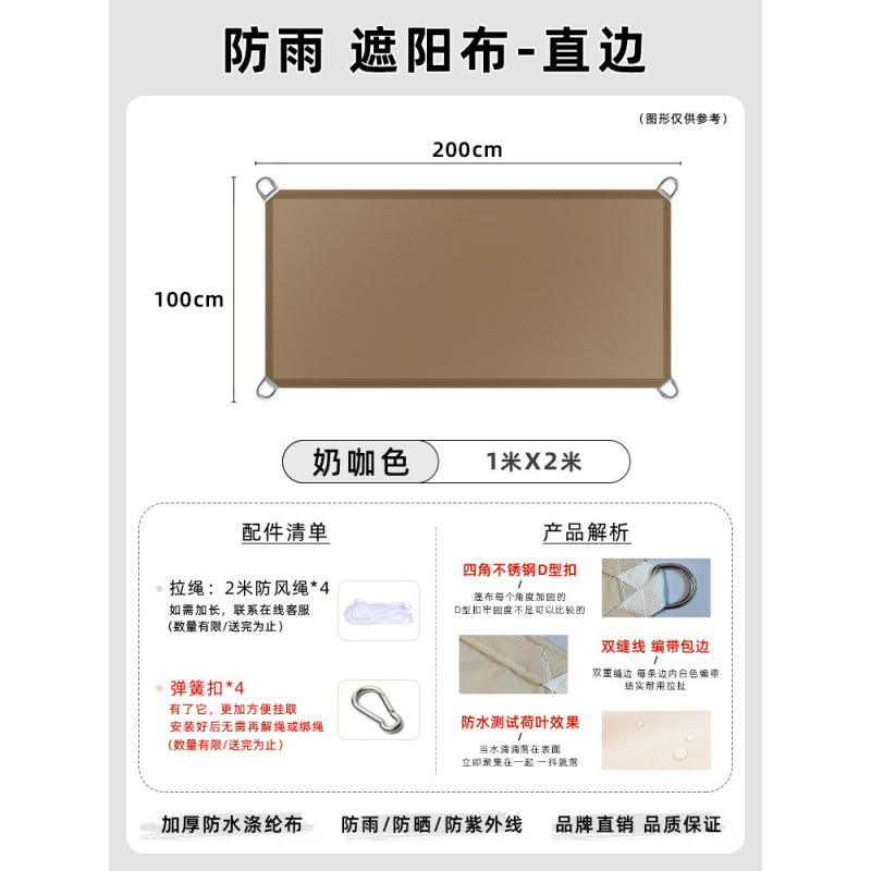• 카키색 [직선] 1.5× 2m [두꺼운 폴리에스테르 천] [방우, 자외선 차단, 자외선 차단]