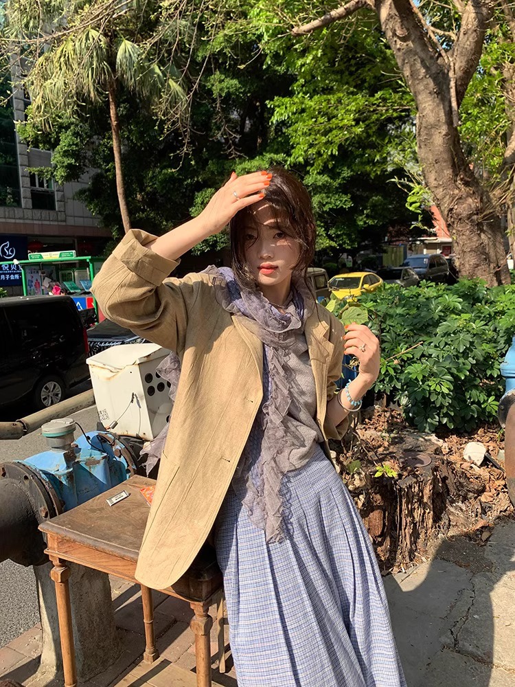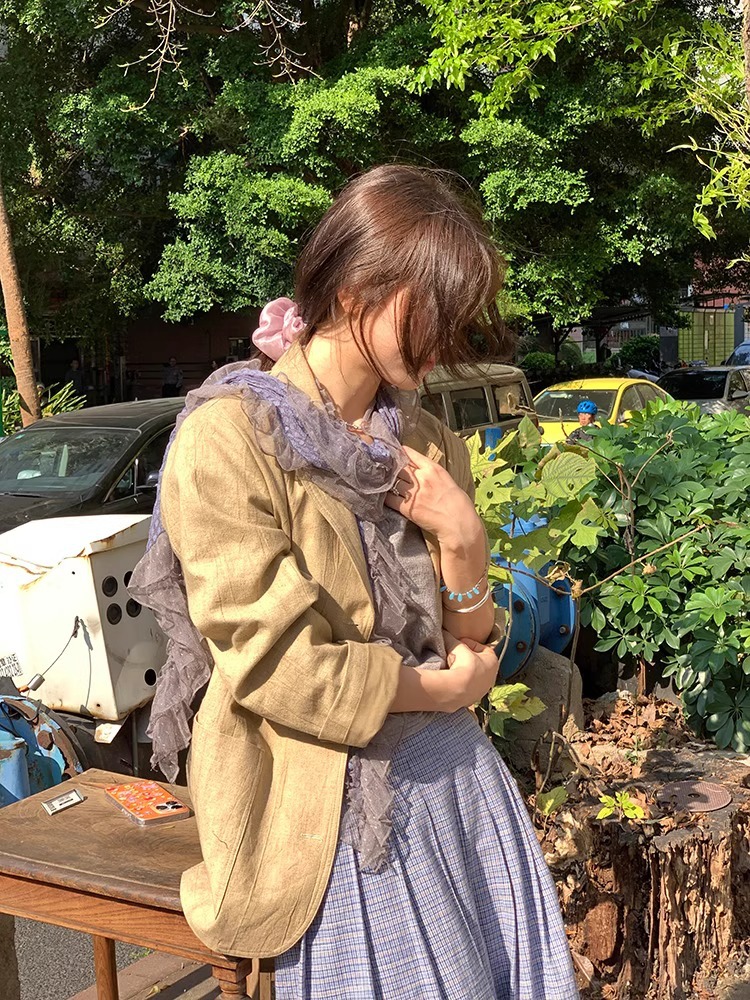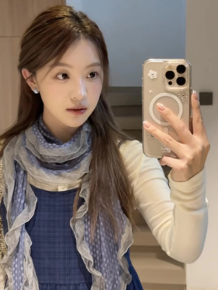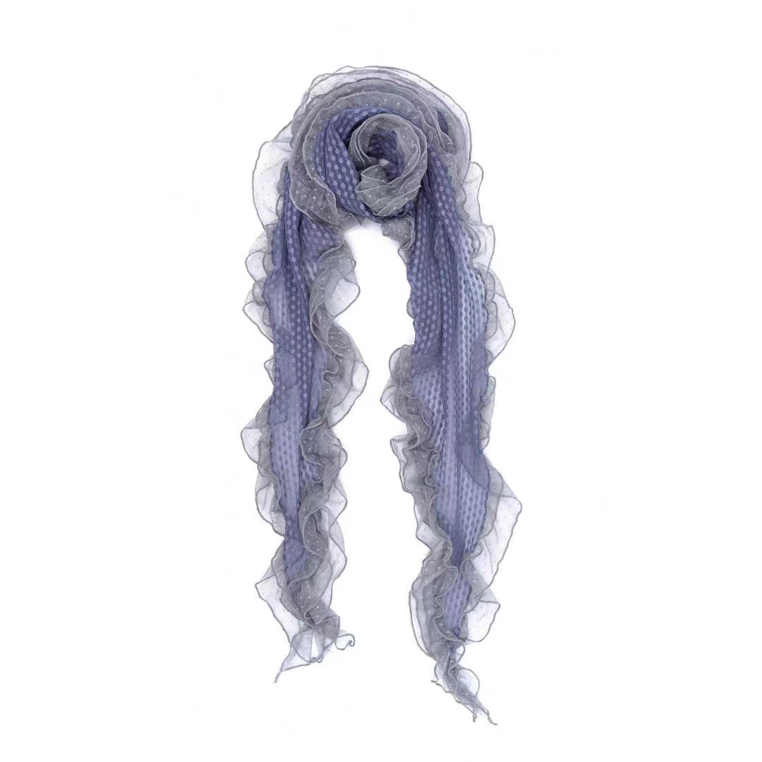 스팟상품! 후지이츠와 같은 스타일의 옛날 그레이 블루 도트무늬 레이스 스카프 여성용 긴 스카프스토어 가기