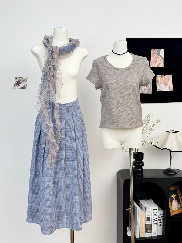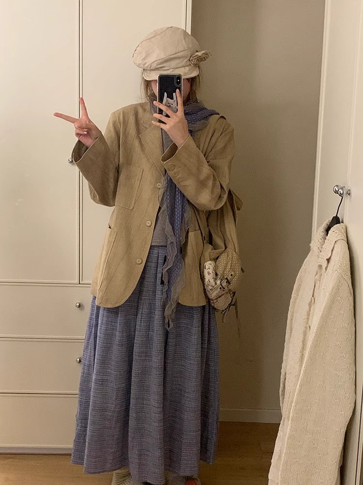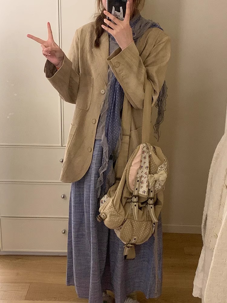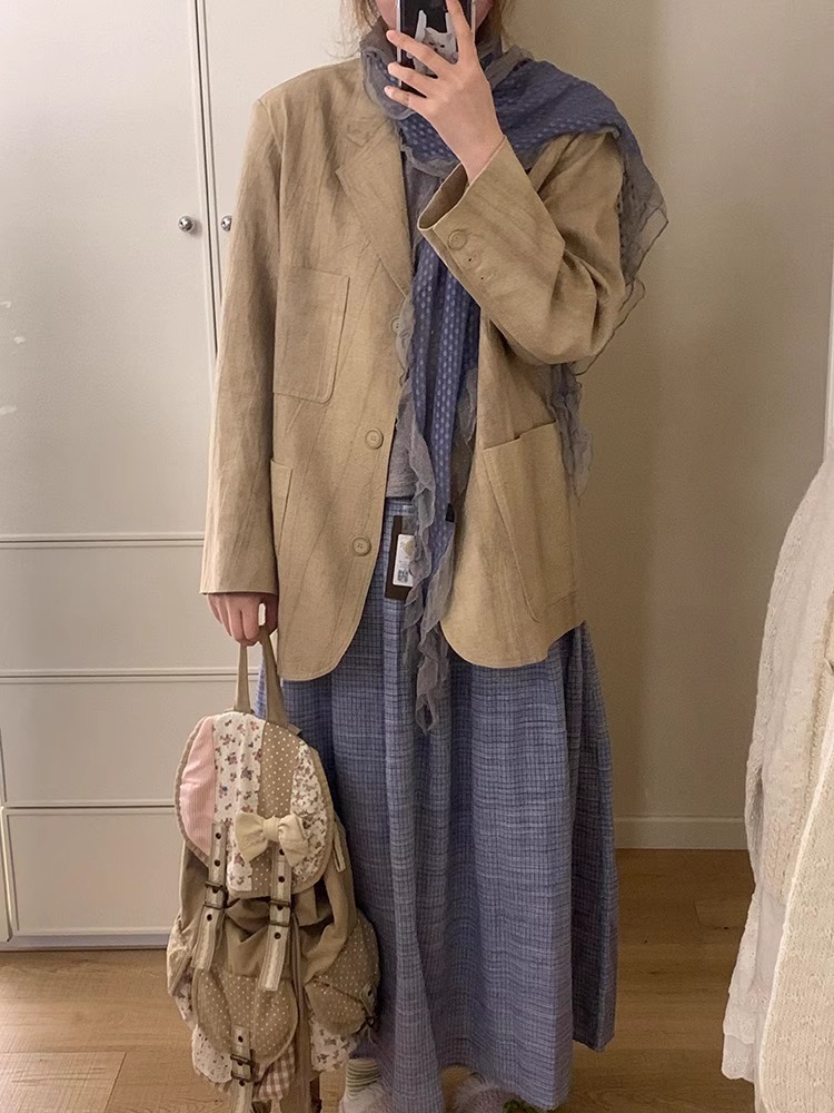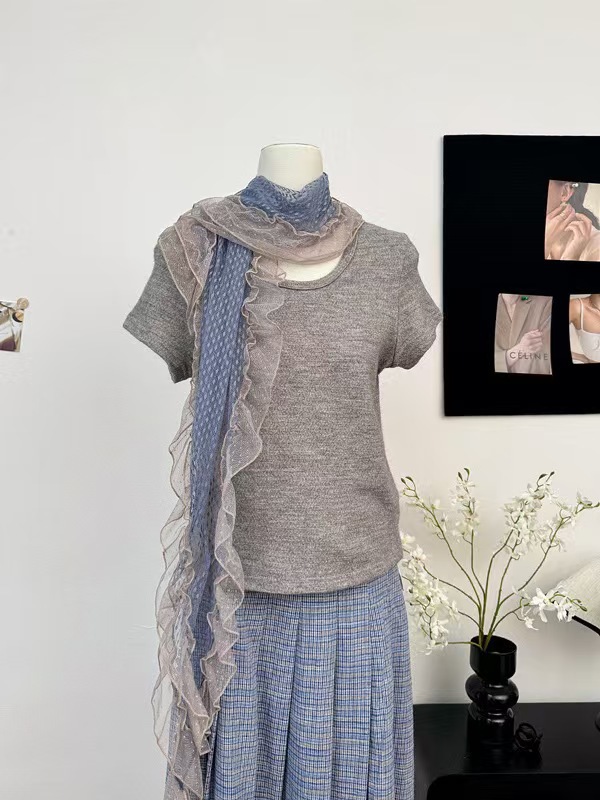 스팟상품! 후지이츠와 같은 스타일의 옛날 그레이 블루 도트무늬 레이스 스카프 여성용 긴 스카프스토어 가기