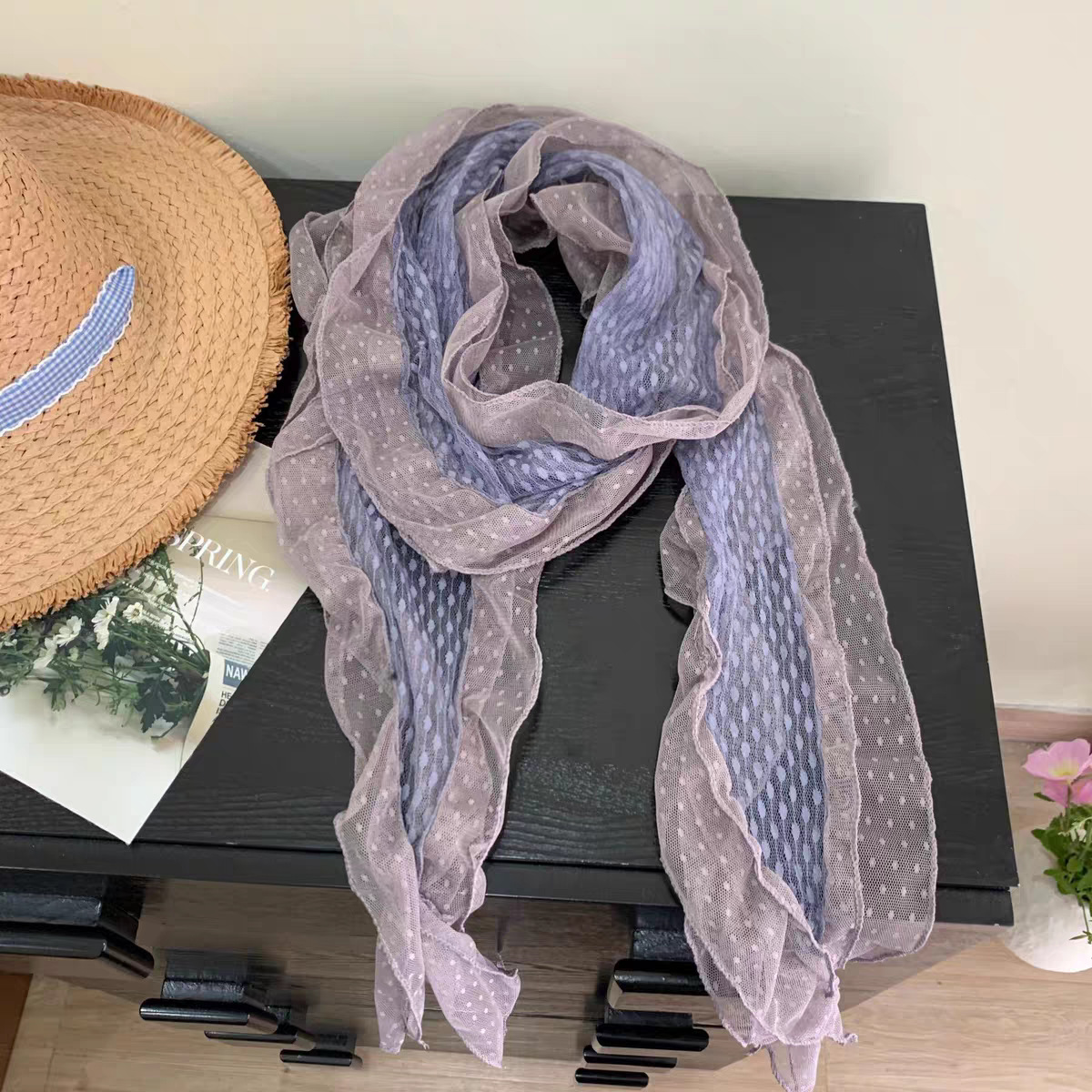 스팟상품! 후지이츠와 같은 스타일의 옛날 그레이 블루 도트무늬 레이스 스카프 여성용 긴 스카프