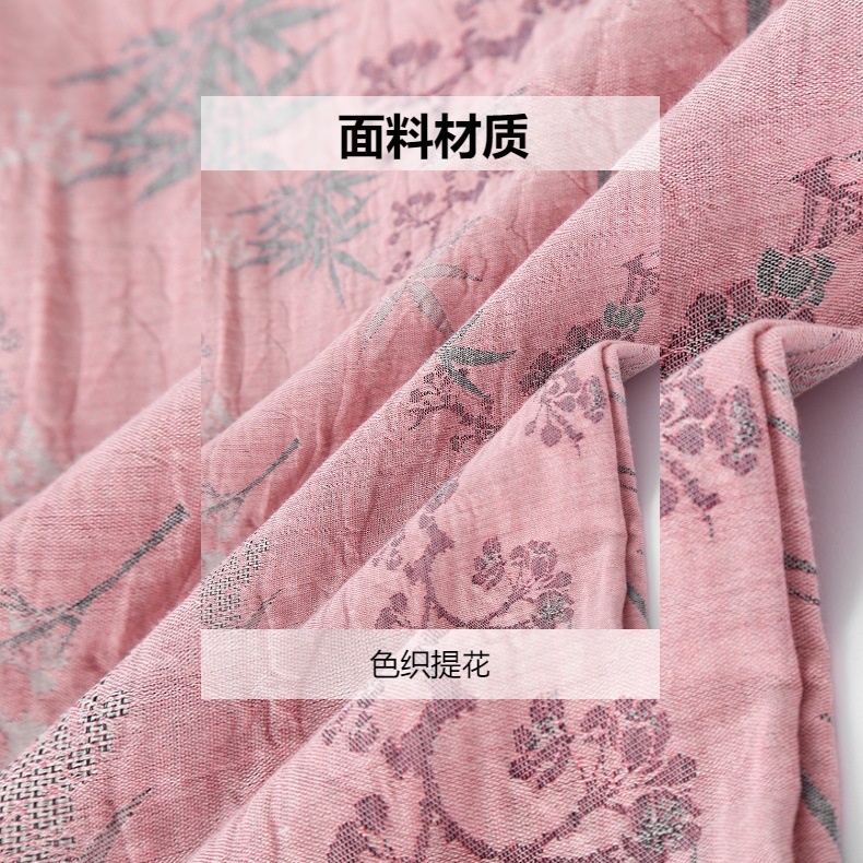 여성용 잠옷, 원사 염색 순면 자카드 봄 여름 이중 원사 홈 라펠 반팔 바지 반바지 3피스 홈웨어 세트
