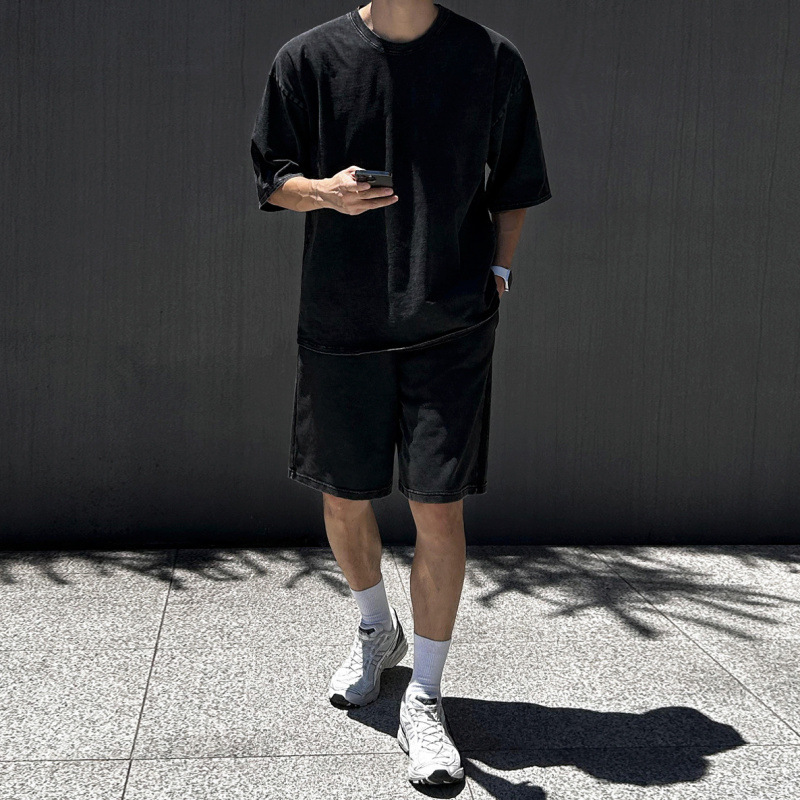 MYQ 여름 캐주얼 스포츠 세트 남자 드레스 느슨한 반팔 티셔츠 한국식 스트레이트 반바지스토어 가기