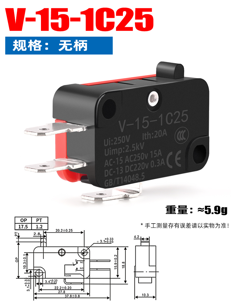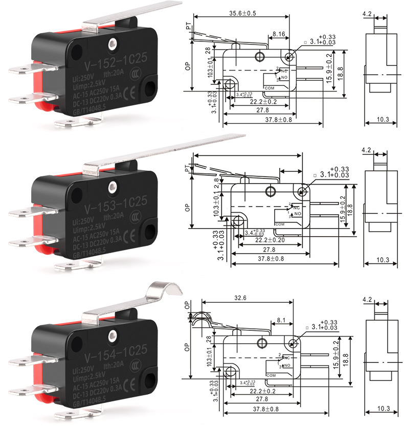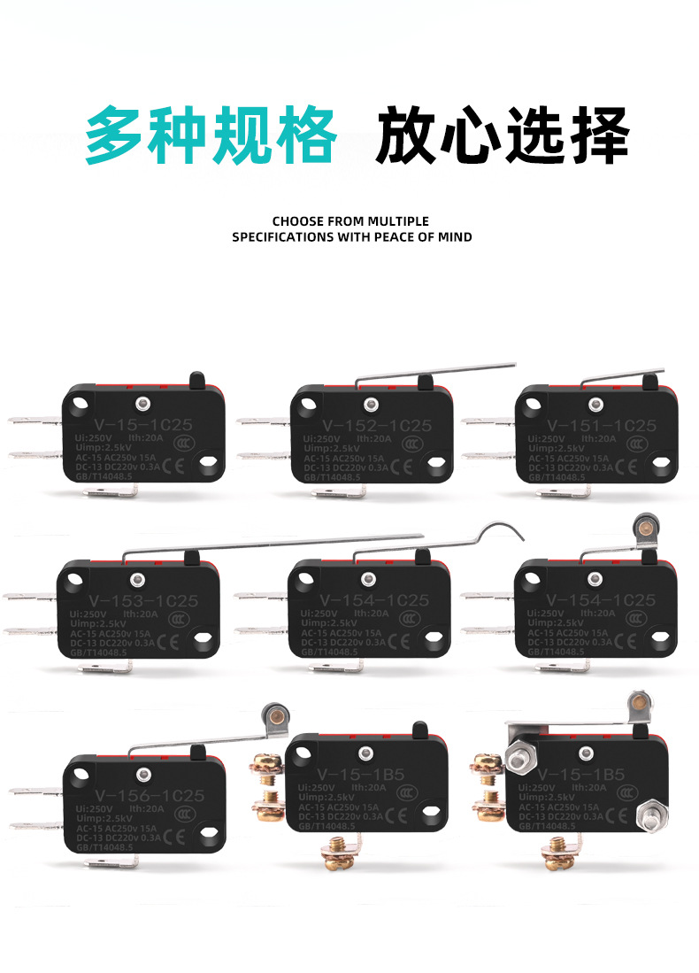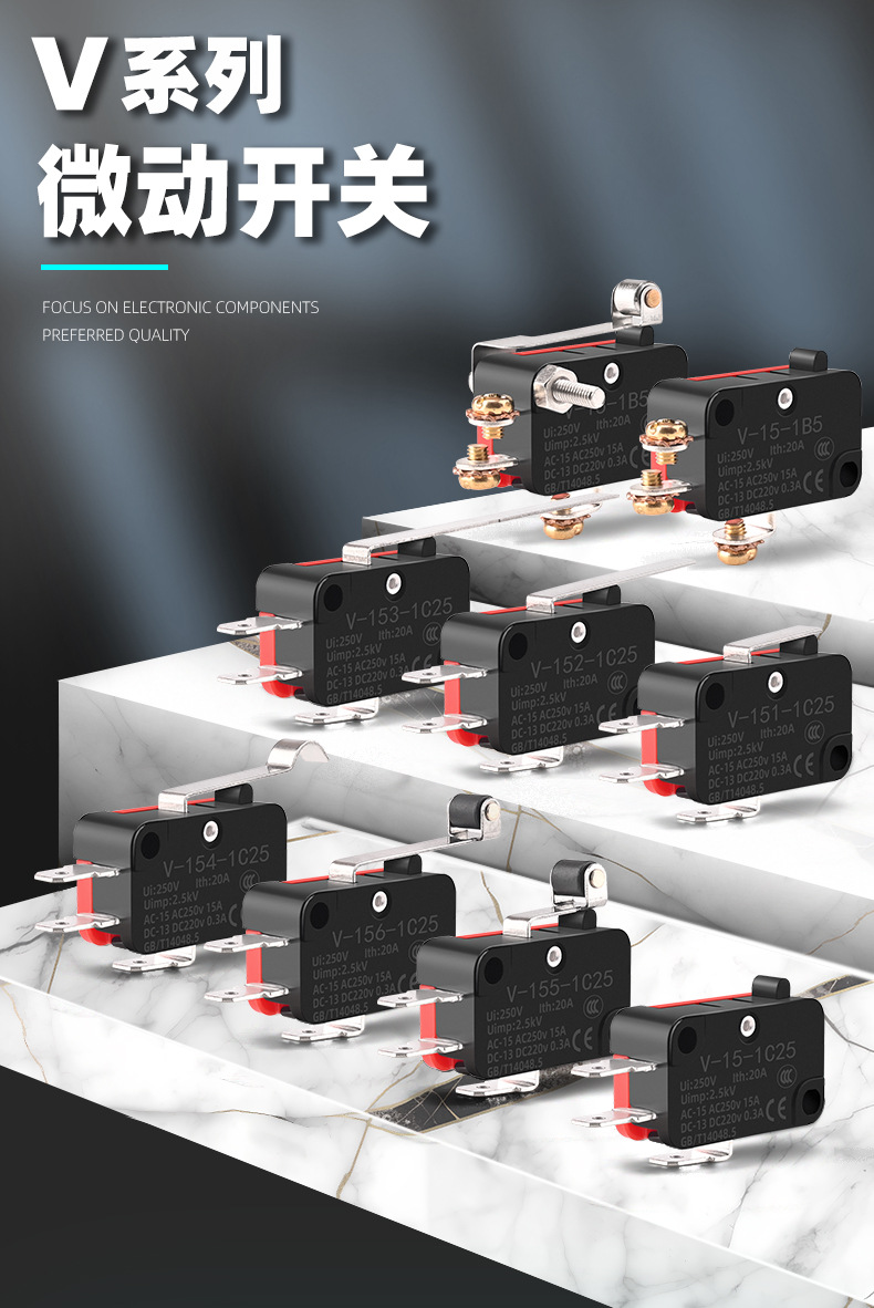 소형 스트로크 리미트 마이크로 스위치 V-15 V-152 V-153 V-155 V-156-1C25 실버 접점
