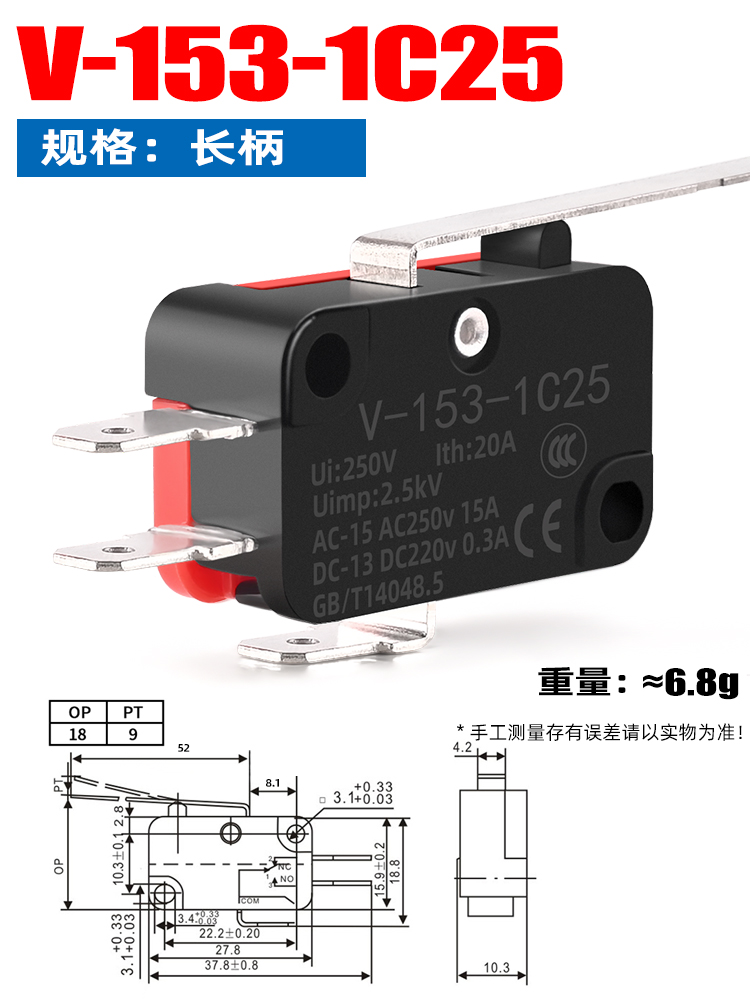소형 스트로크 리미트 마이크로 스위치 V-15 V-152 V-153 V-155 V-156-1C25 실버 접점스토어 가기