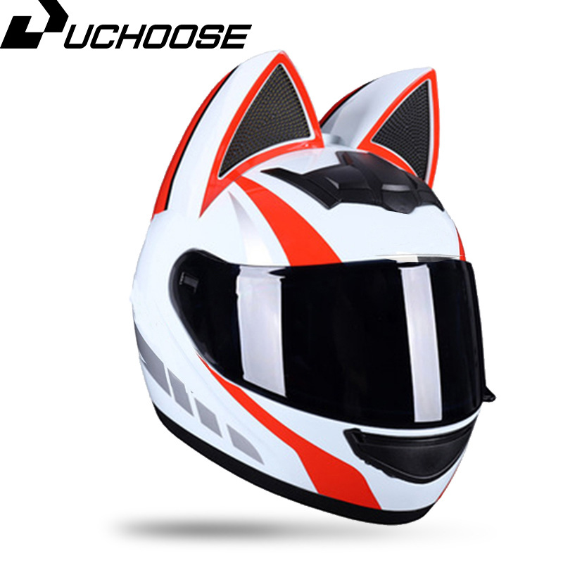 전기 오토바이 고양이 귀 헬멧 여성용 사계절 풀페이스 헬멧 남성용 라이더 오토바이 귀여운 토끼 귀 인기 제품