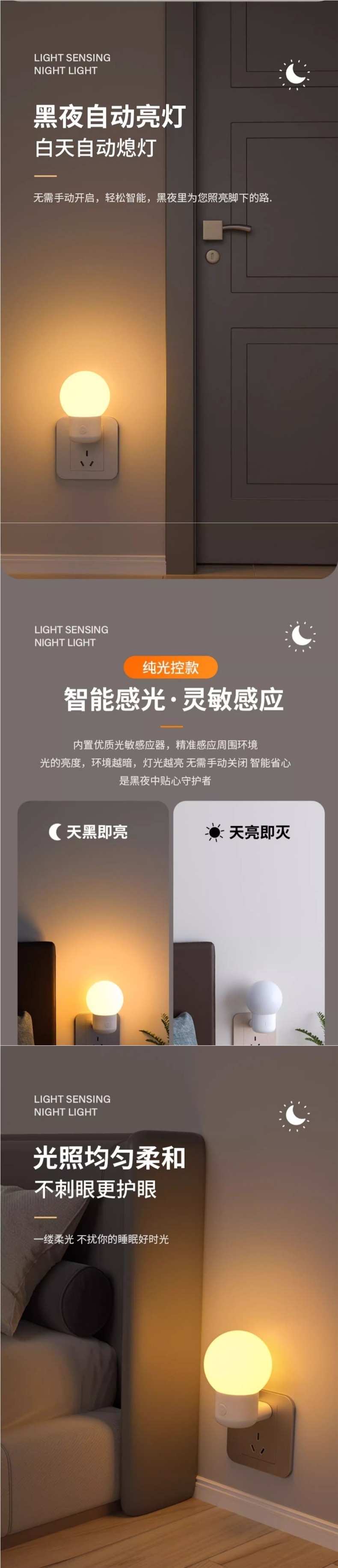 야간 조명 제어 에너지 절약 센서 램프 아기 수면 야간 조명 수유 침실 부드러운 빛 플러그인 눈 보호 항상 밝게