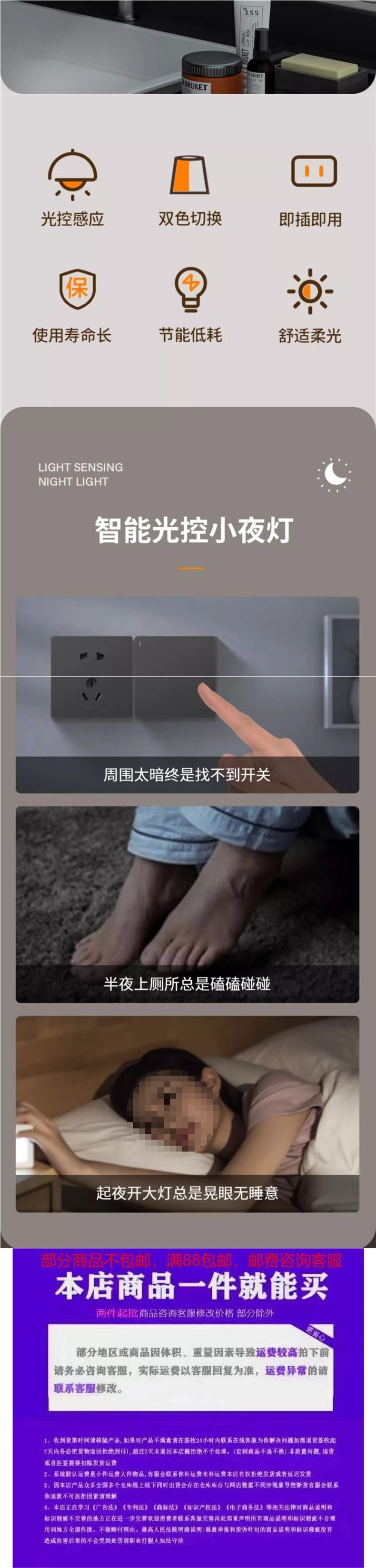 야간 조명 제어 에너지 절약 센서 램프 아기 수면 야간 조명 수유 침실 부드러운 빛 플러그인 눈 보호 항상 밝게스토어 가기