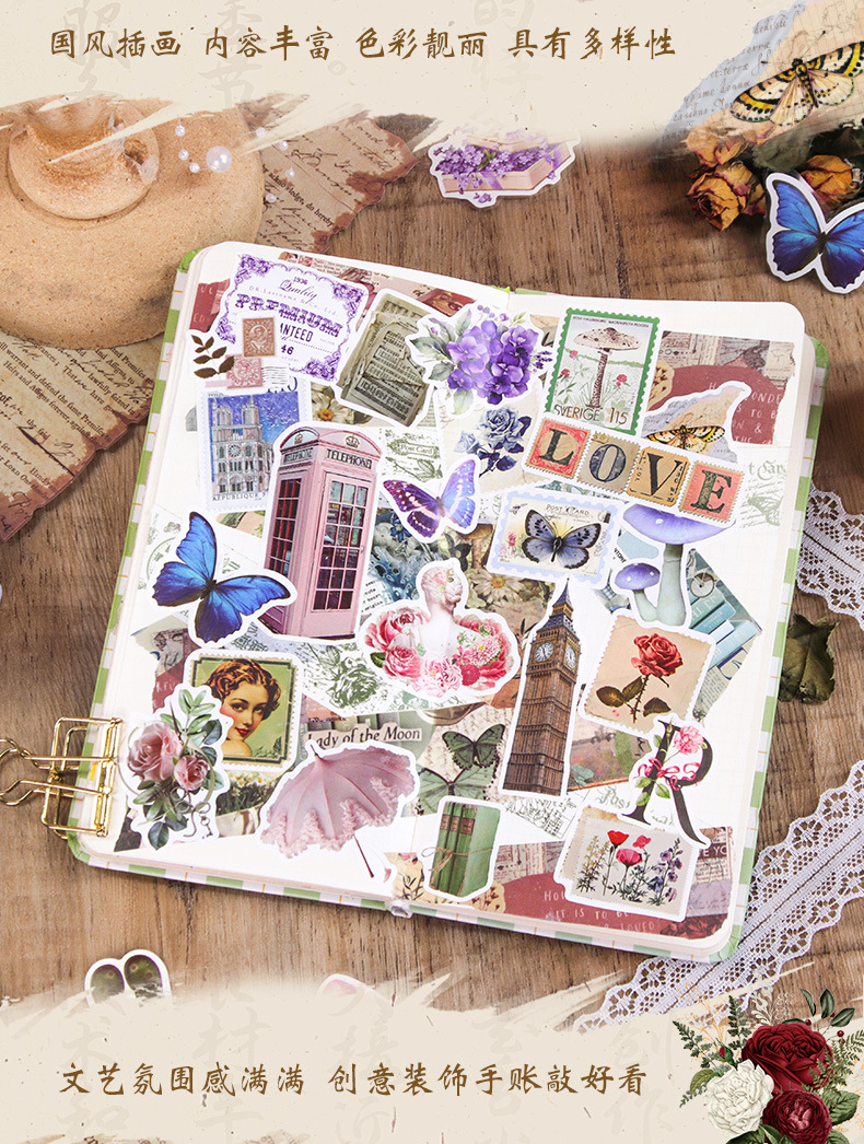 국경 간 인기 복고풍 스티커 테이프 크리 에이 티브 핸드북 PET 방수 스티커 DIY 휴대 전화 워터 컵 장식 재료 스티커스토어 가기