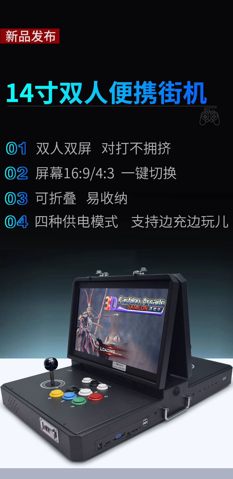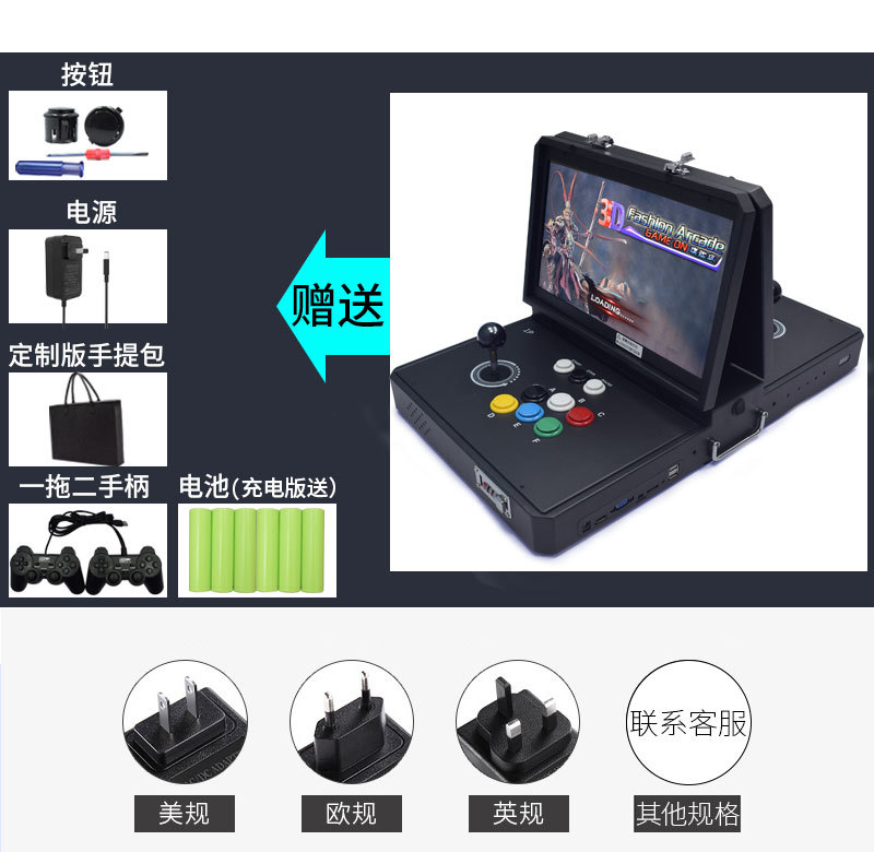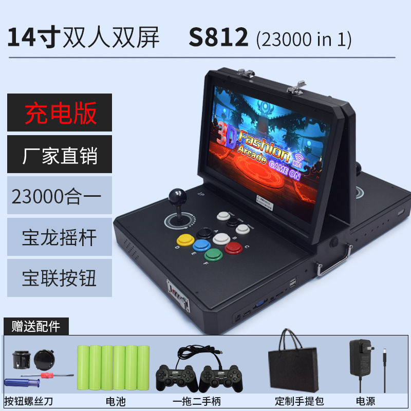 HD 14inch 등받이 휴대용 2인용 아케이드 향수 로커 격투 게임기 휴대용 달빛 보물 상자 플립 커버스토어 가기