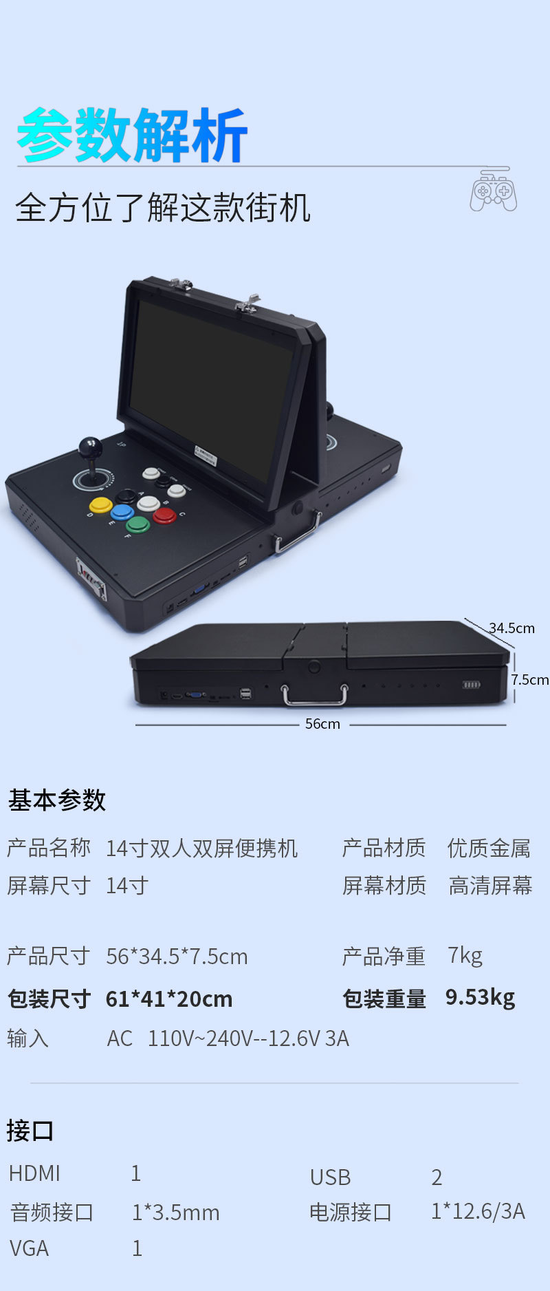 HD 14inch 등받이 휴대용 2인용 아케이드 향수 로커 격투 게임기 휴대용 달빛 보물 상자 플립 커버