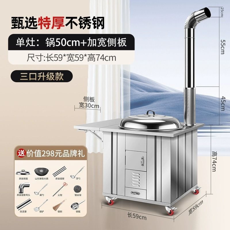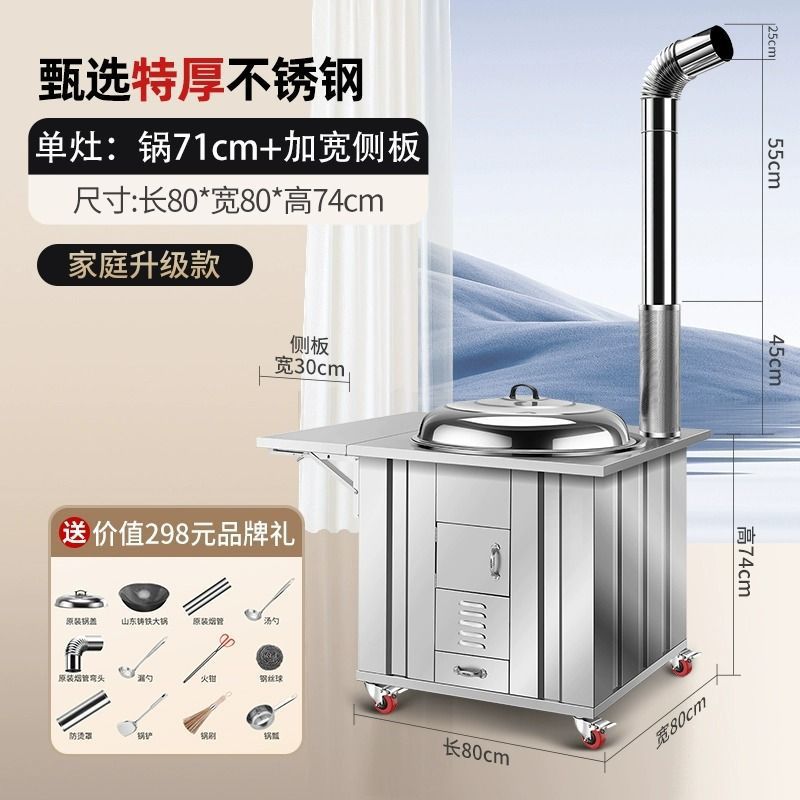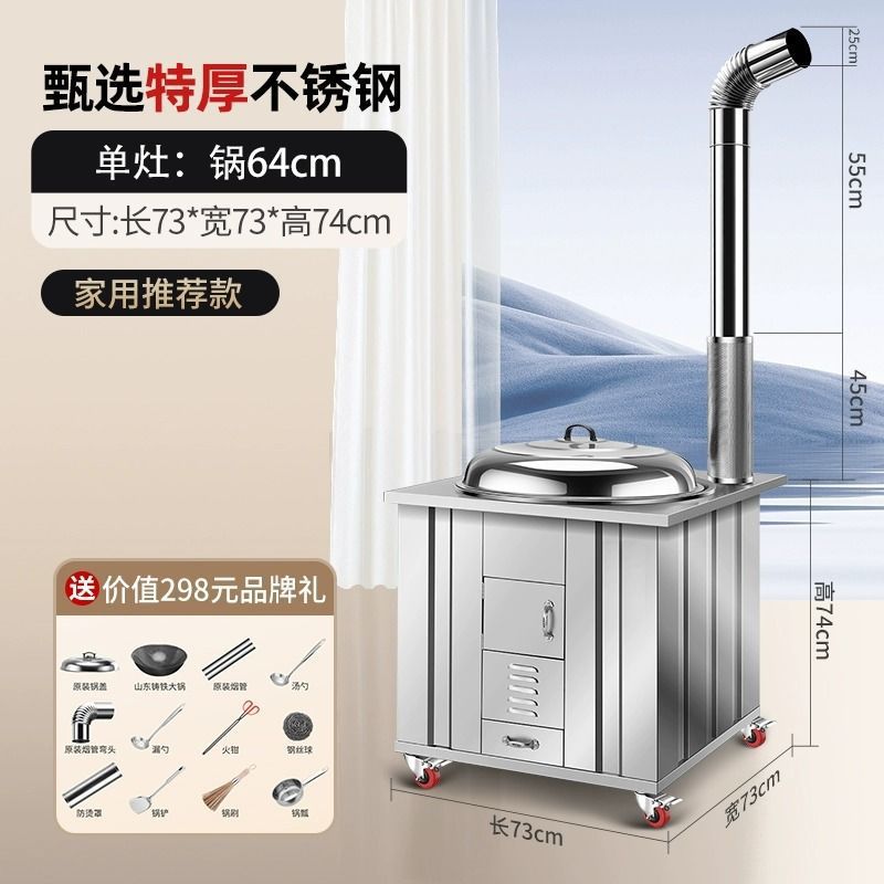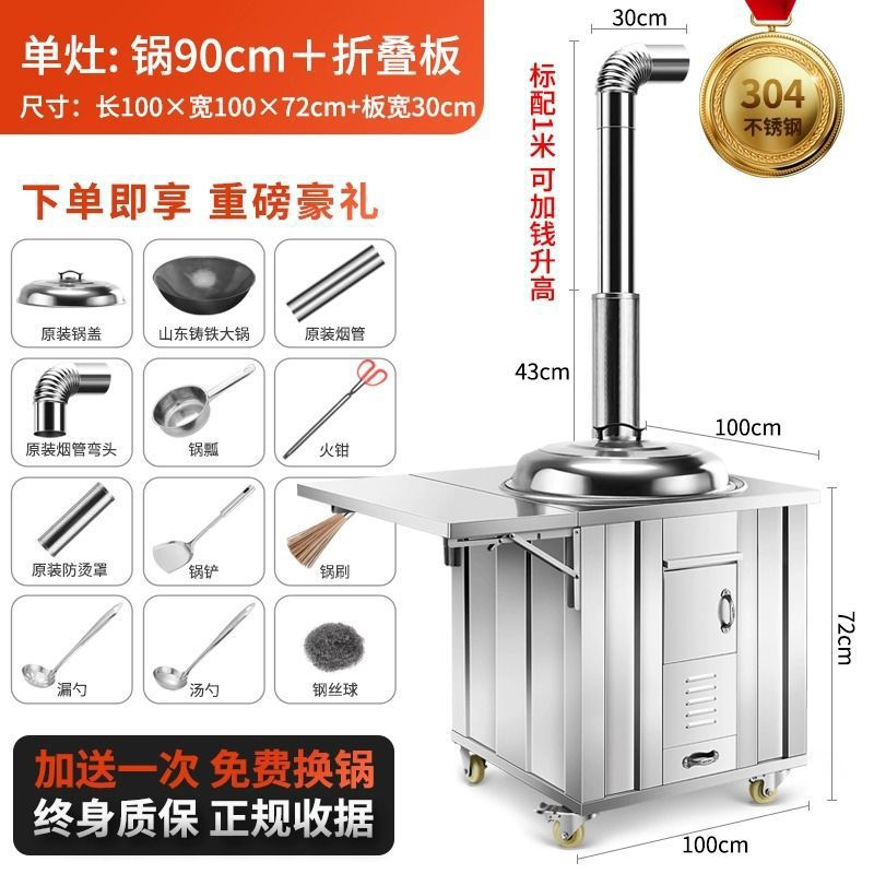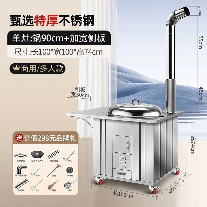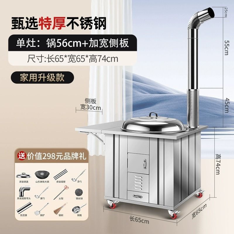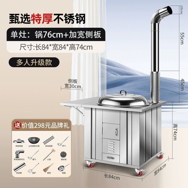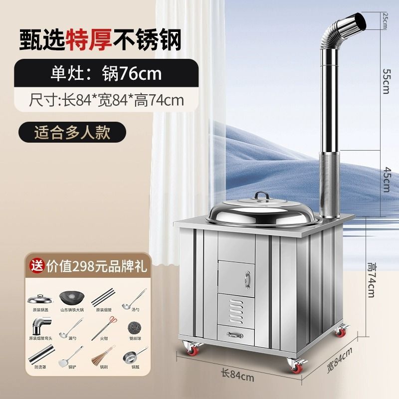 새로운 스테인레스 스틸 농촌 304 장작 스토브 가정용 모바일 철 냄비 대형 냄비 토양 스토브 야외 장작 스토브