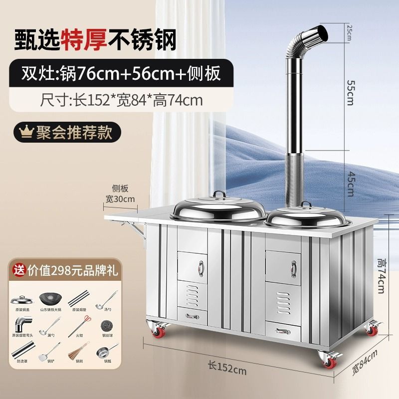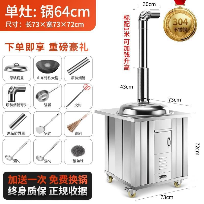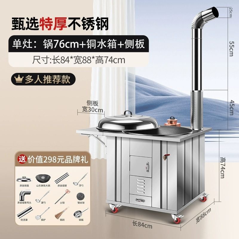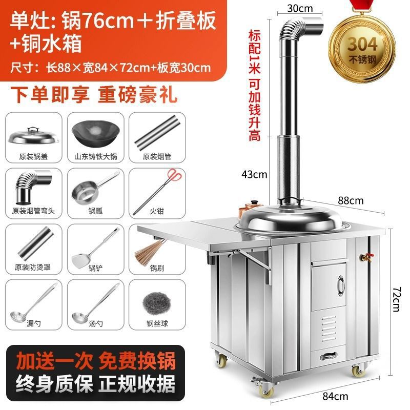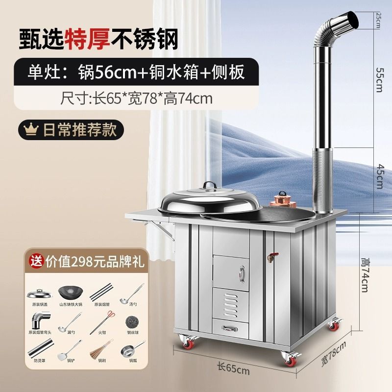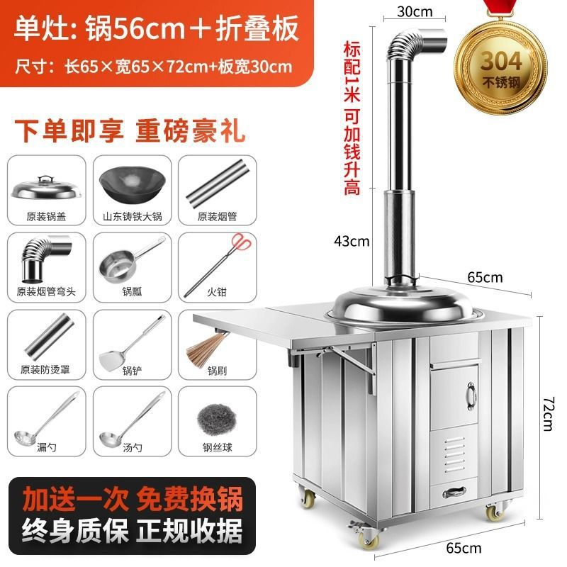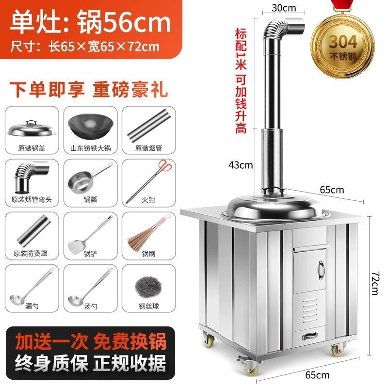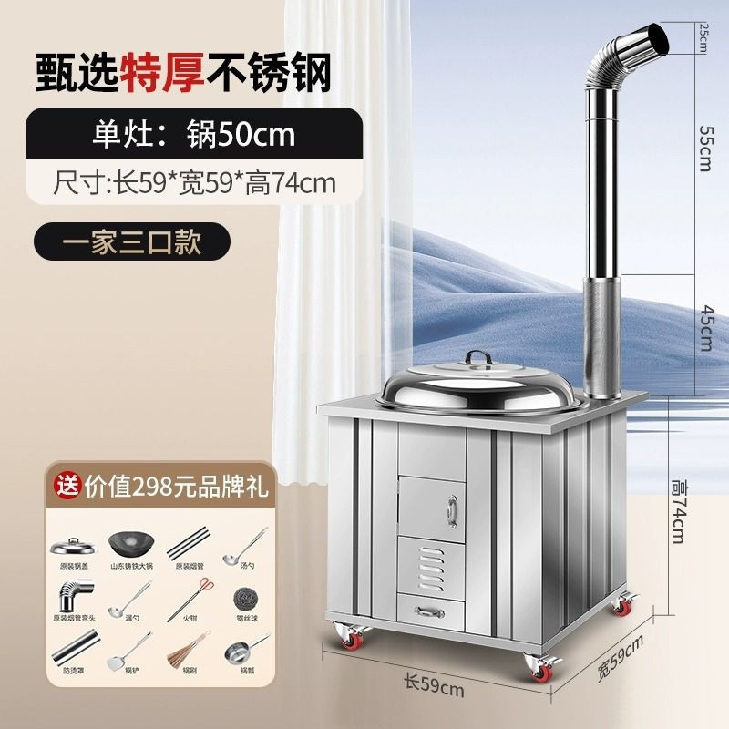 새로운 스테인레스 스틸 농촌 304 장작 스토브 가정용 모바일 철 냄비 대형 냄비 토양 스토브 야외 장작 스토브