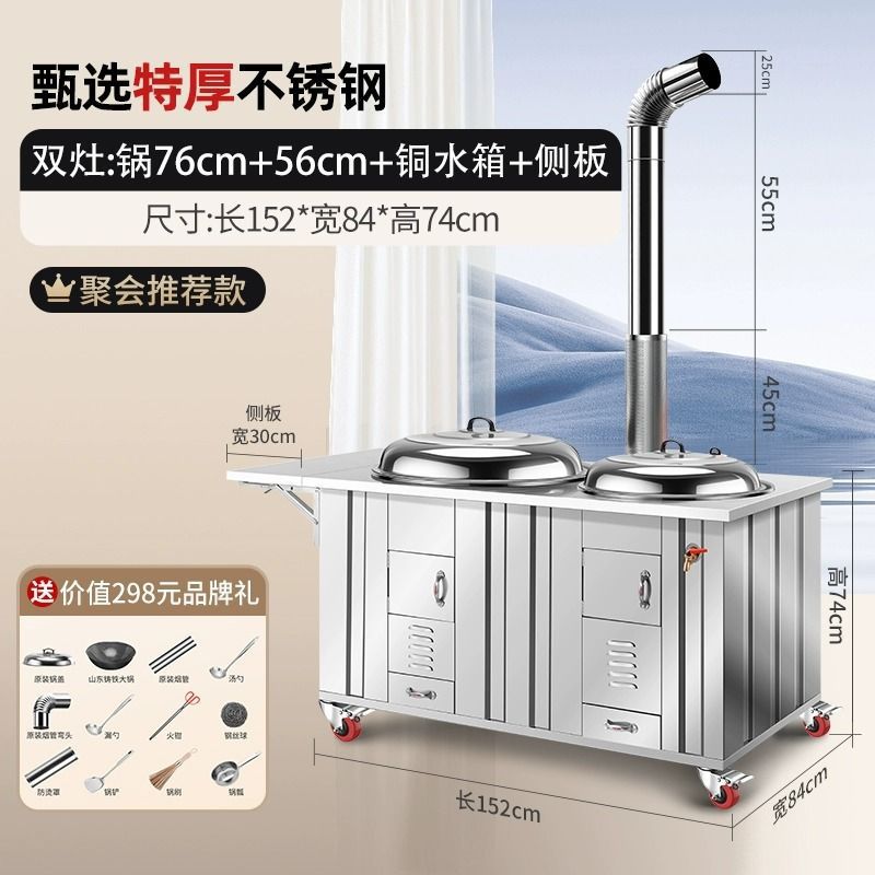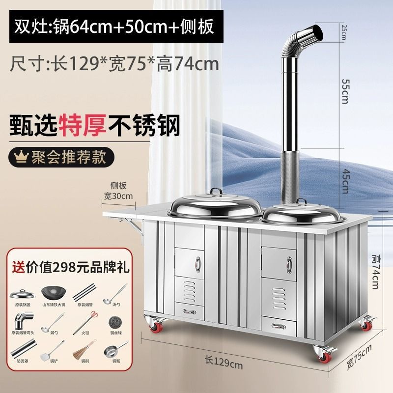 • 일반 특대 스테인리스 모델 - 20년 보증 - 이중 냄비 64cm+50cm 스토브