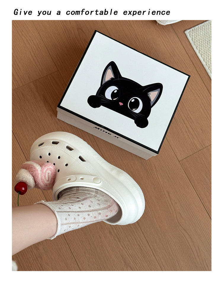 여성을위한 귀여운 만화 케이크 두 구멍 나막신 2025 여름 새로운 겉옷 캐주얼 두꺼운 밑창 높이 증가 하프 슬리퍼스토어 가기