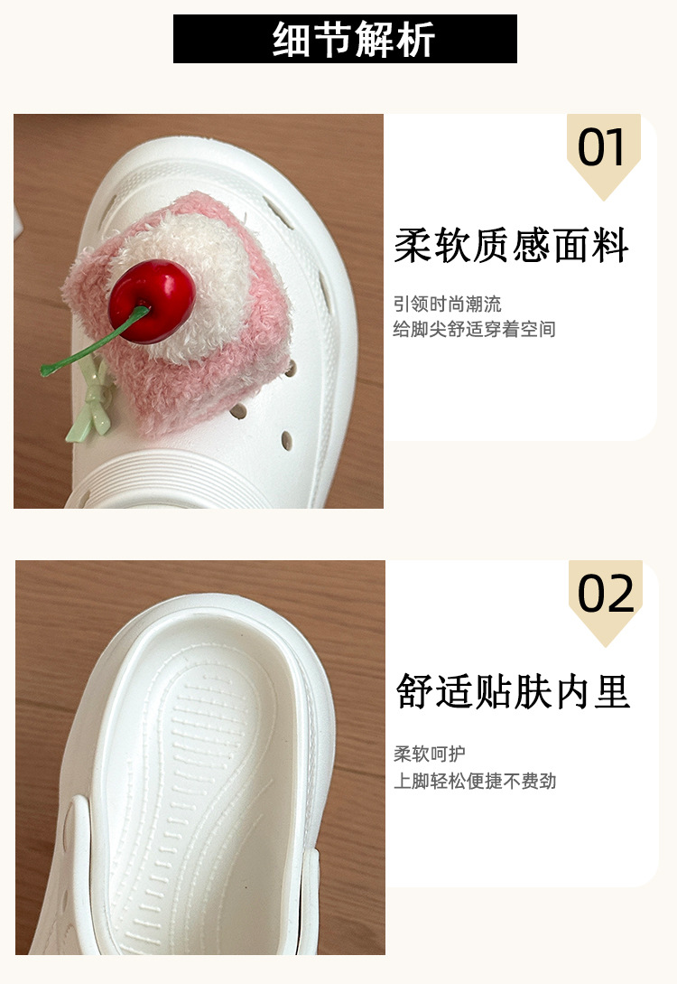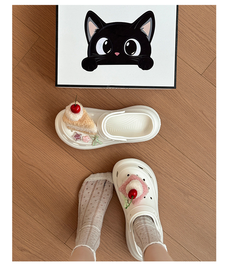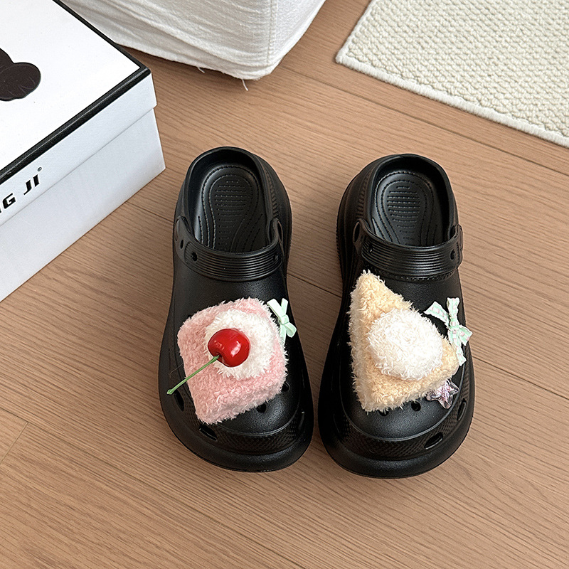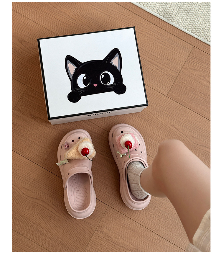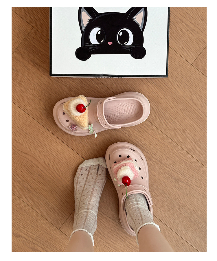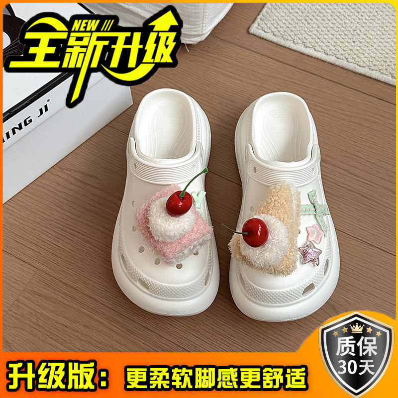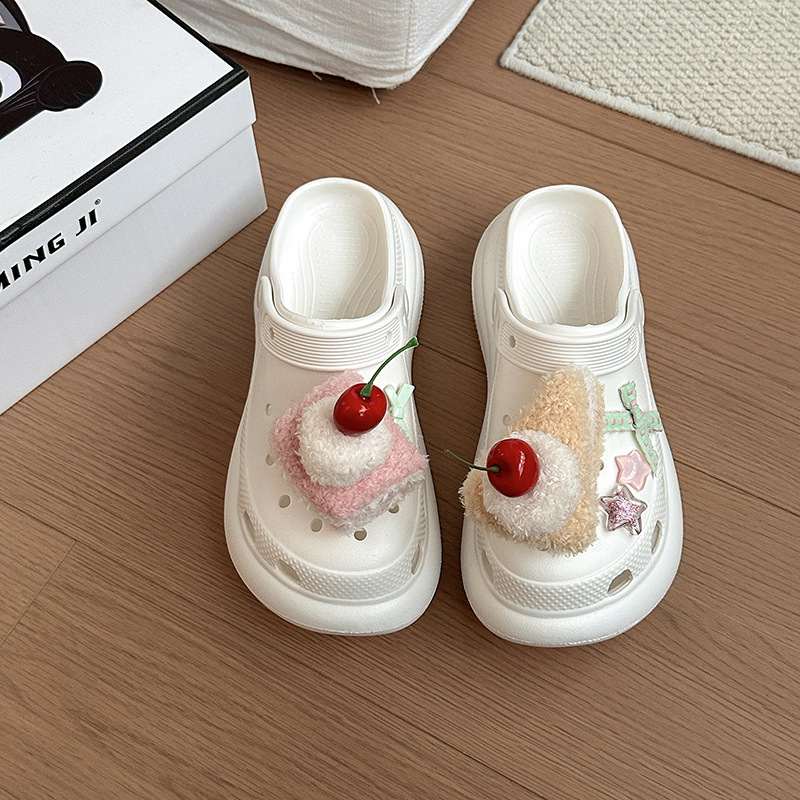 여성을위한 귀여운 만화 케이크 두 구멍 나막신 2025 여름 새로운 겉옷 캐주얼 두꺼운 밑창 높이 증가 하프 슬리퍼