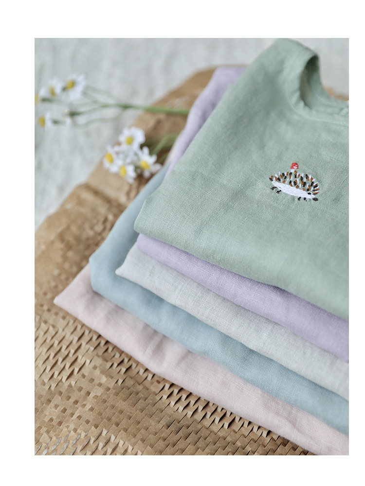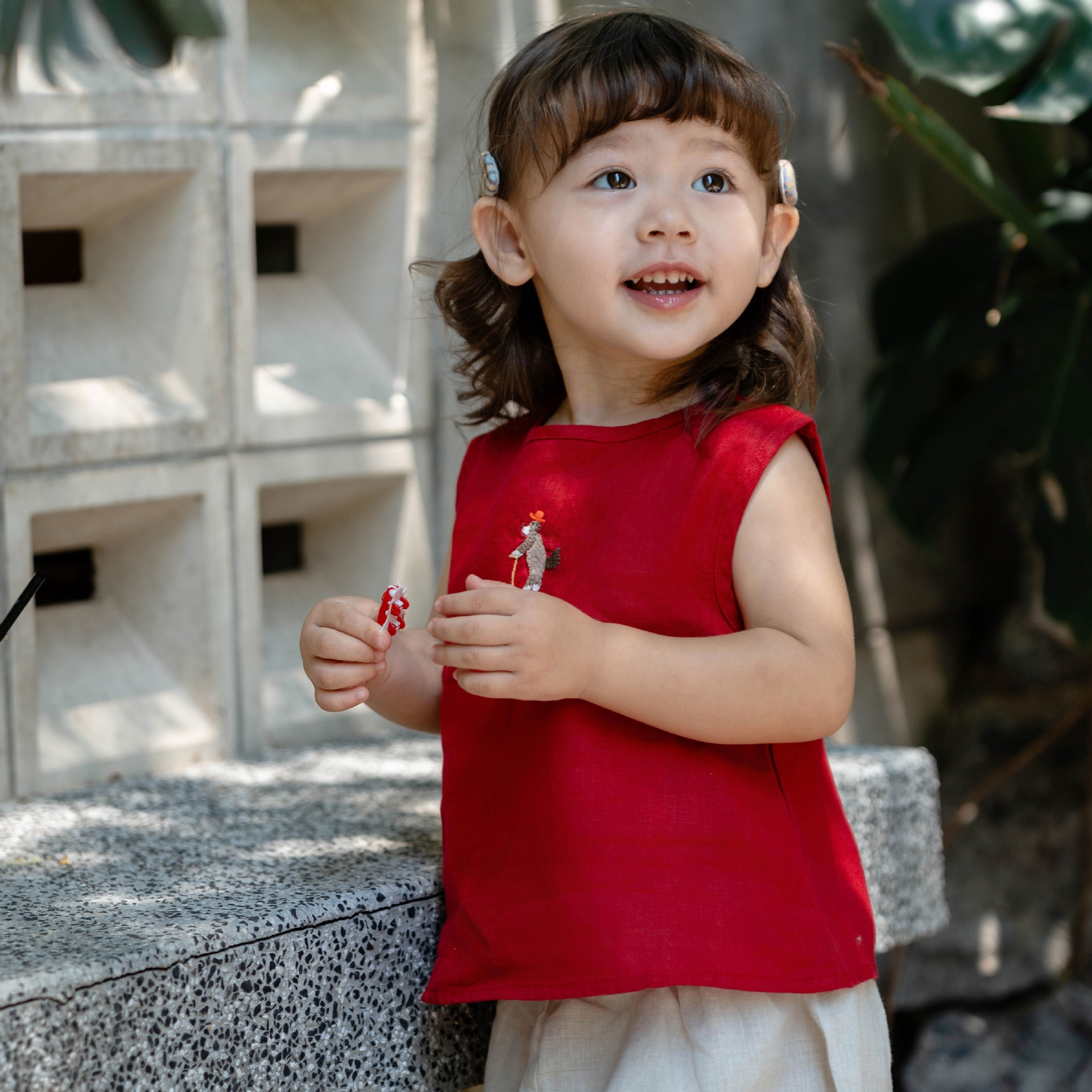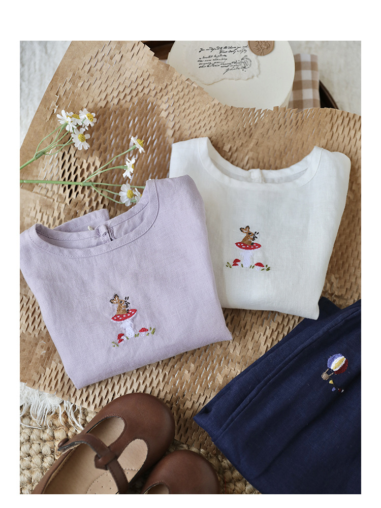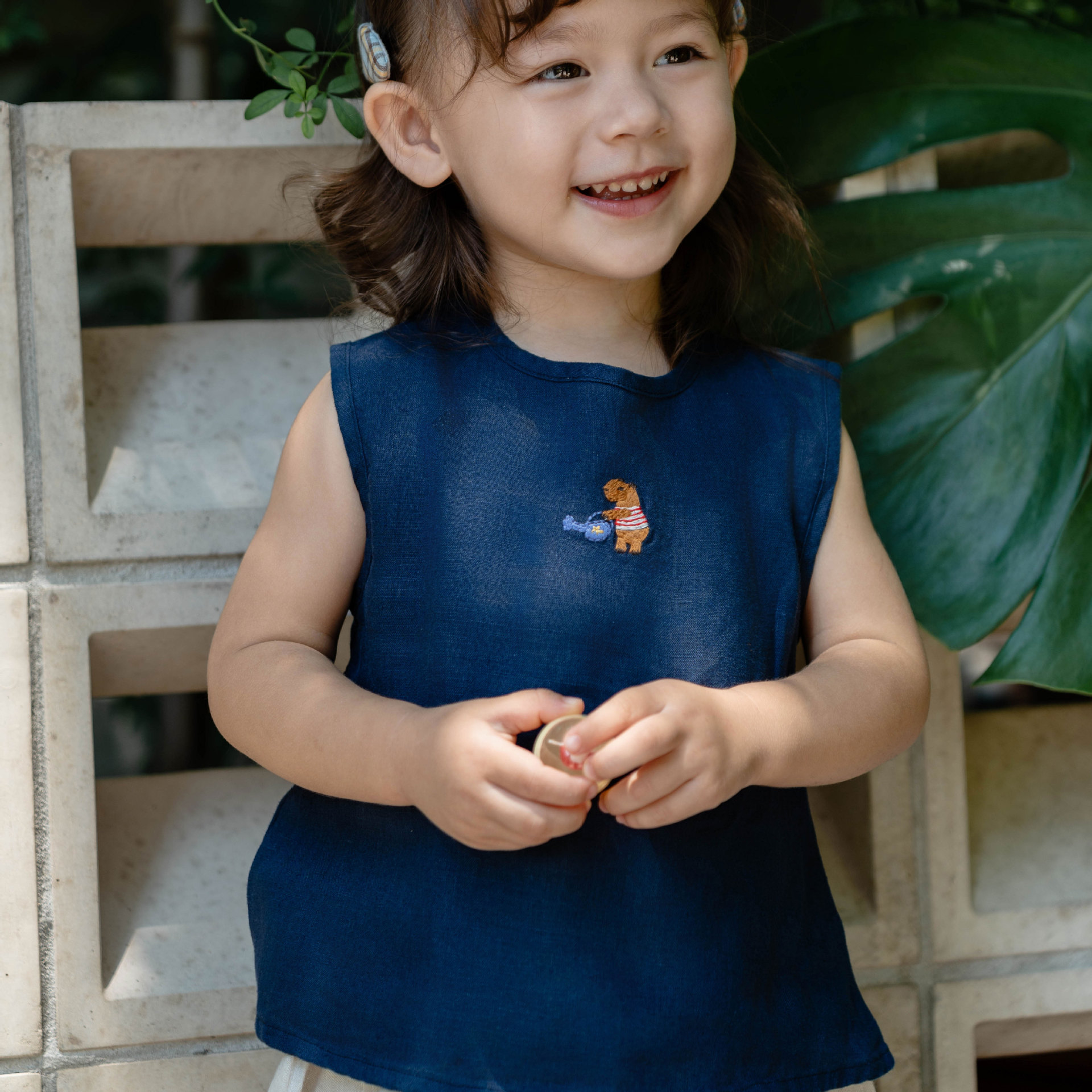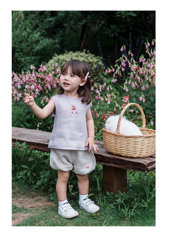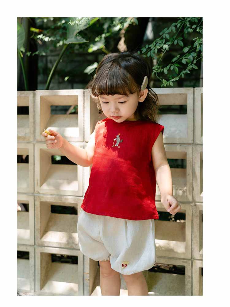 작은 앨리스 여름 민소매 100% 린넨 조끼 어린이 얇은 수 놓은 소년과 소녀 솔리드 컬러 탑 조끼