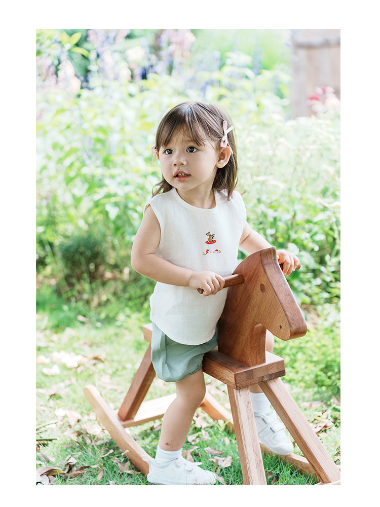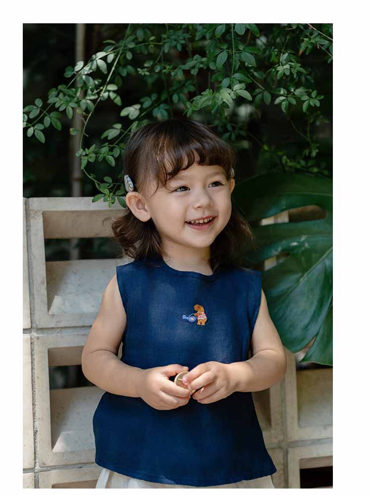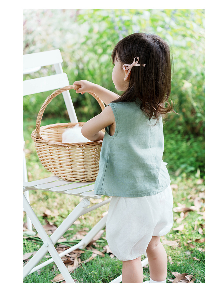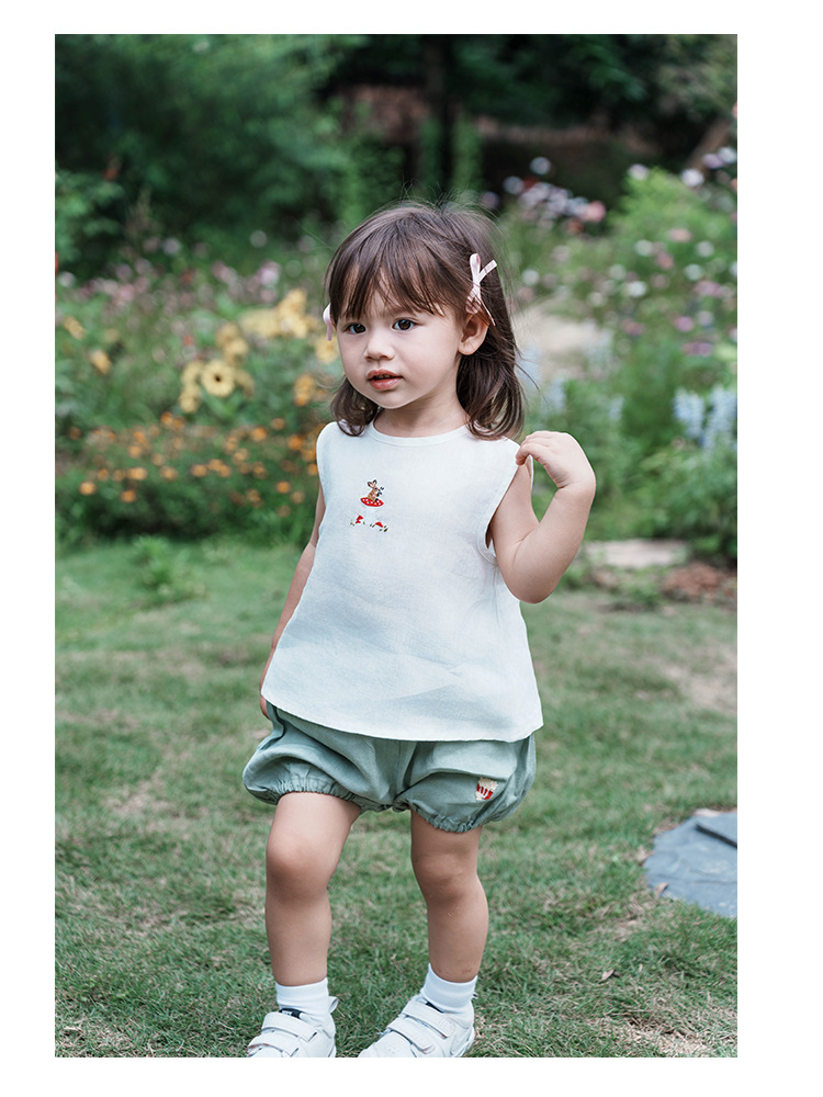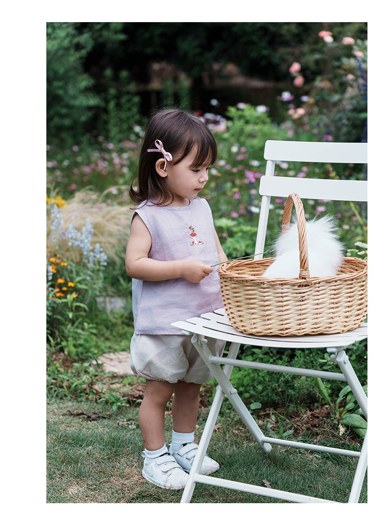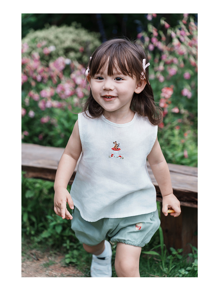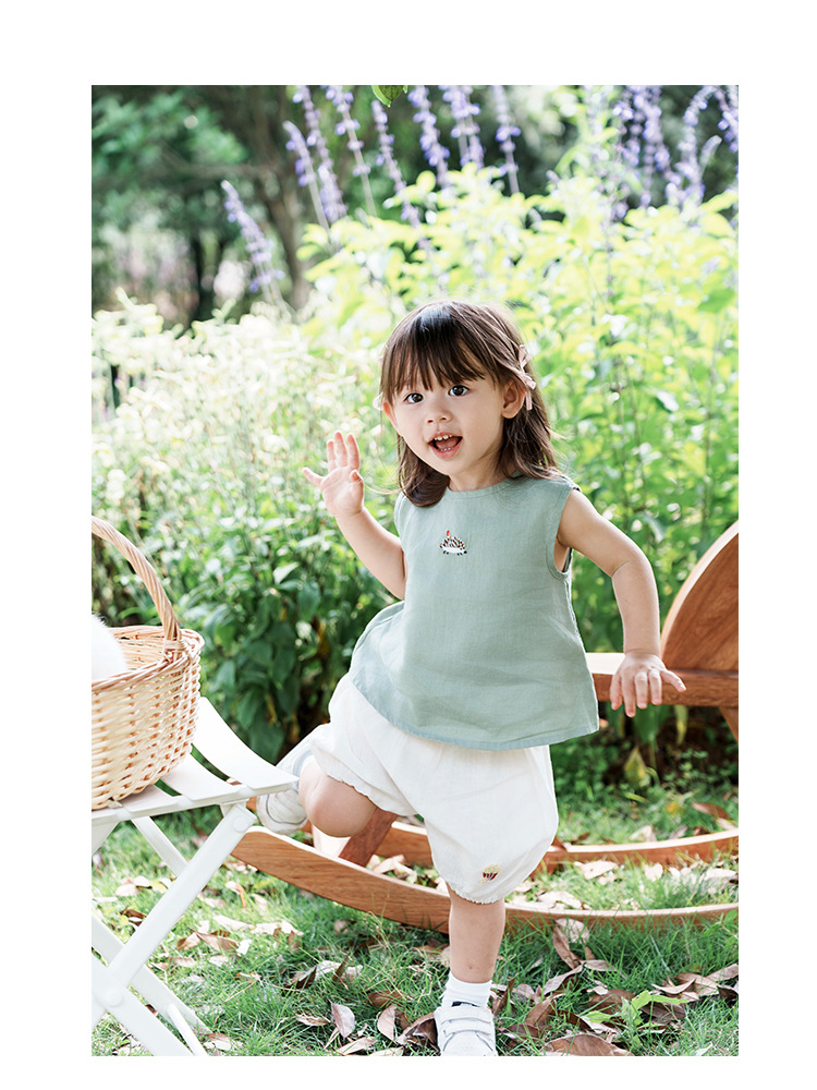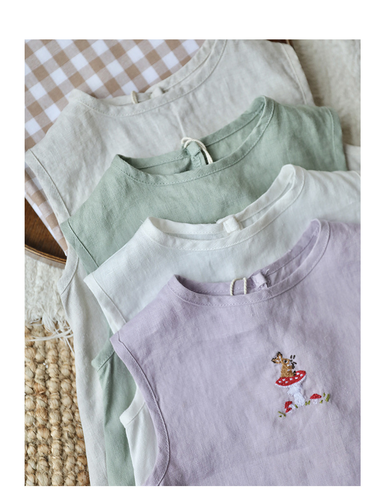 작은 앨리스 여름 민소매 100% 린넨 조끼 어린이 얇은 수 놓은 소년과 소녀 솔리드 컬러 탑 조끼스토어 가기