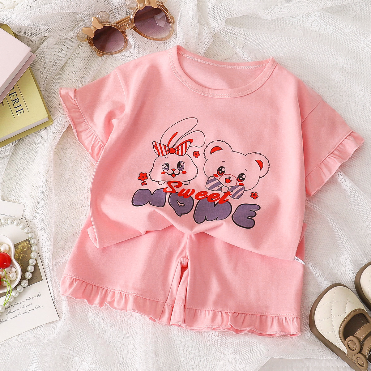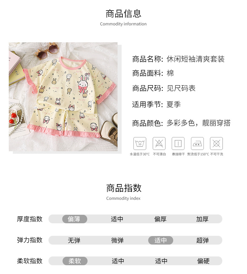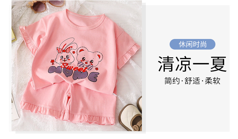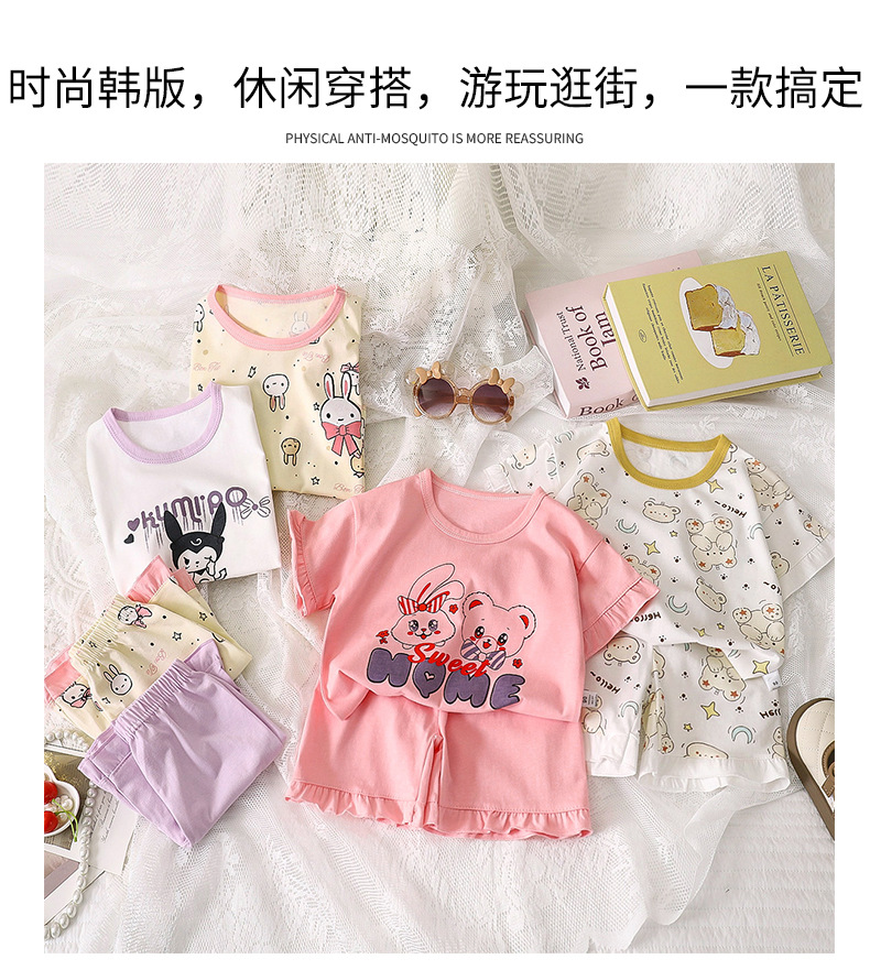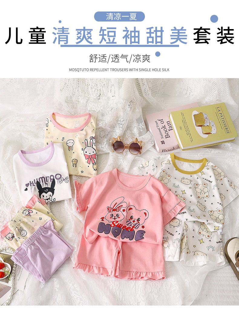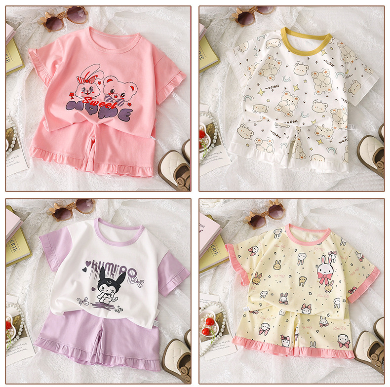 여자 세트 여름 새 순면 파자마 레이스 어린이 반팔 티셔츠 소녀 홈 의류 얇은 아동복스토어 가기
