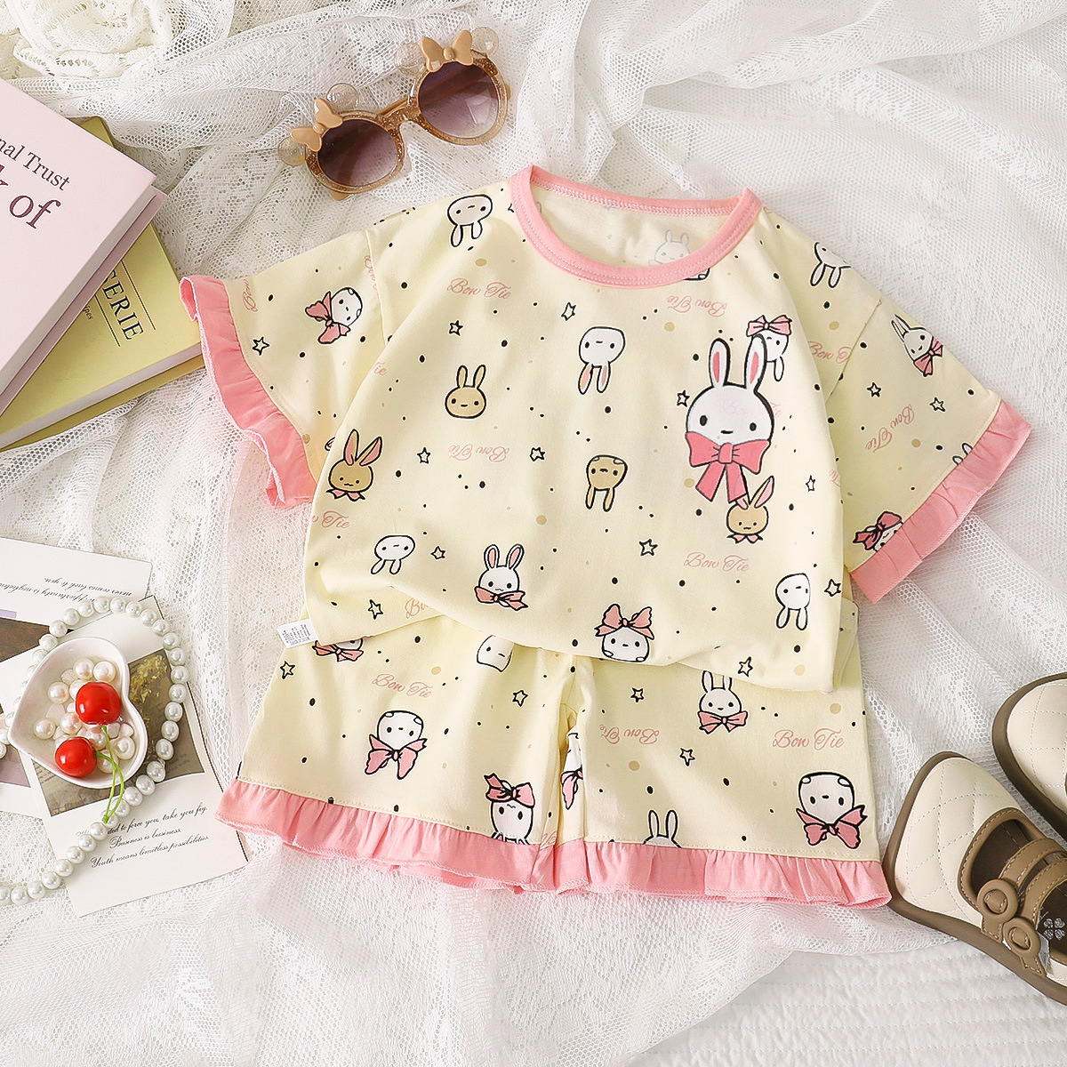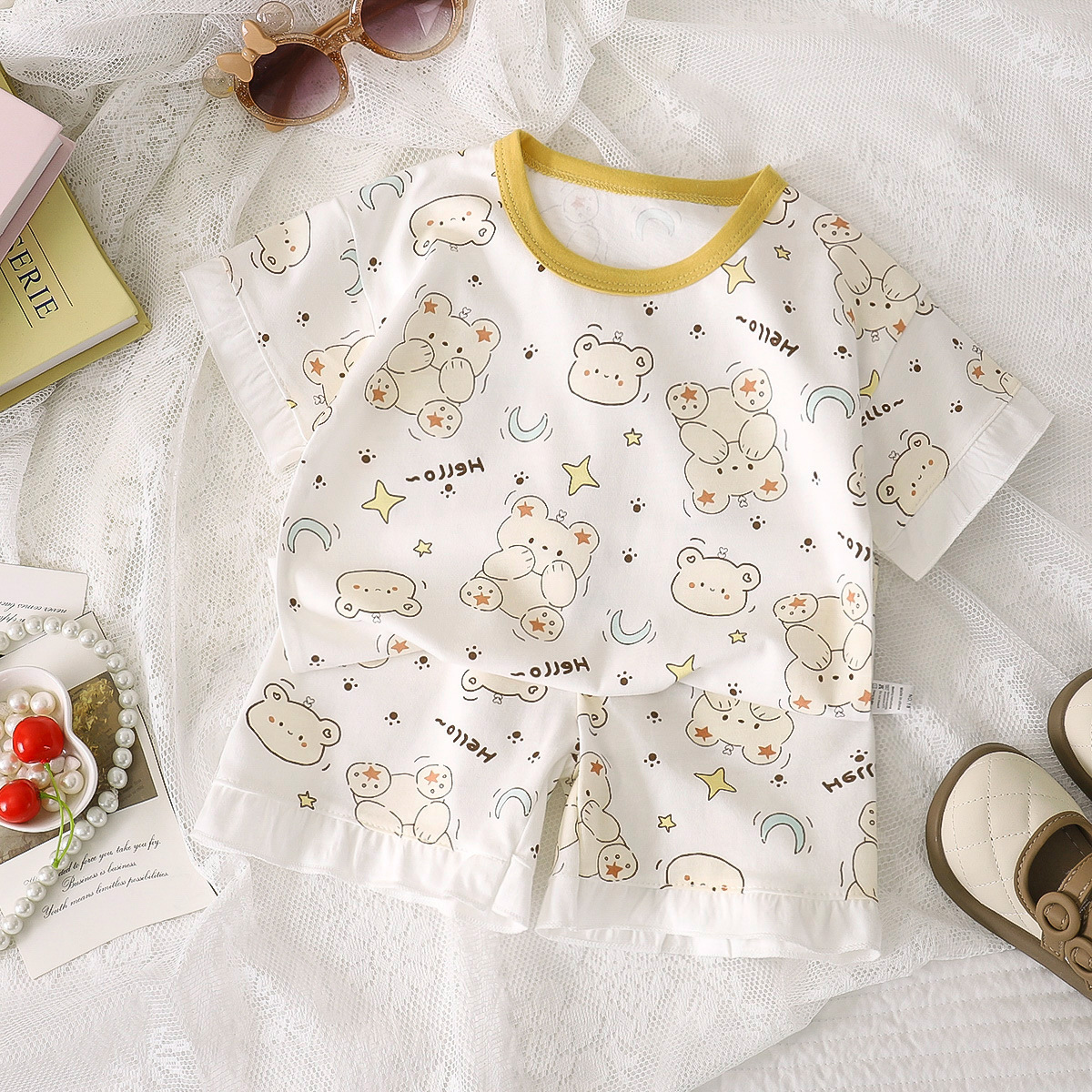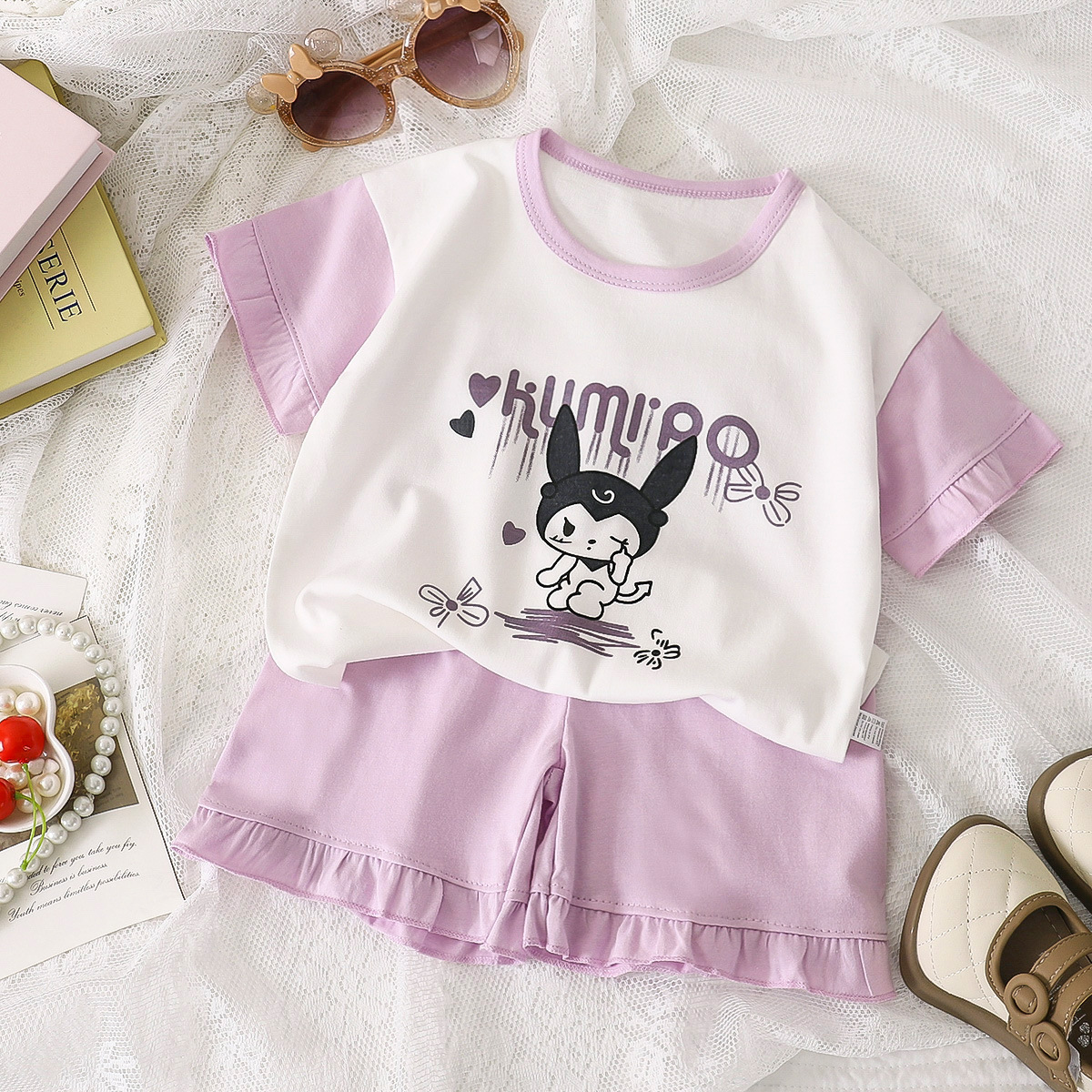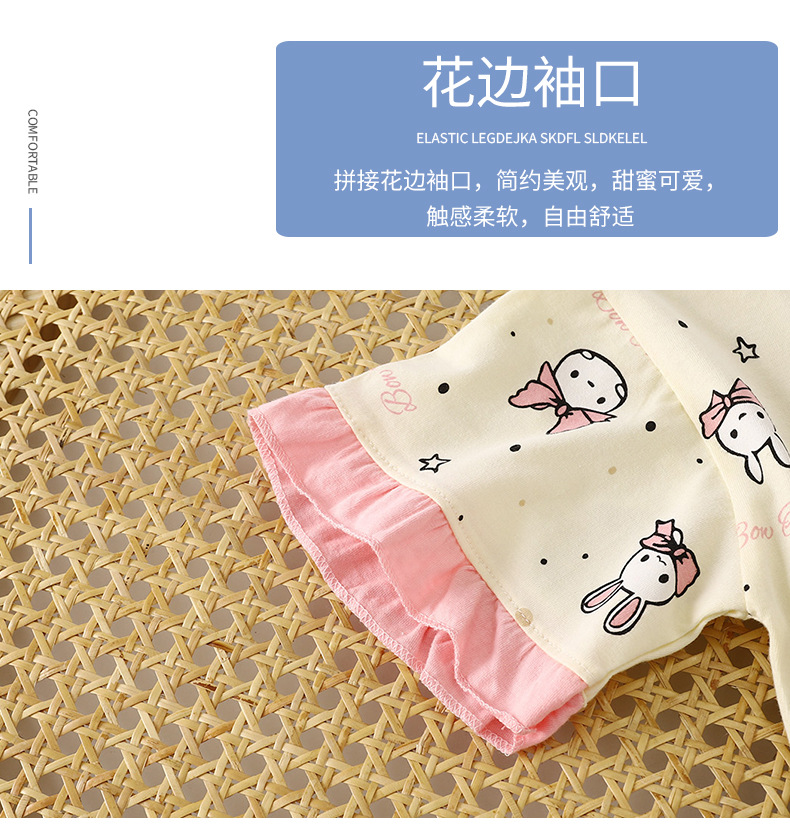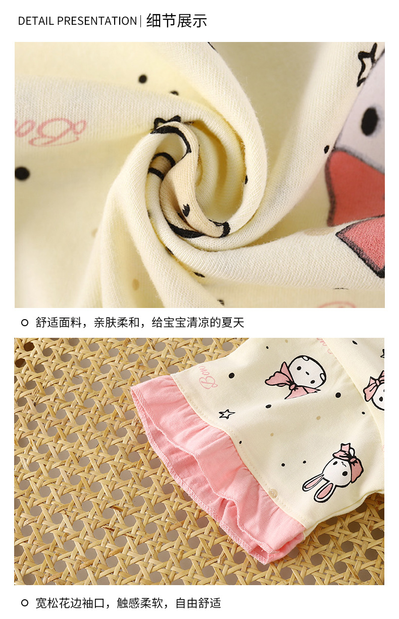 여자 세트 여름 새 순면 파자마 레이스 어린이 반팔 티셔츠 소녀 홈 의류 얇은 아동복스토어 가기