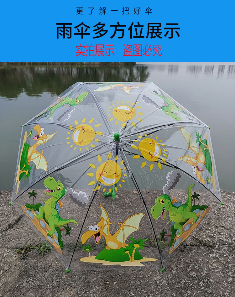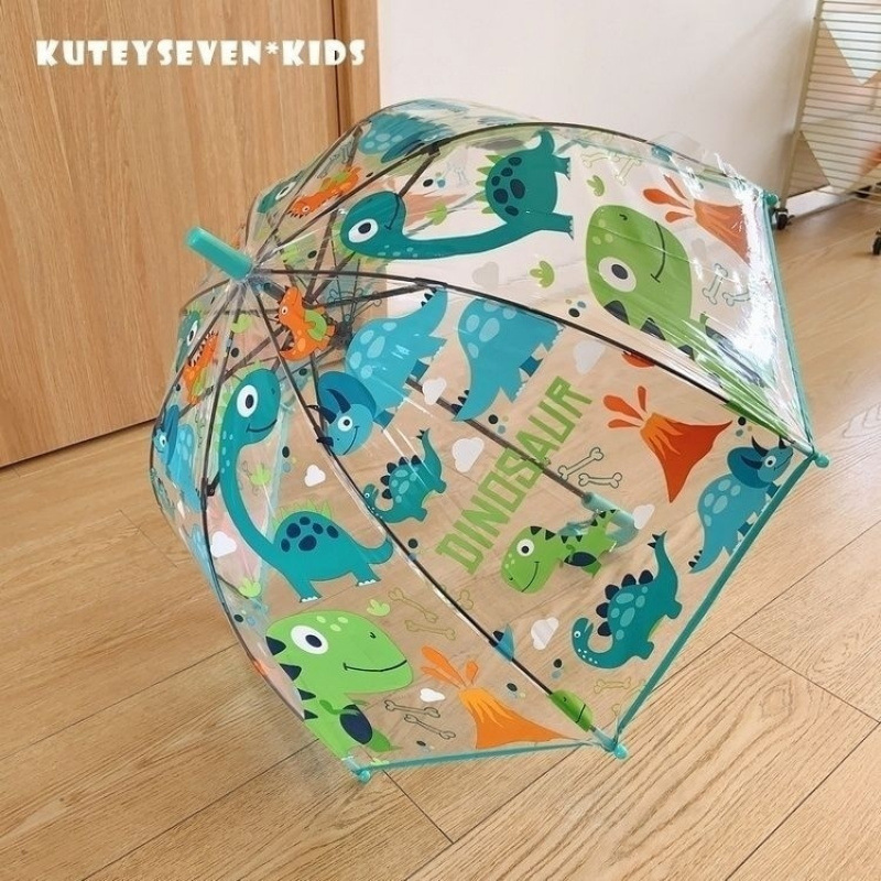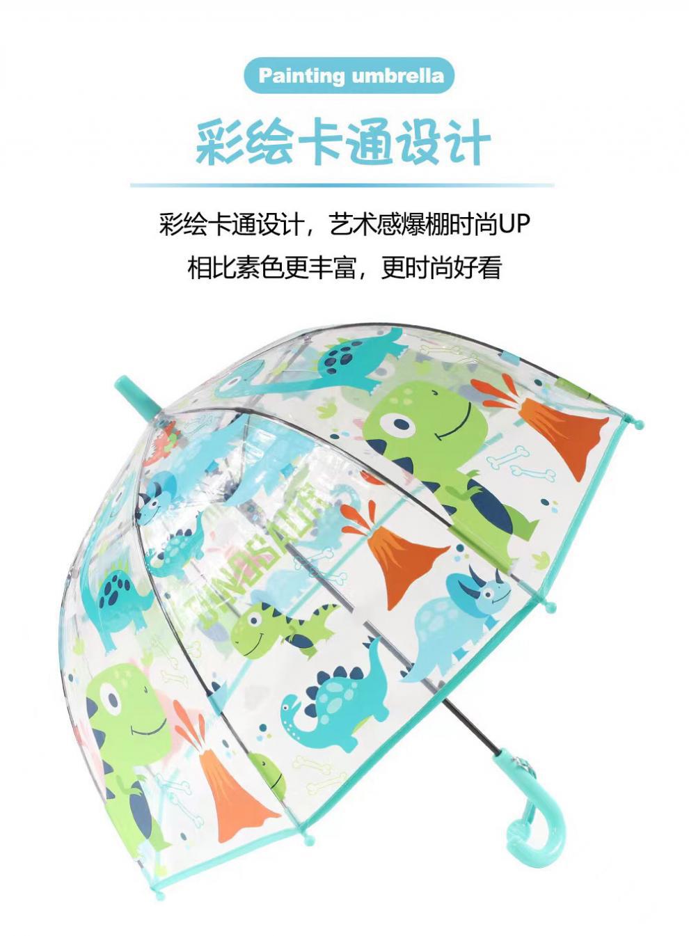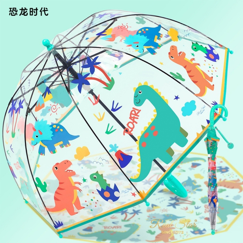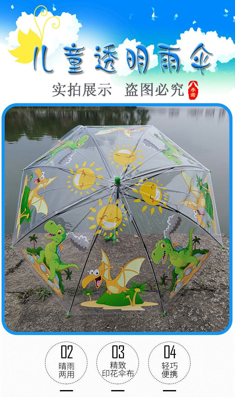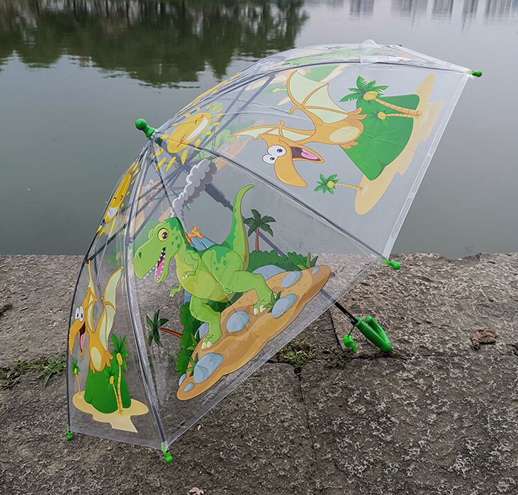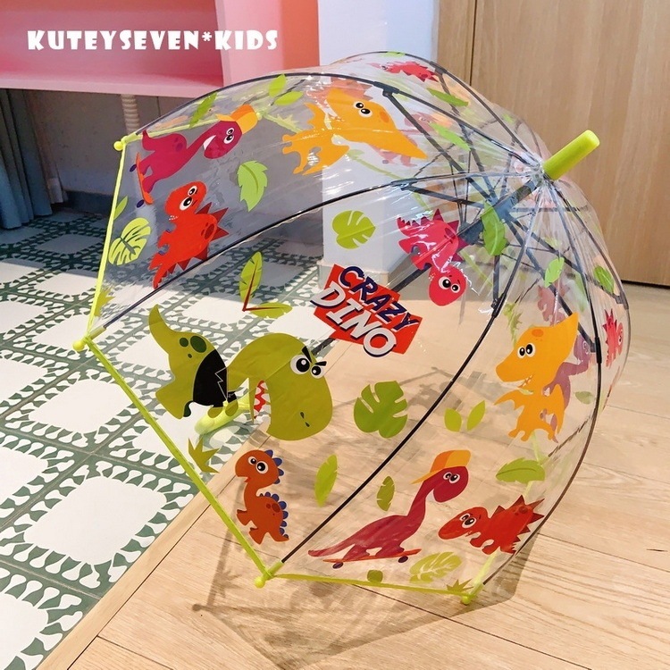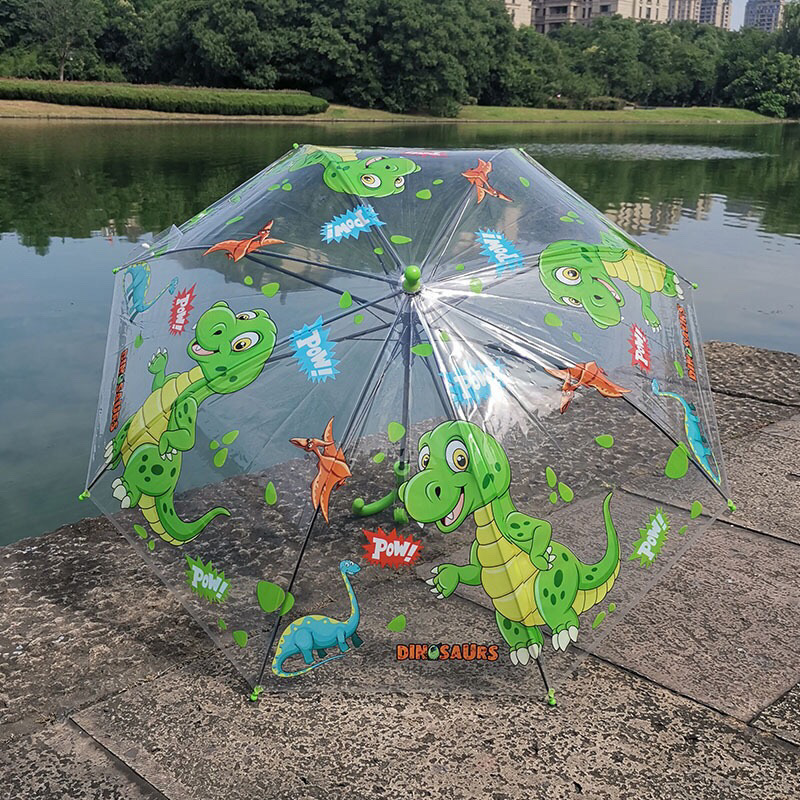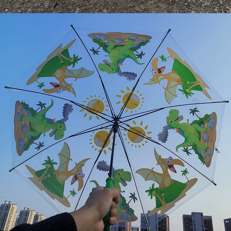 소년과 소녀를위한 어린이 투명 우산, 유아, 유치원생, 공룡 초경량 만화 자동 우산
