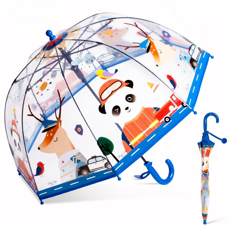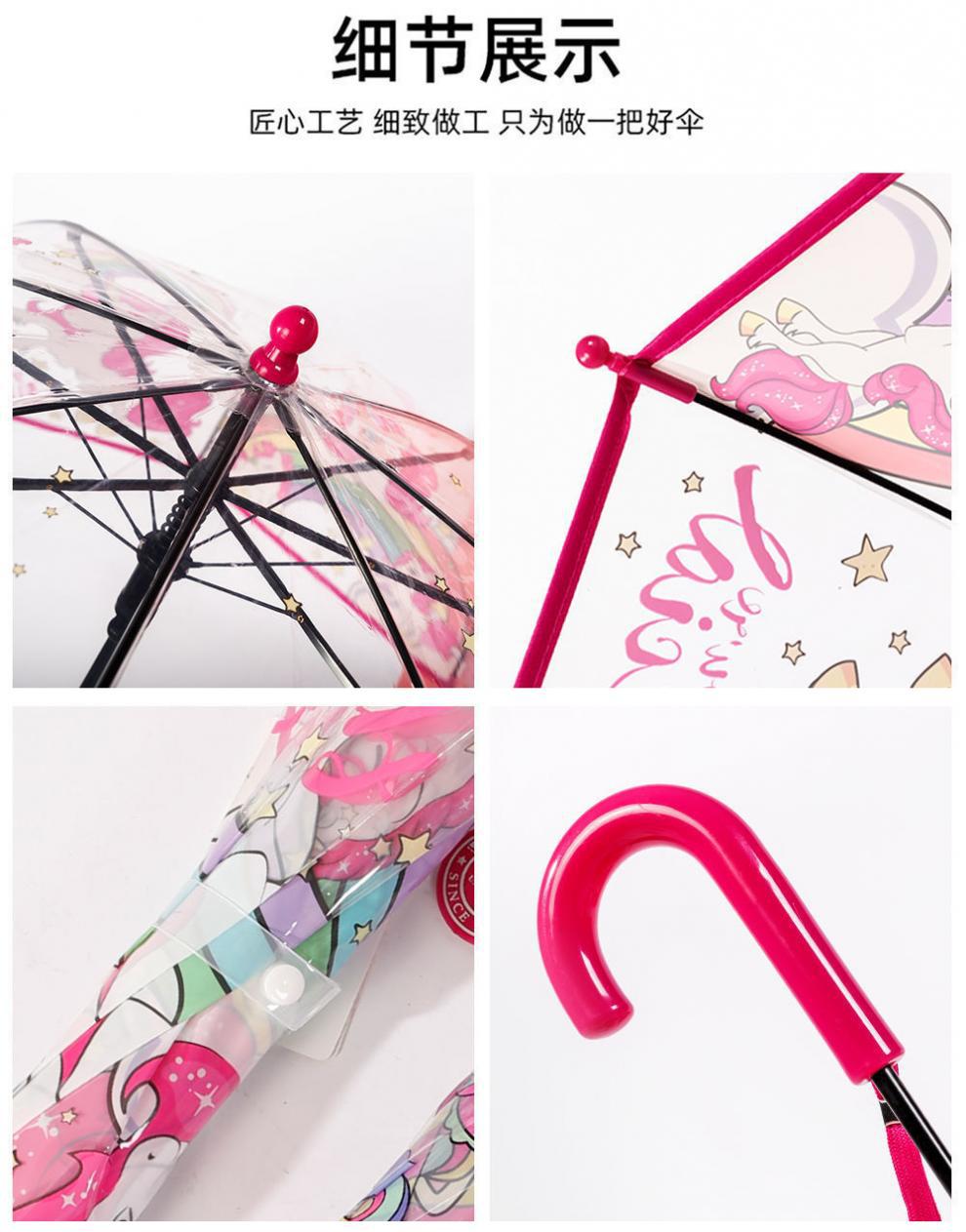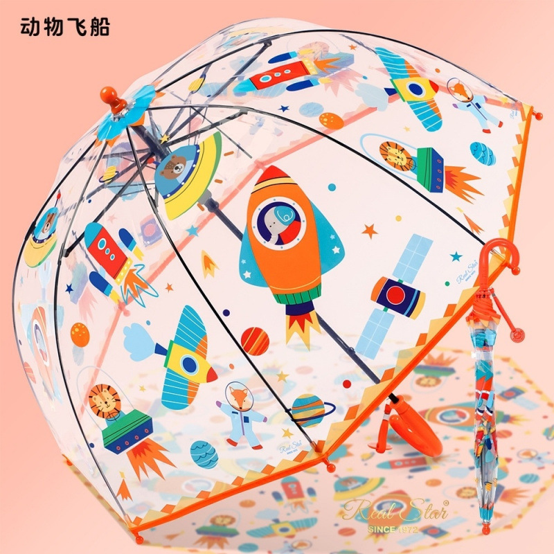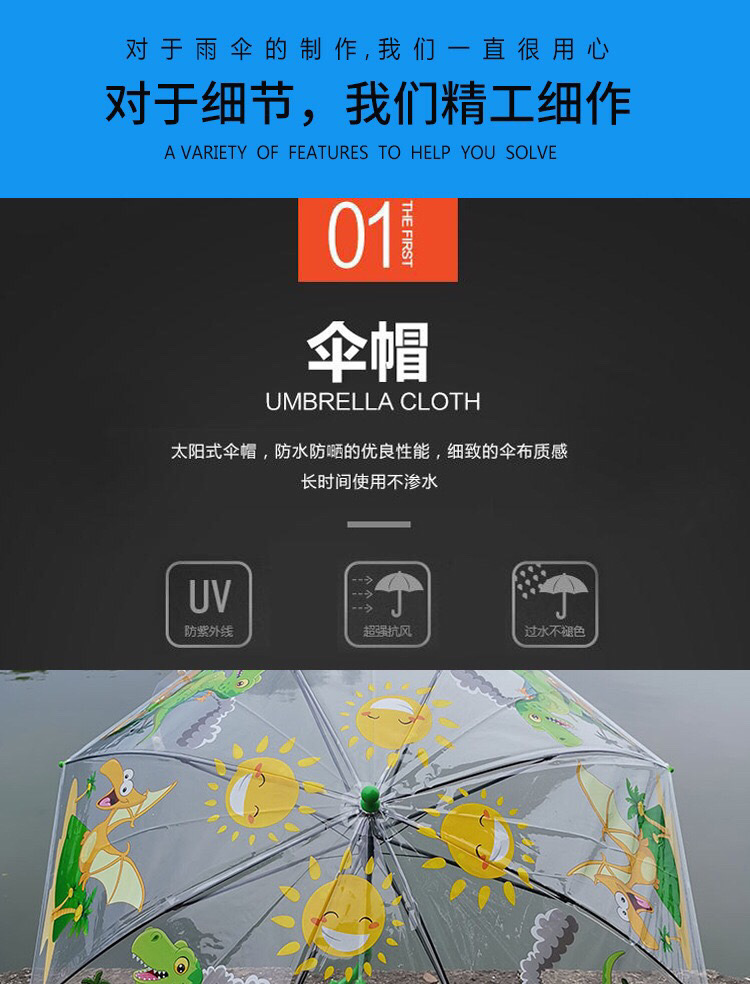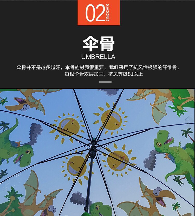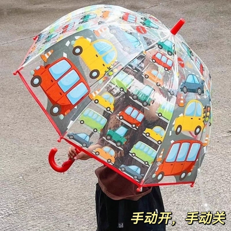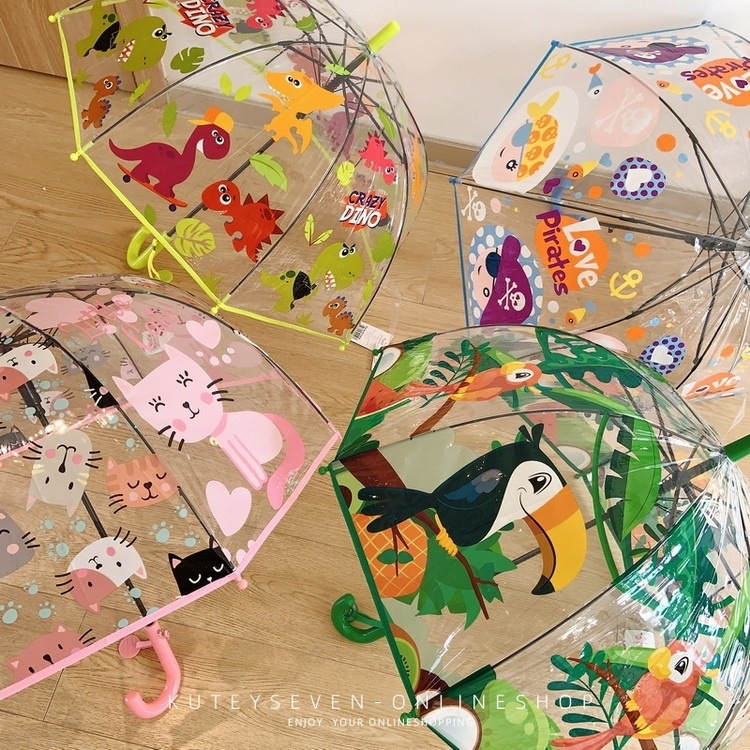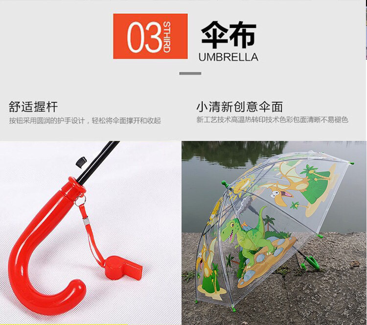 소년과 소녀를위한 어린이 투명 우산, 유아, 유치원생, 공룡 초경량 만화 자동 우산