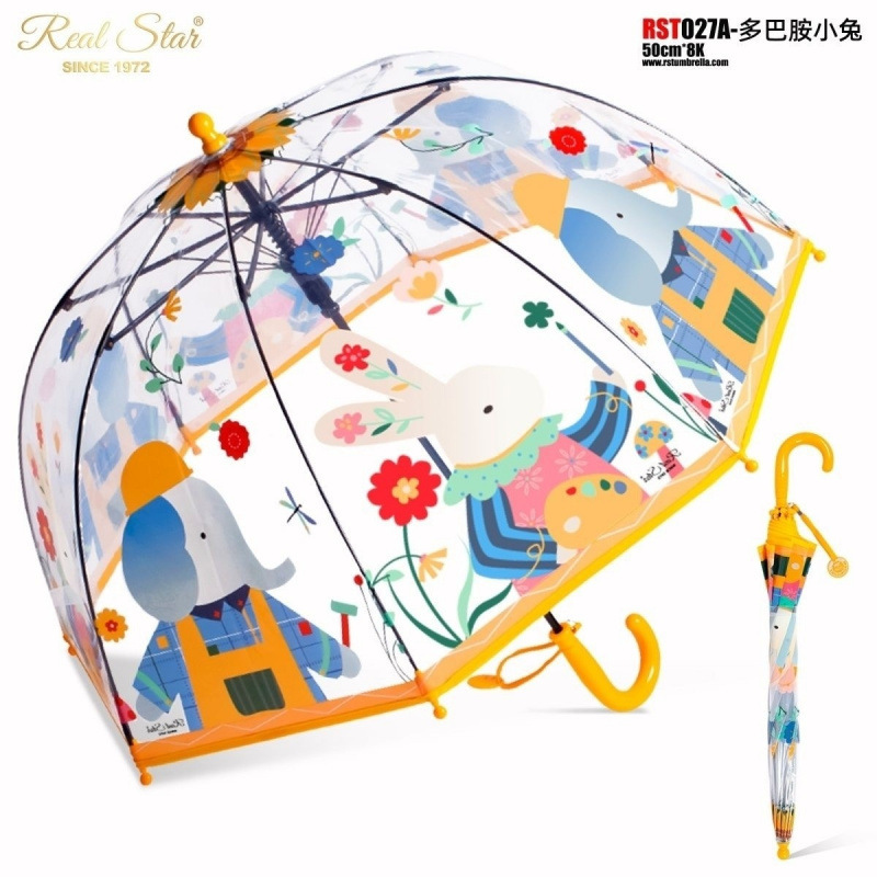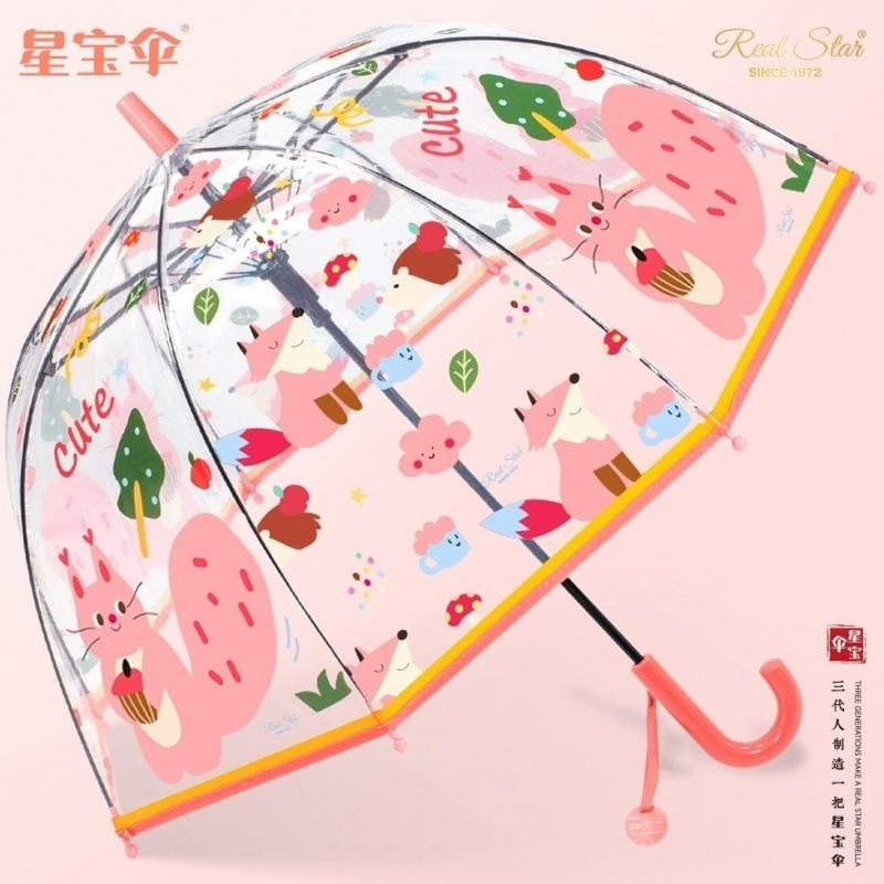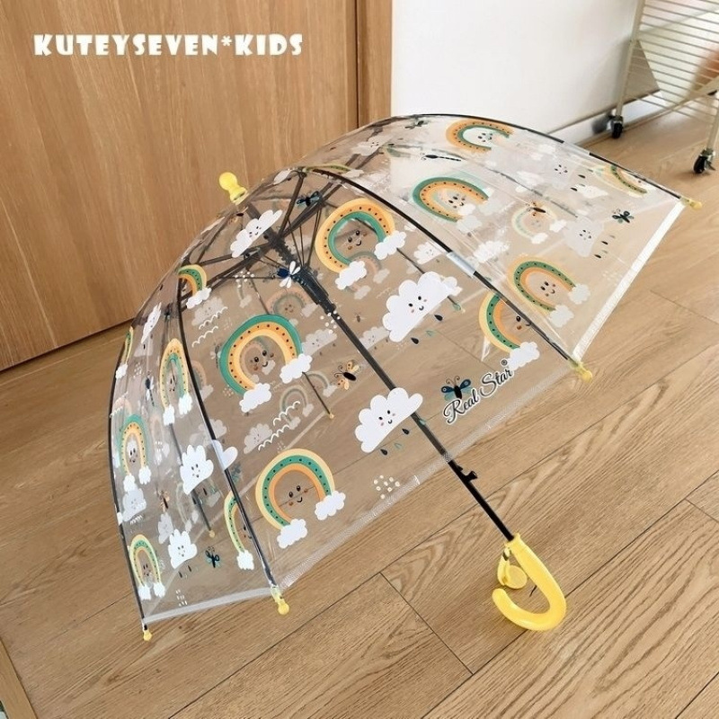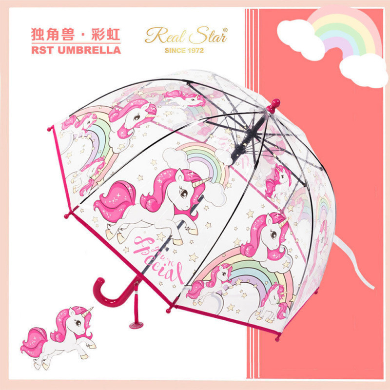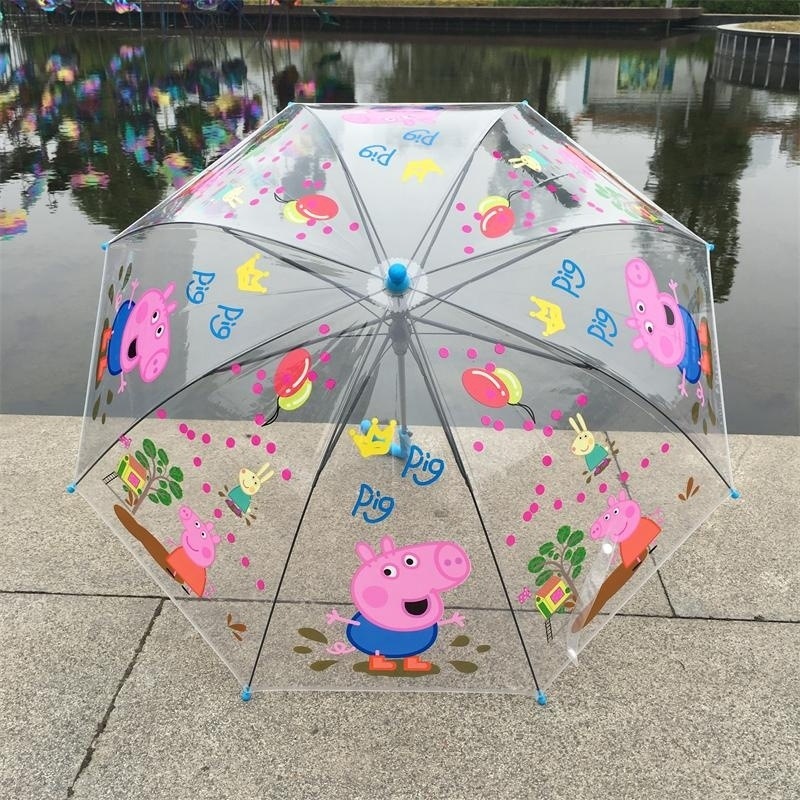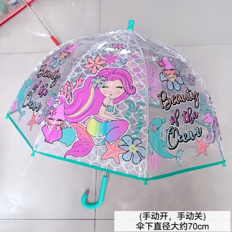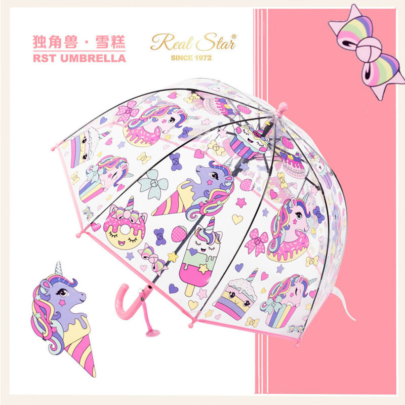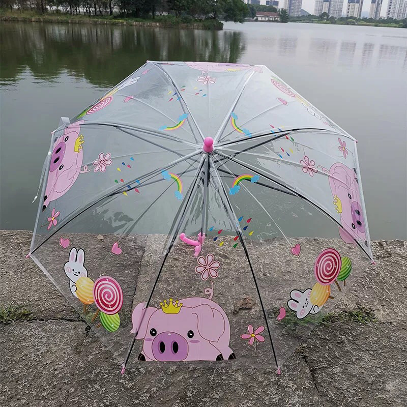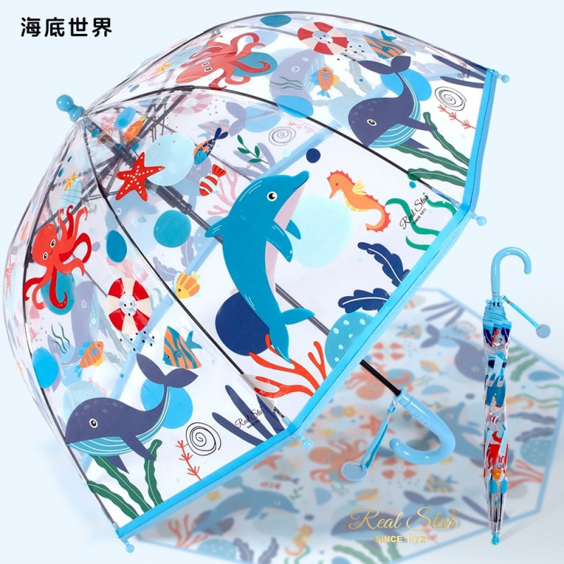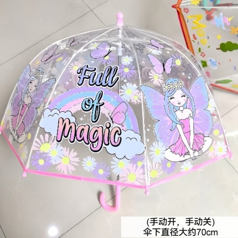 소년과 소녀를위한 어린이 투명 우산, 유아, 유치원생, 공룡 초경량 만화 자동 우산