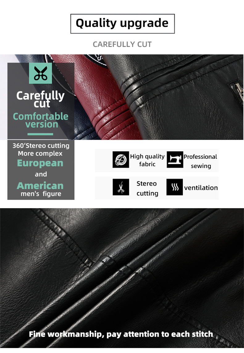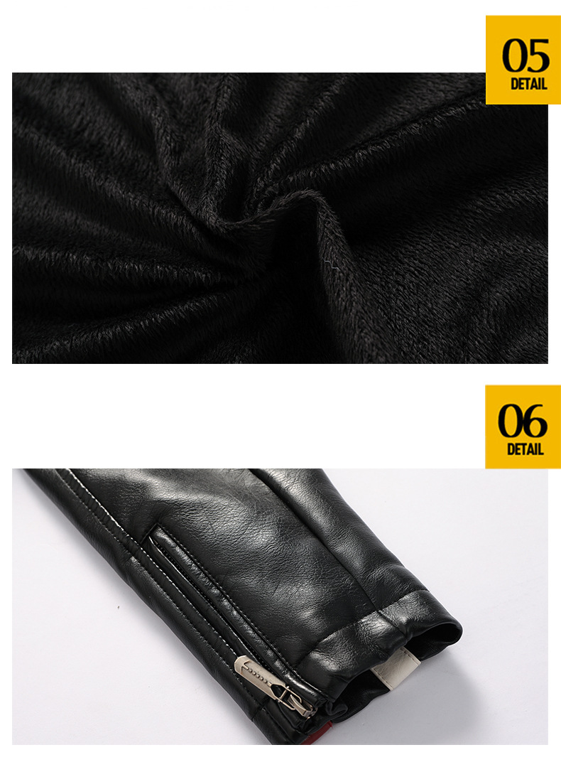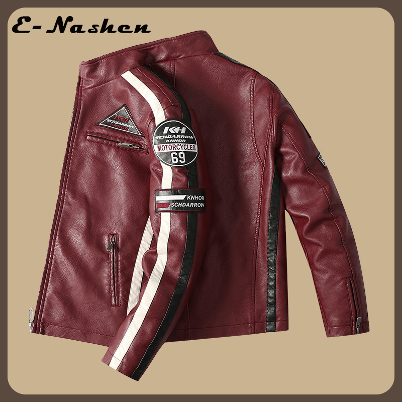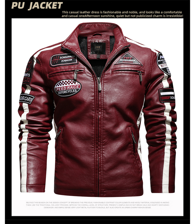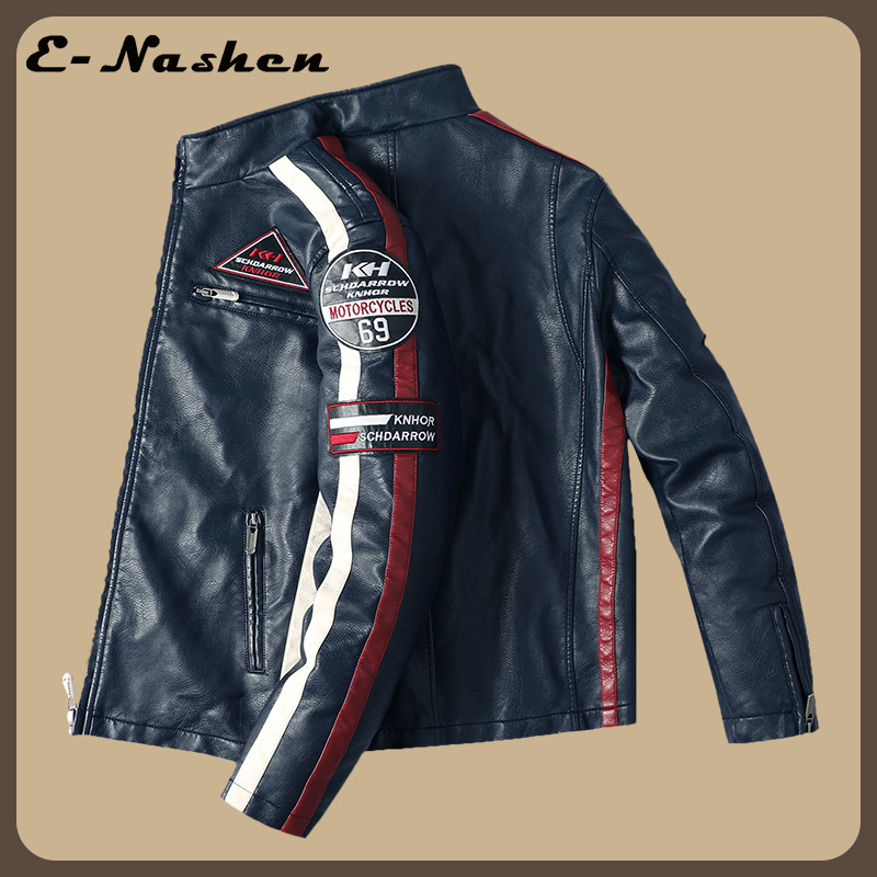 유럽과 미국의 대형 신형 남성용 PU 재킷 오토바이 레이싱 슈트 트렌디한 남성용 가죽 재킷 플러스 벨벳 얇은 라벨 대비 색상 재킷