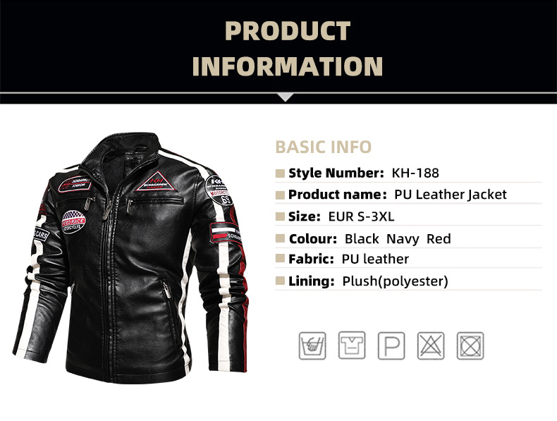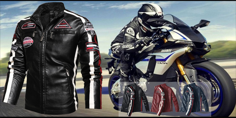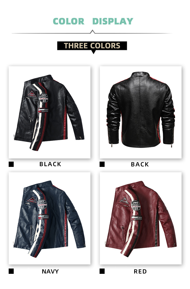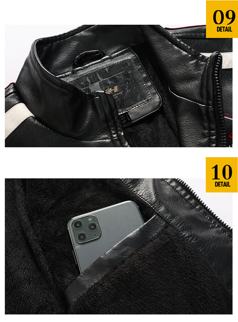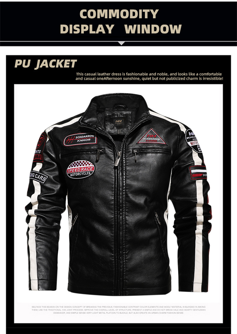 유럽과 미국의 대형 신형 남성용 PU 재킷 오토바이 레이싱 슈트 트렌디한 남성용 가죽 재킷 플러스 벨벳 얇은 라벨 대비 색상 재킷스토어 가기