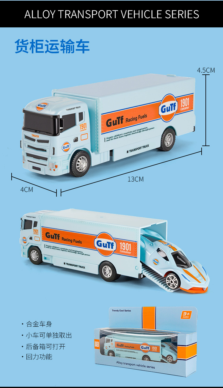 Karl 합금 자동차 모델 1:64 소형 트레일러 컨테이너 트럭 베이 버전 풀백 어린이 장난감 자동차 모델 장식품 Dropshipping스토어 가기