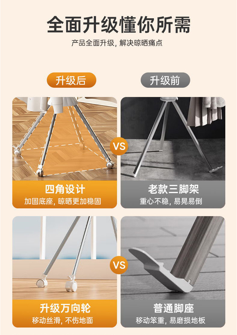 • 4개의 기둥을 갖춘 텔레스코픽 단층 범용 휠 건조