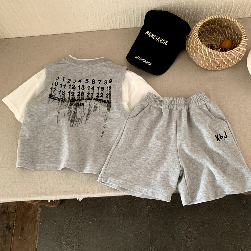 남아 여름옷, 아동 반팔 양복, 패셔너블한 한국 스타일 2025년 아기 여름옷, 남아 멋쟁이 투피스 세트