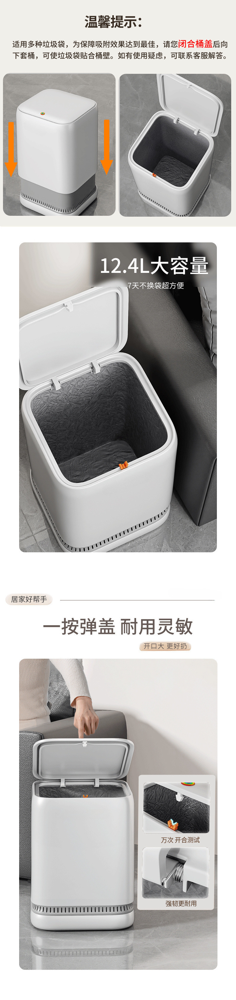 좁은 틈새가 있는 거실용 쓰레기통, 가정용 대용량, 욕실 화장실, 공기압 자동 흡착, 냄새 방지 종이 바구니스토어 가기