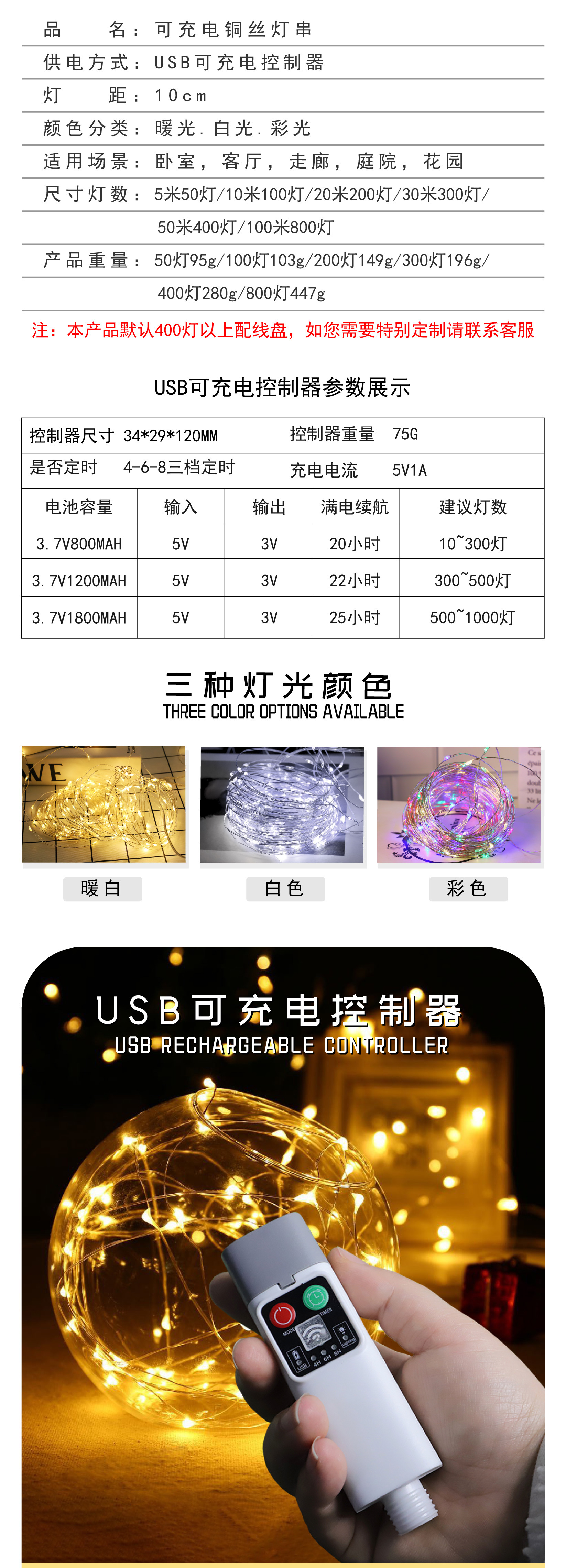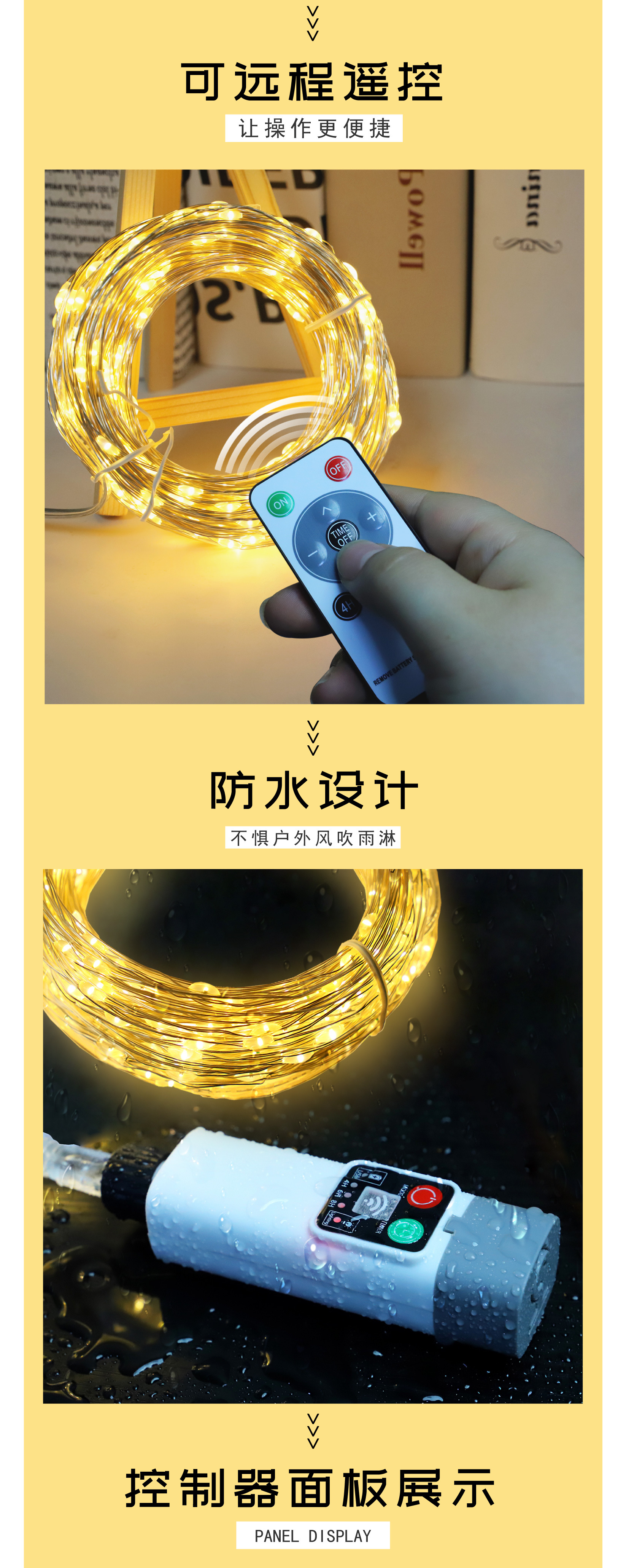 Amazon 구리 와이어 라이트 스트링 USB 긴 배터리 수명 충전식 소스 야외 방수 및 방수 캠핑 라이트 스트링 텐트 분위기 조명